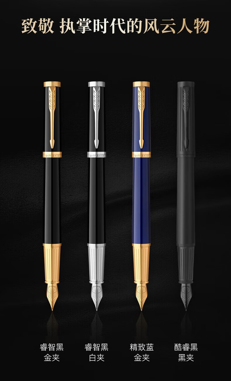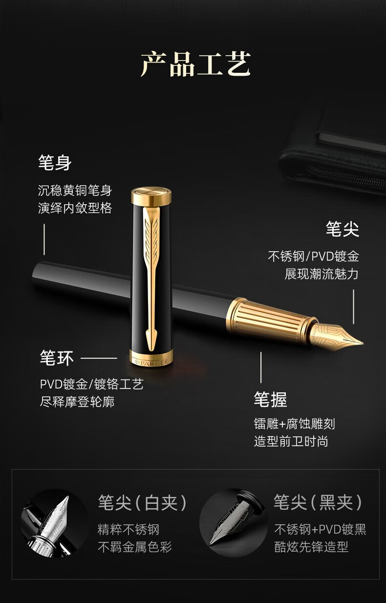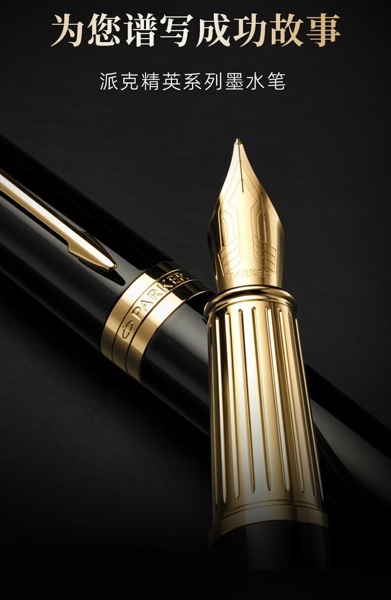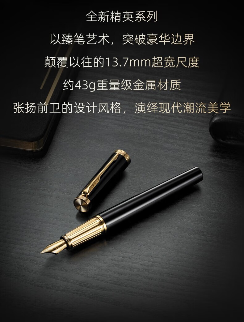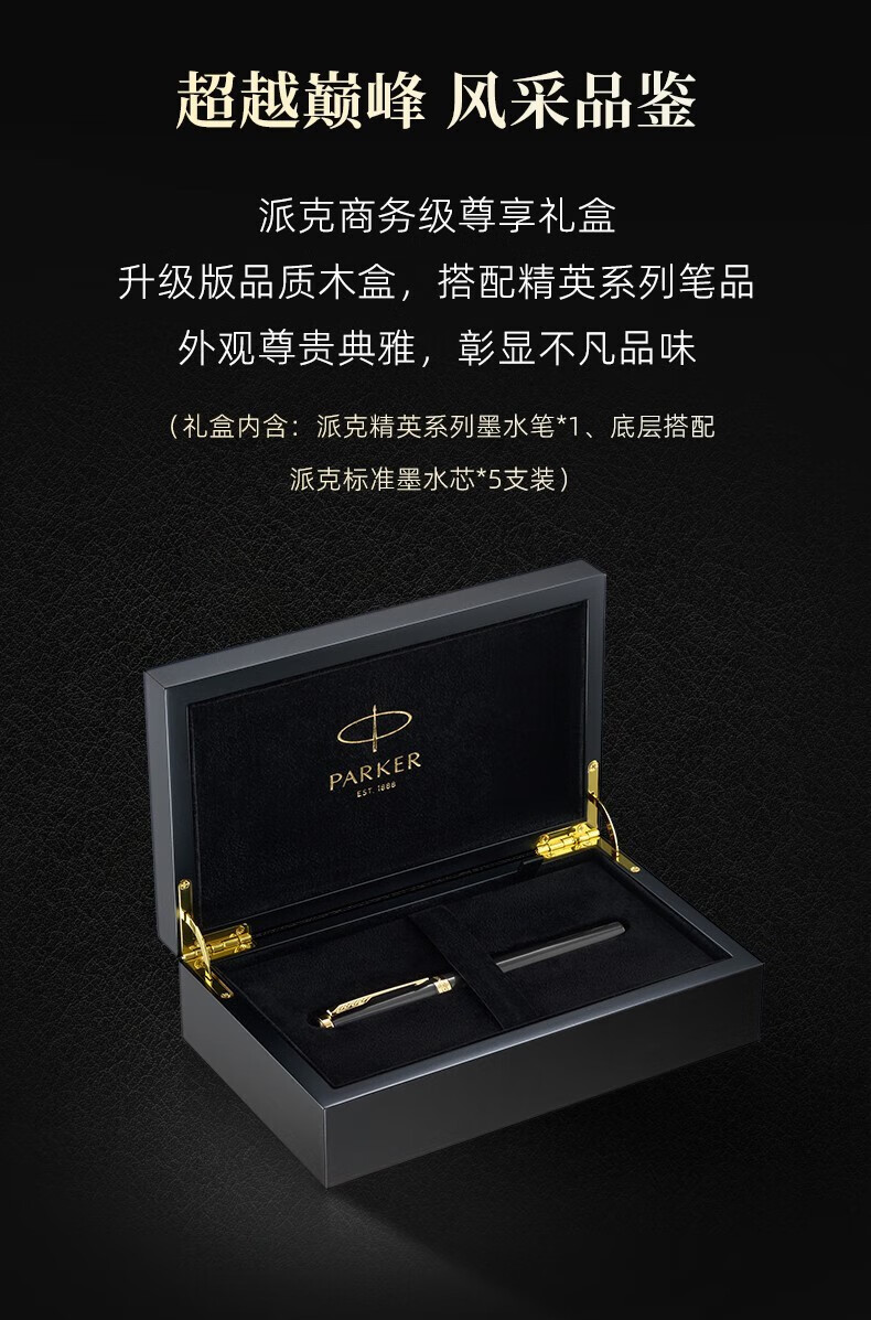 派克(PARKER) 2023新品精英系列墨水笔钢笔高端商务送礼木质礼盒装 免费刻字 精英睿智黑金夹墨水笔