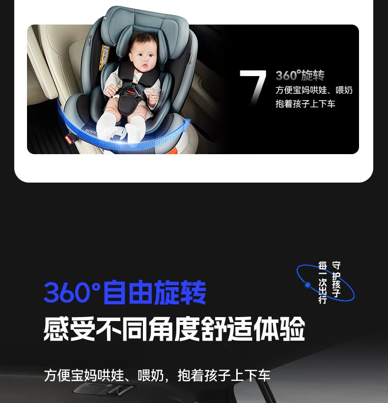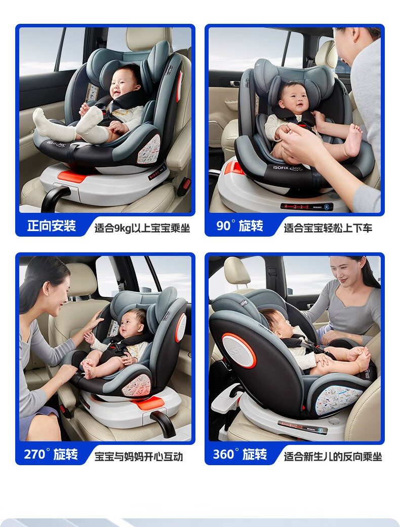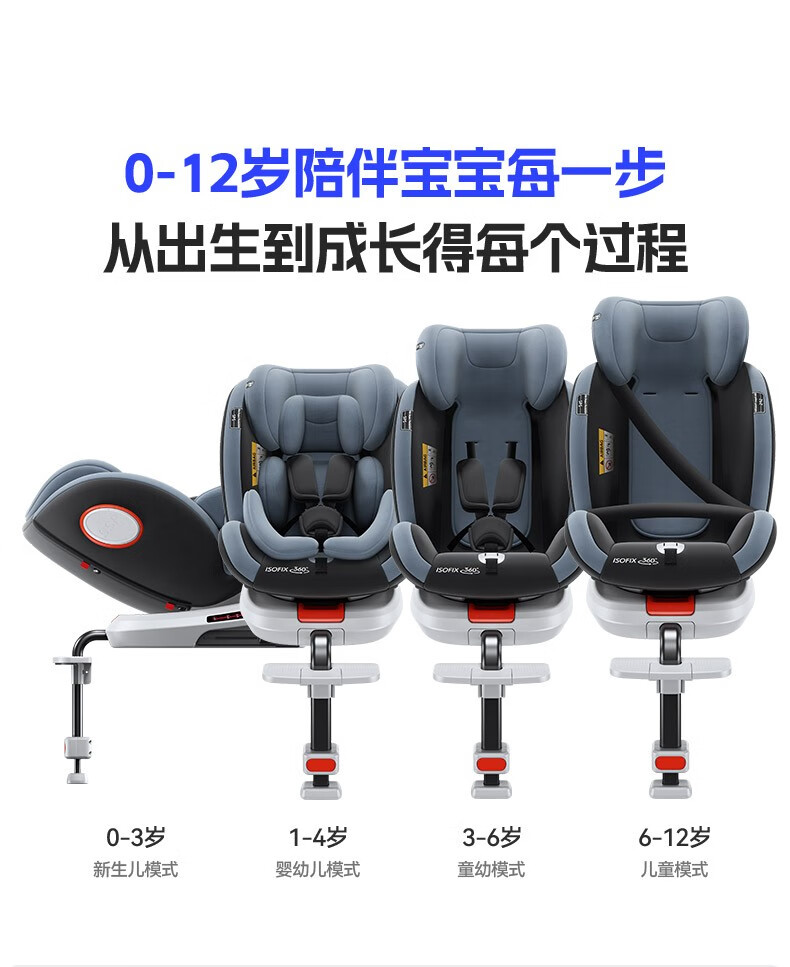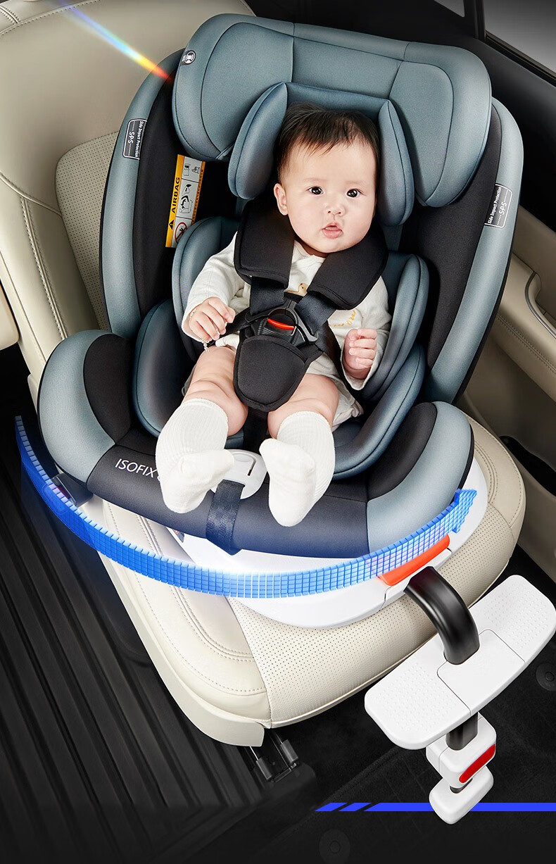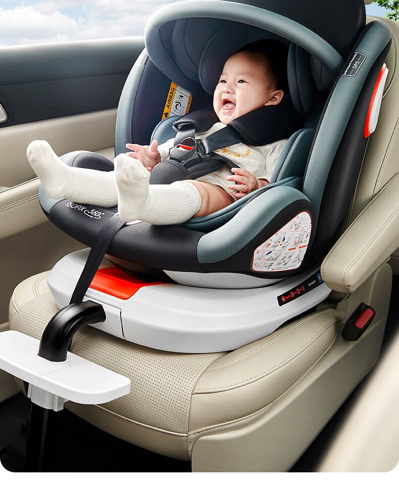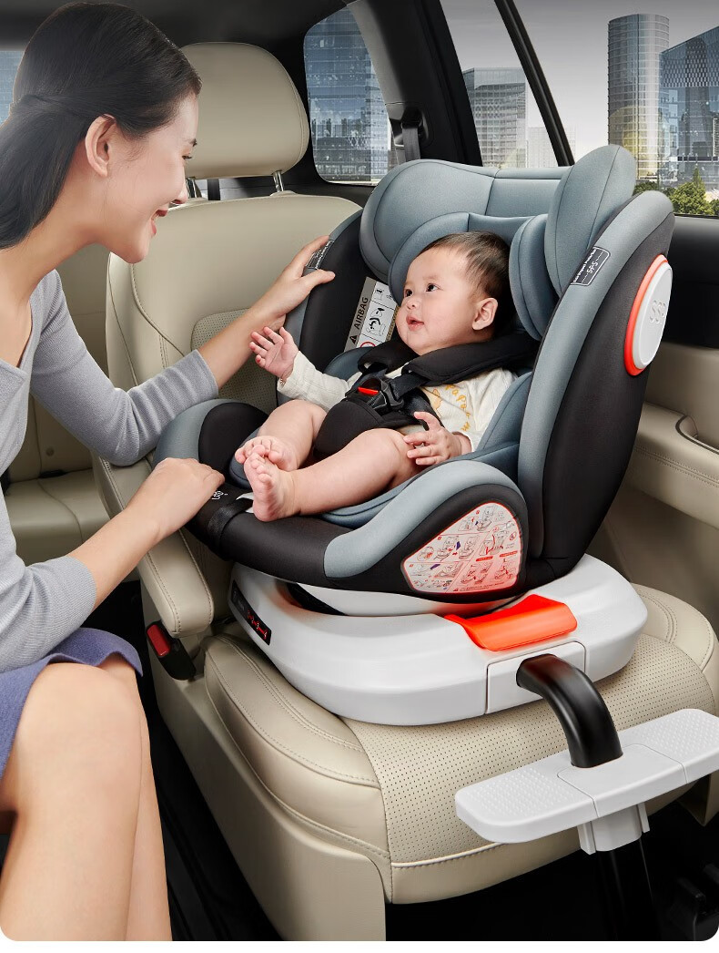 Qiaobeibi child safety seat for cars for babies aged 0-4-12 years old, 360-degree rotating i-Size certified, supreme gray, supporting legs + footrest + sunshade