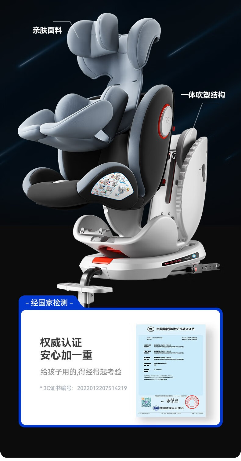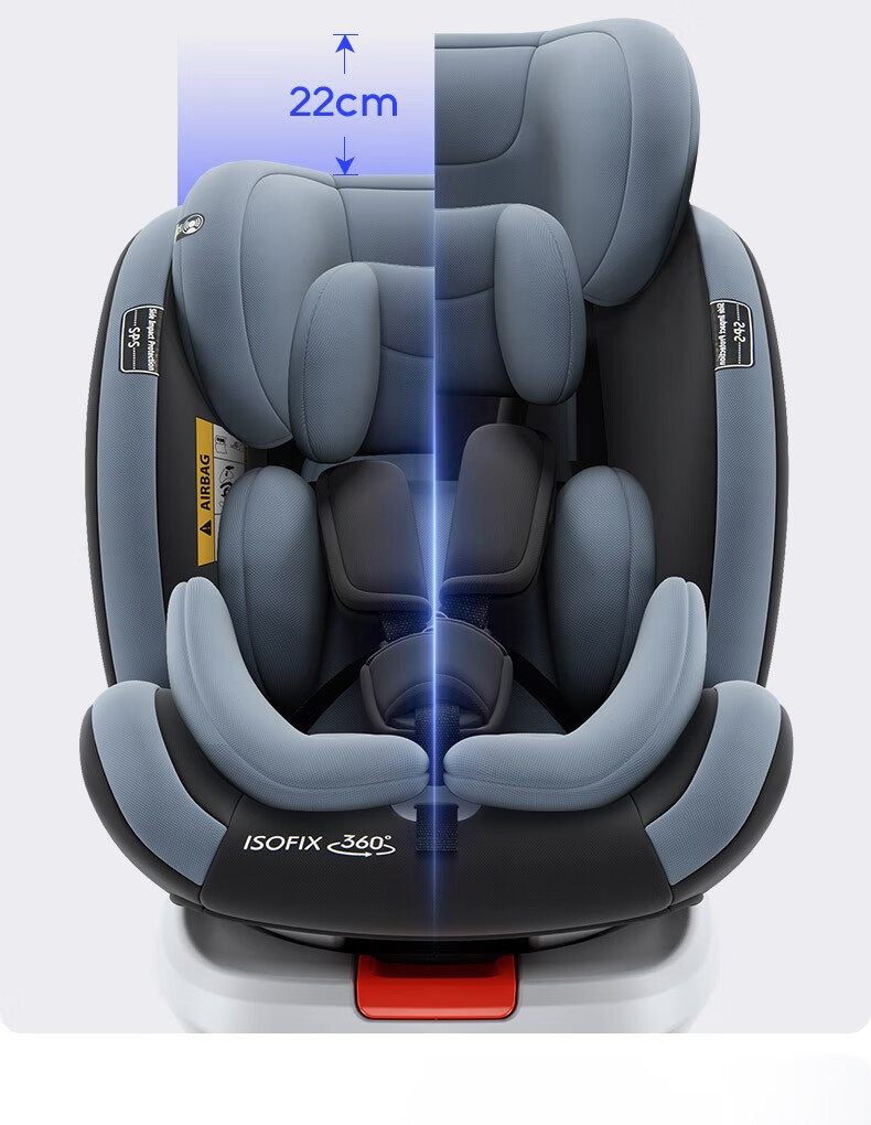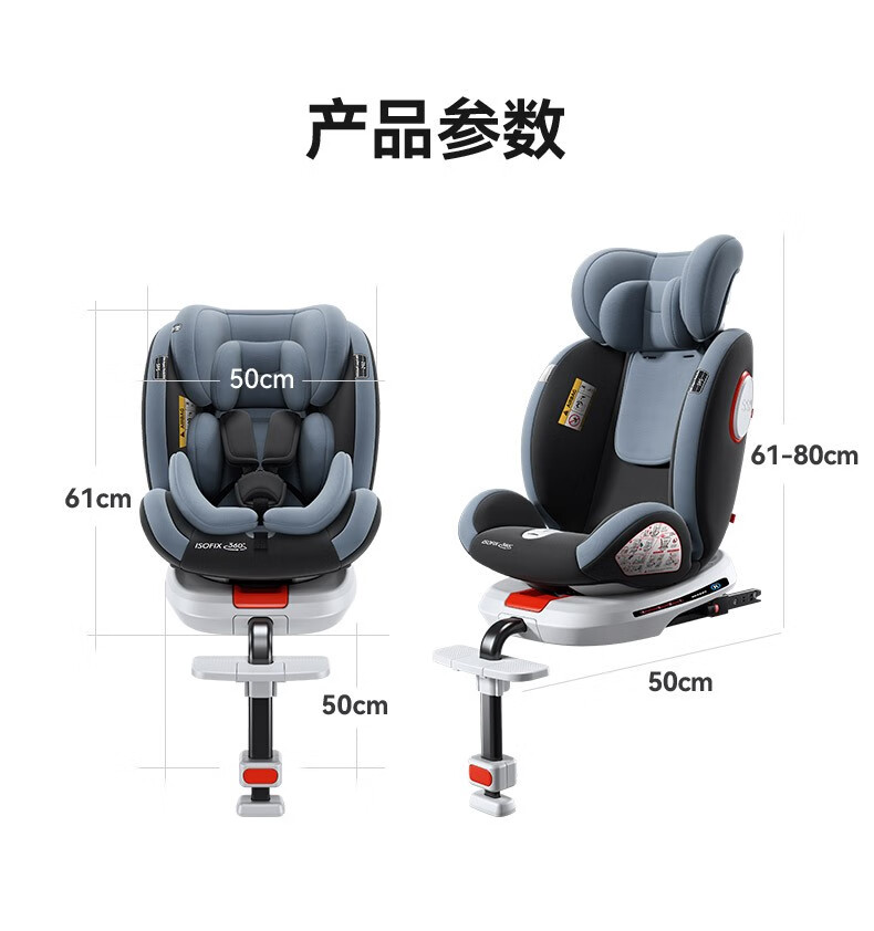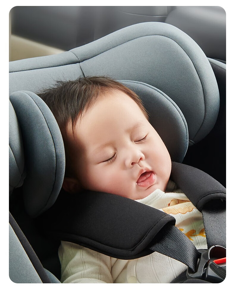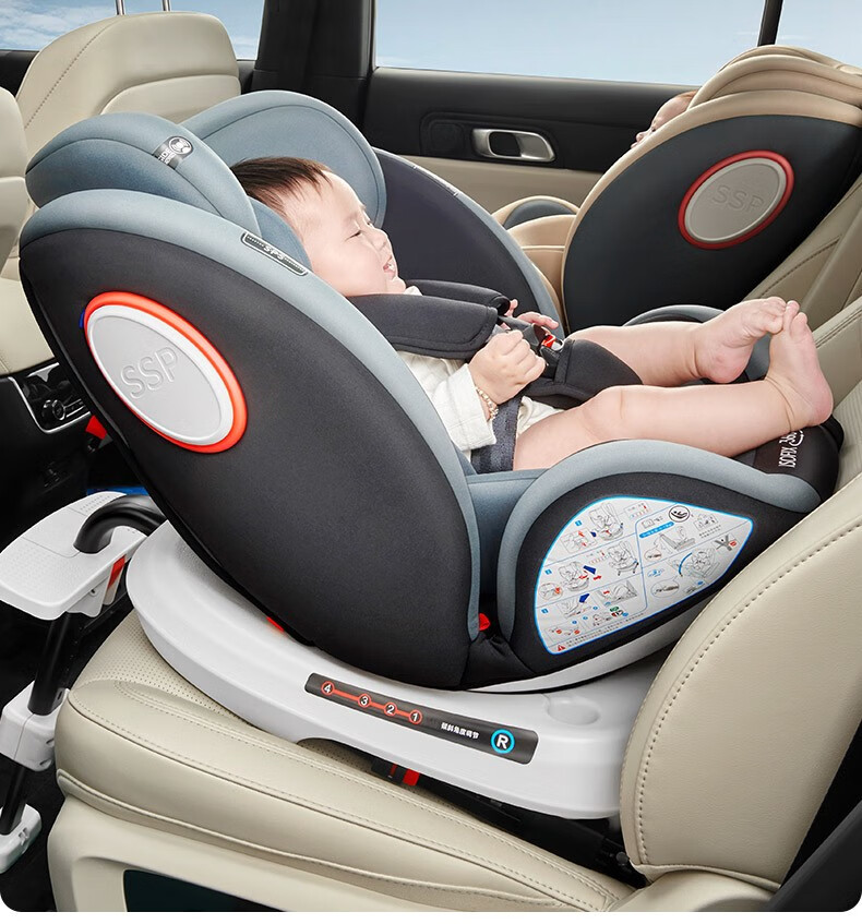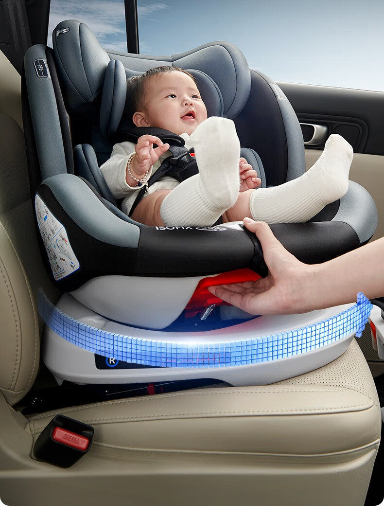 Qiaobeibi child safety seat for cars for babies aged 0-4-12 years old, 360-degree rotating i-Size certified, supreme gray, supporting legs + footrest + sunshade