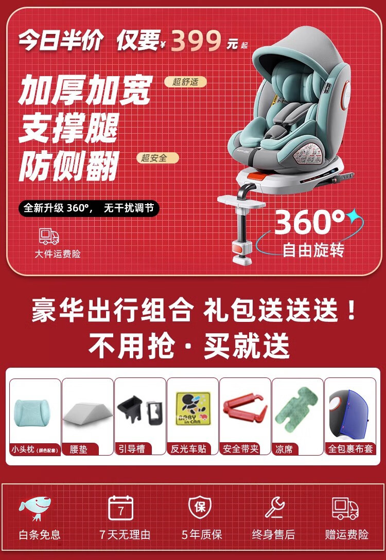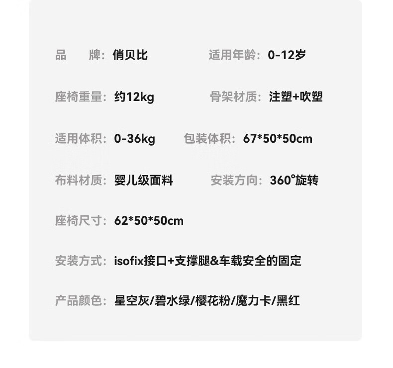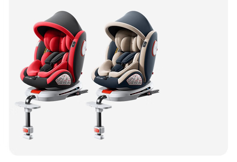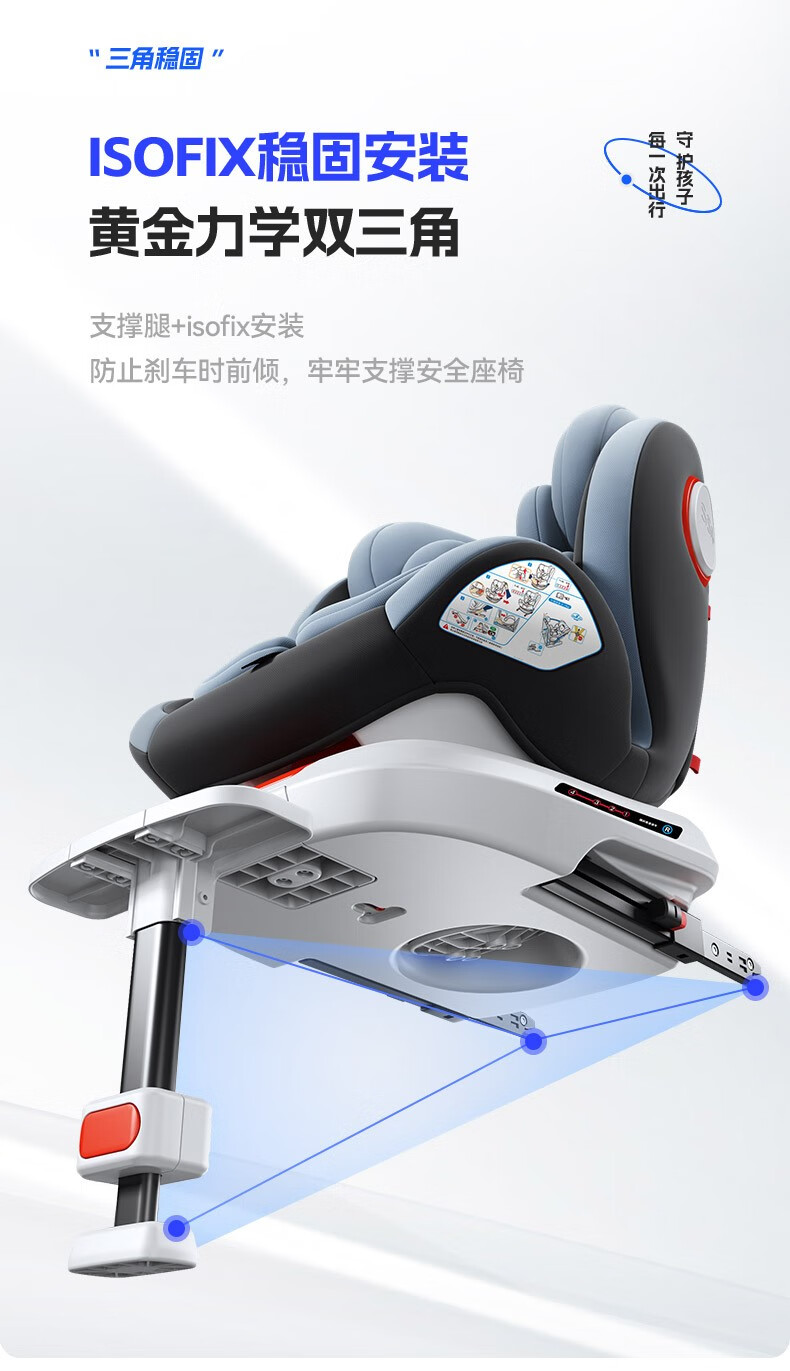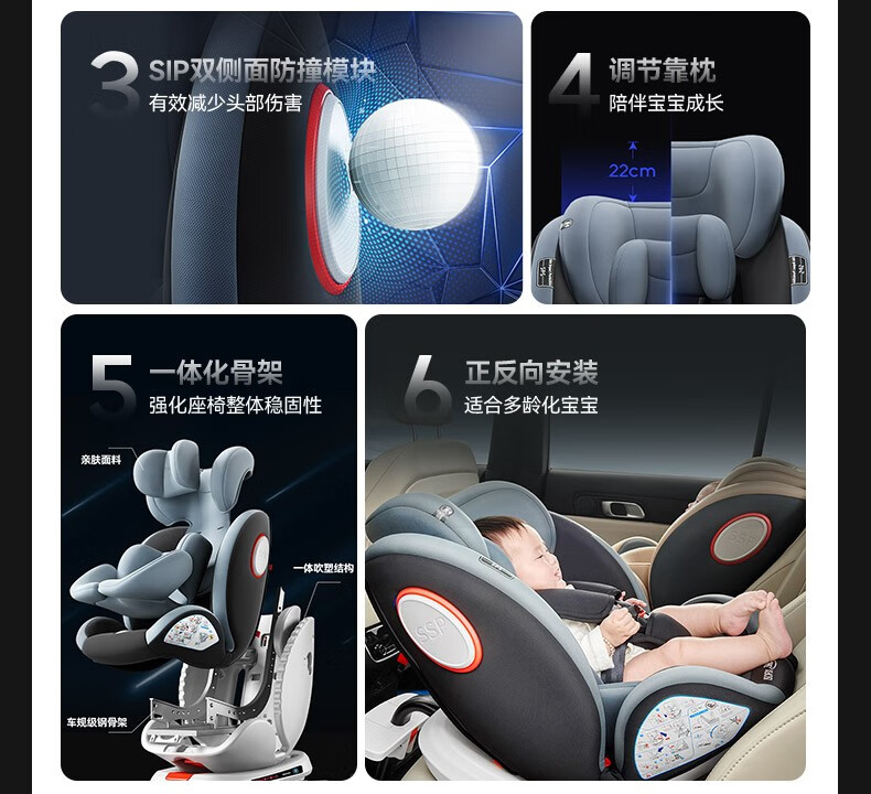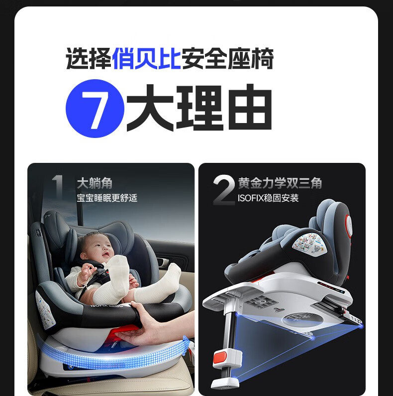 Qiaobeibi child safety seat for cars for babies aged 0-4-12 years old, 360-degree rotating i-Size certified, supreme gray, supporting legs + footrest + sunshade