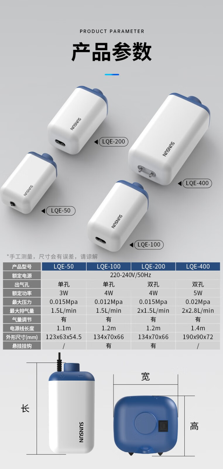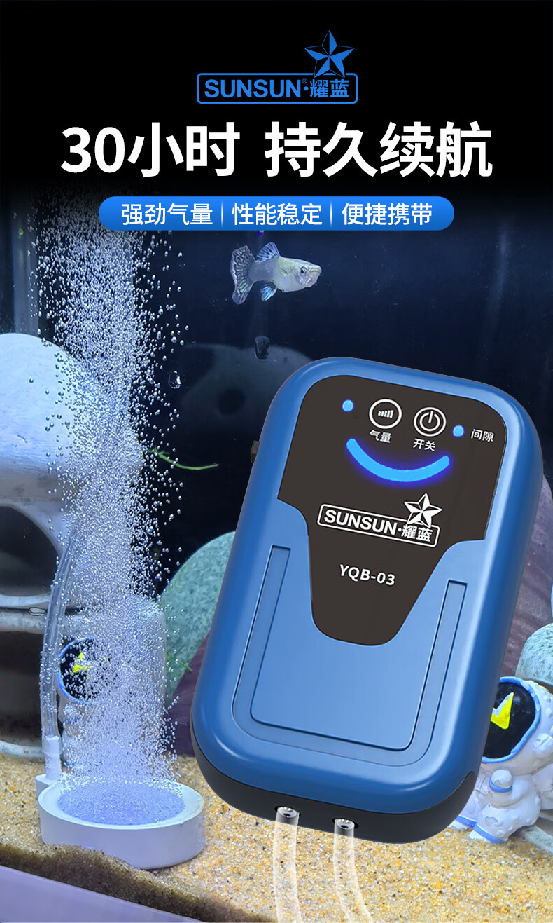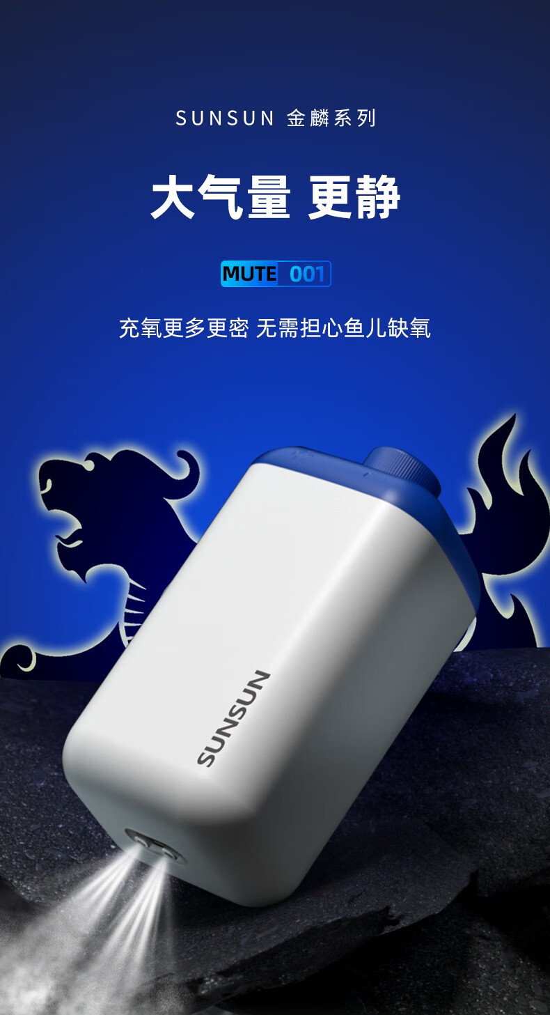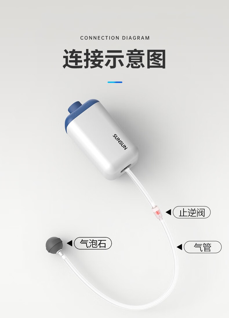 SUNSUN Pompe d'oxygénation pour Aquarium, Pompe à oxygène pour Aquarium, Petite Pompe d'oxygénation Domestique, Trou Unique 3W Plus Silencieux de deuxième génération + Ensemble Complet d'accessoires