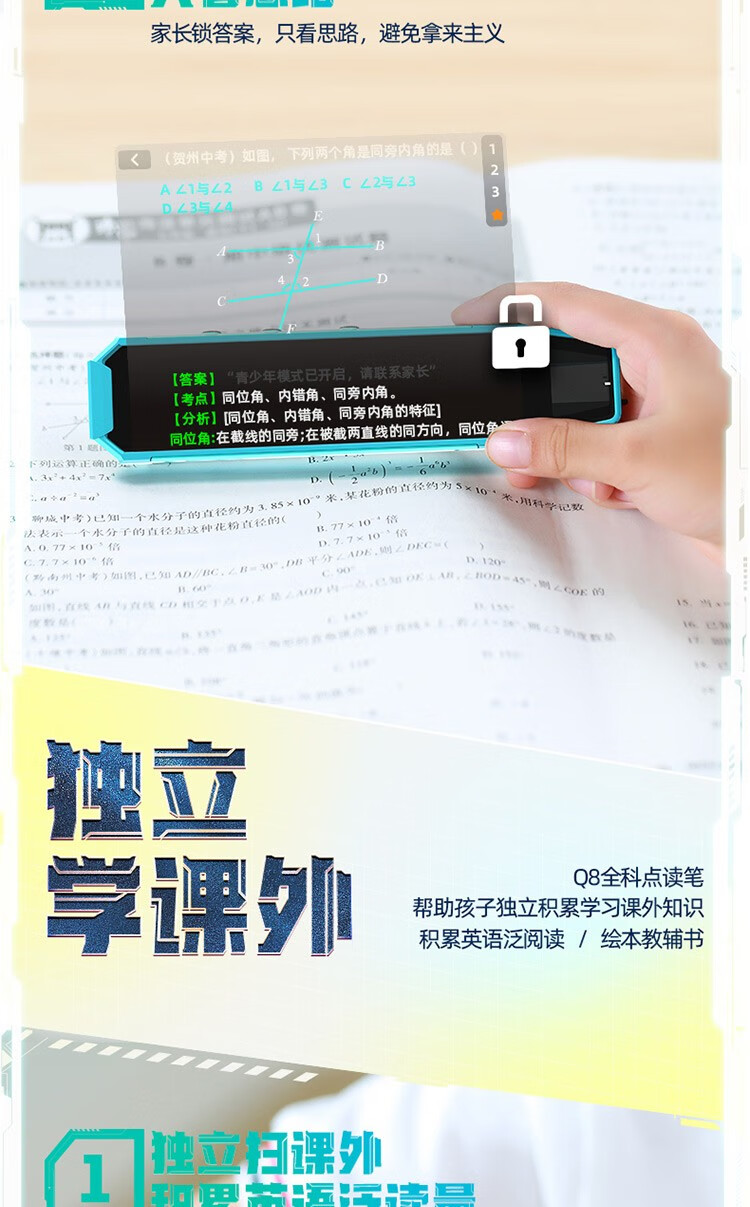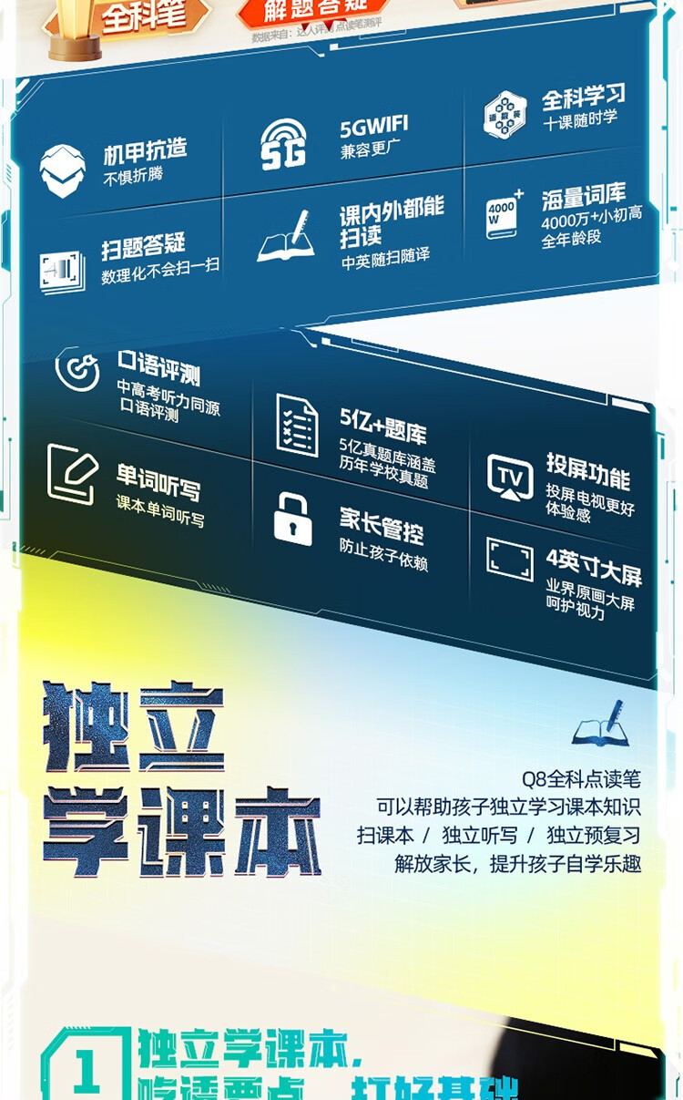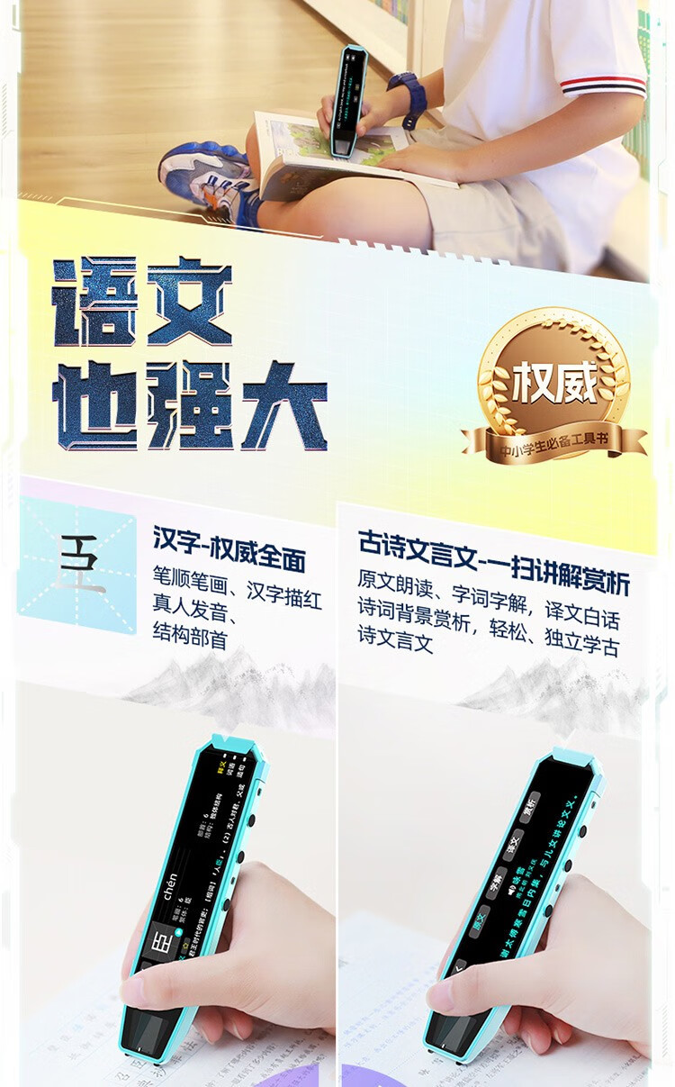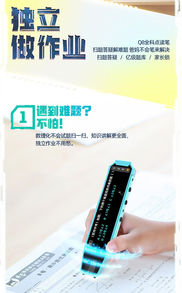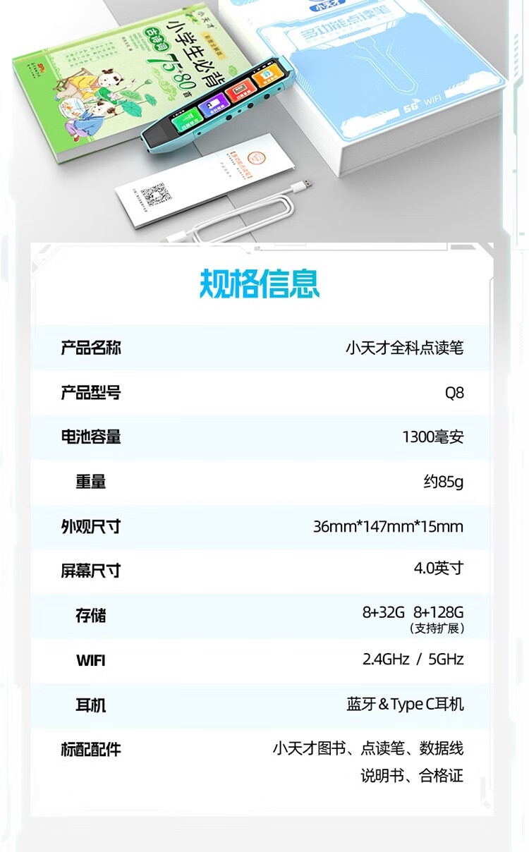 小天才图书全科Q8点读笔翻译词典英语学习机扫描笔电子神器词典扫读学生小学高中通用支持5G网络新款 【全科视频32G】5G网络扫题答疑蓝 标配点读笔 小天才古诗词
