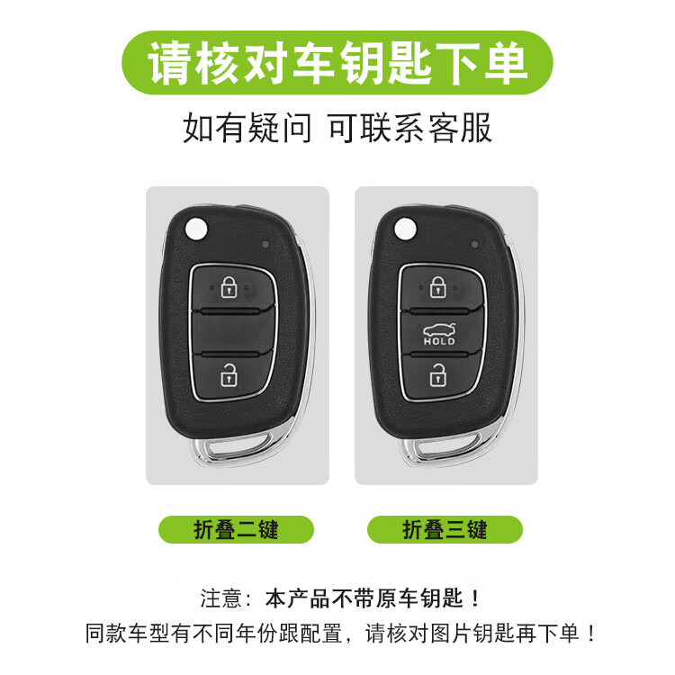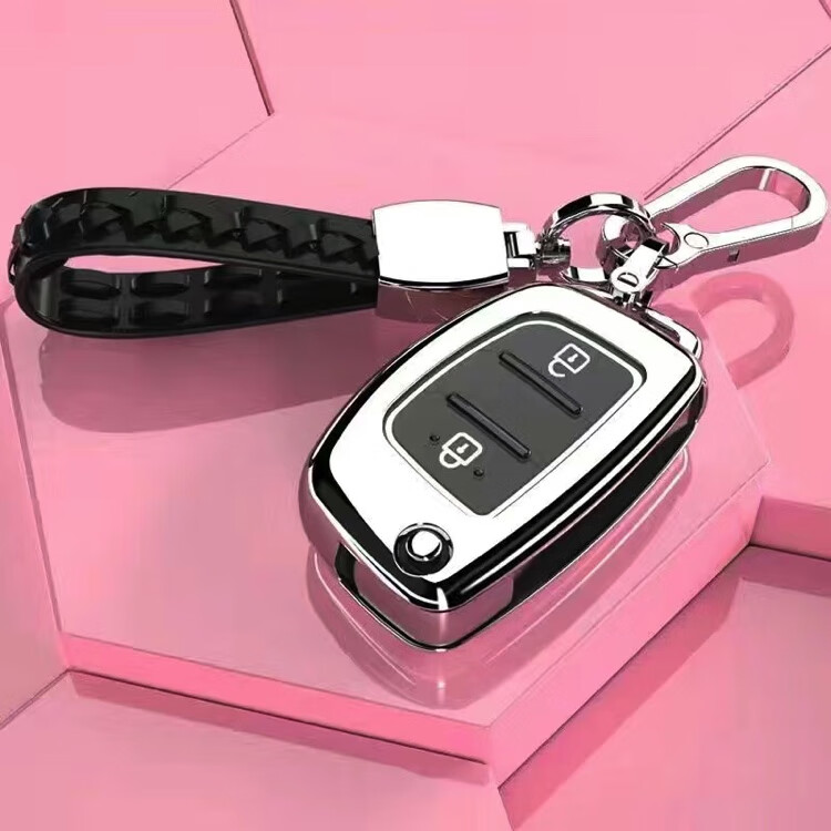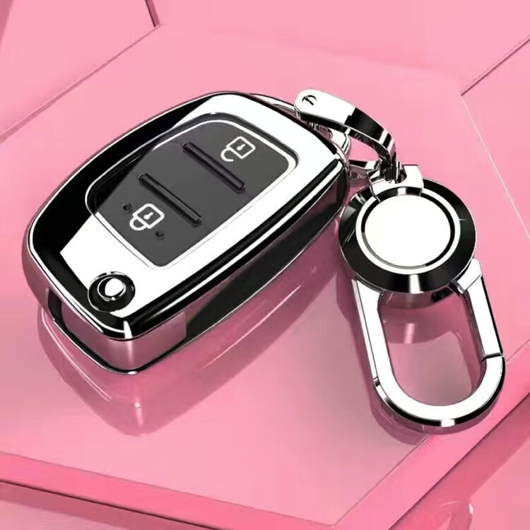Beijing Hyundai Rena Key Cover 2017-19 Keychain Leather Case Remote Control Reina Car Key Case for Men and Women Cover + Metal Buckle Silver