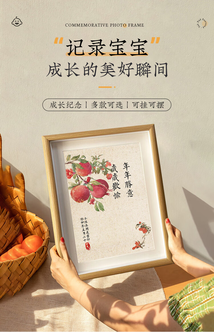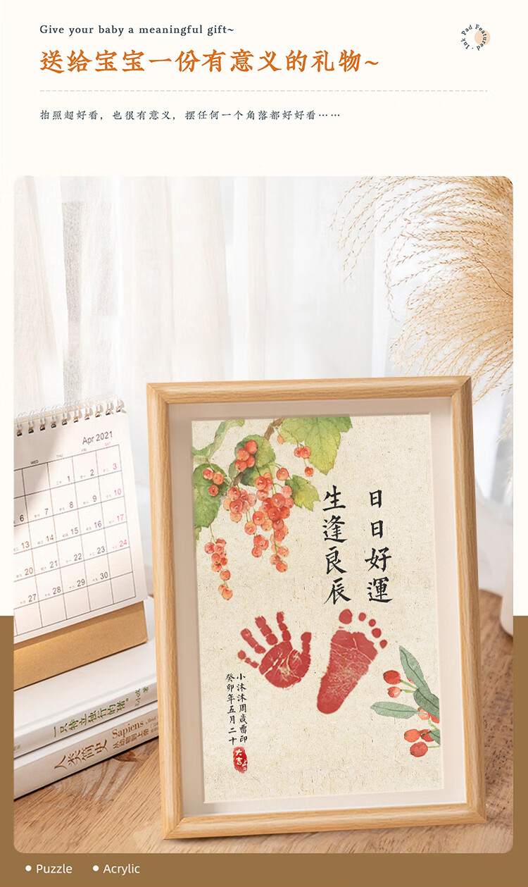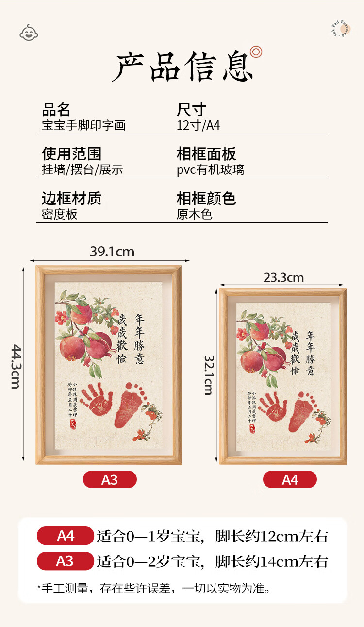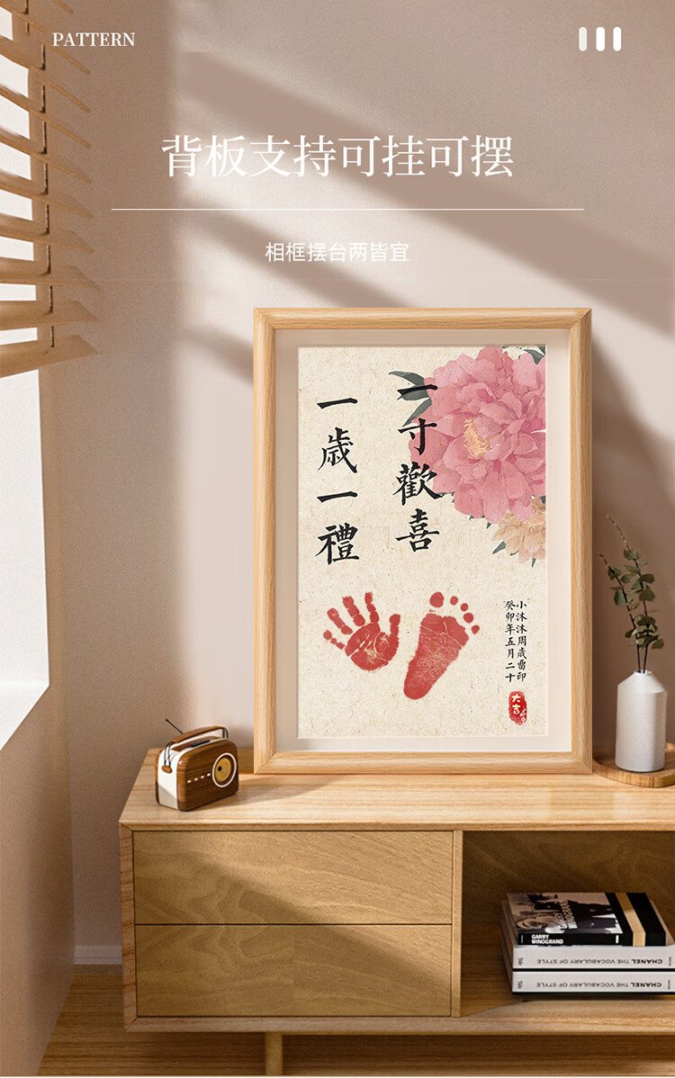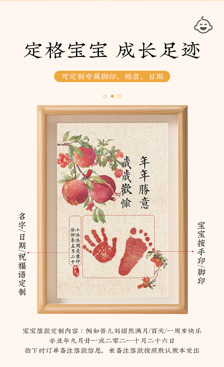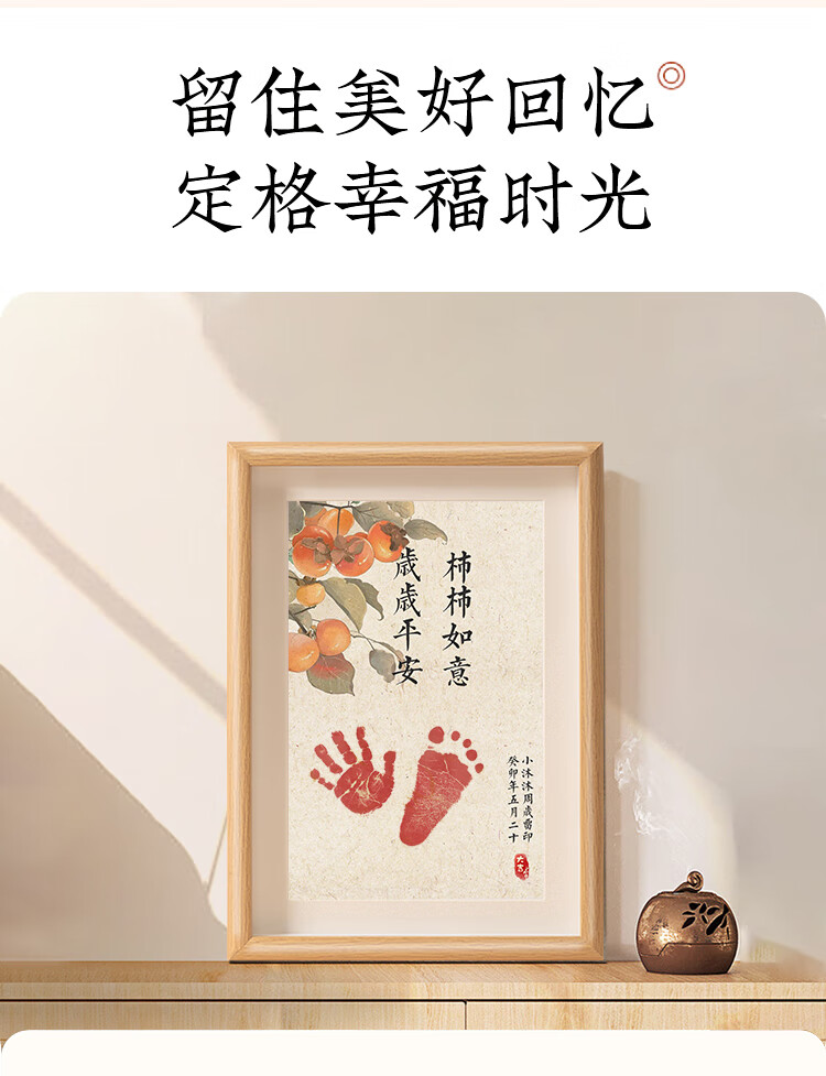 抓周宝宝周岁手足印满月纪念仪式感百天新生婴儿一岁一礼脚印相框留恋 【自写姓名】A4岁岁平安柿柿如意