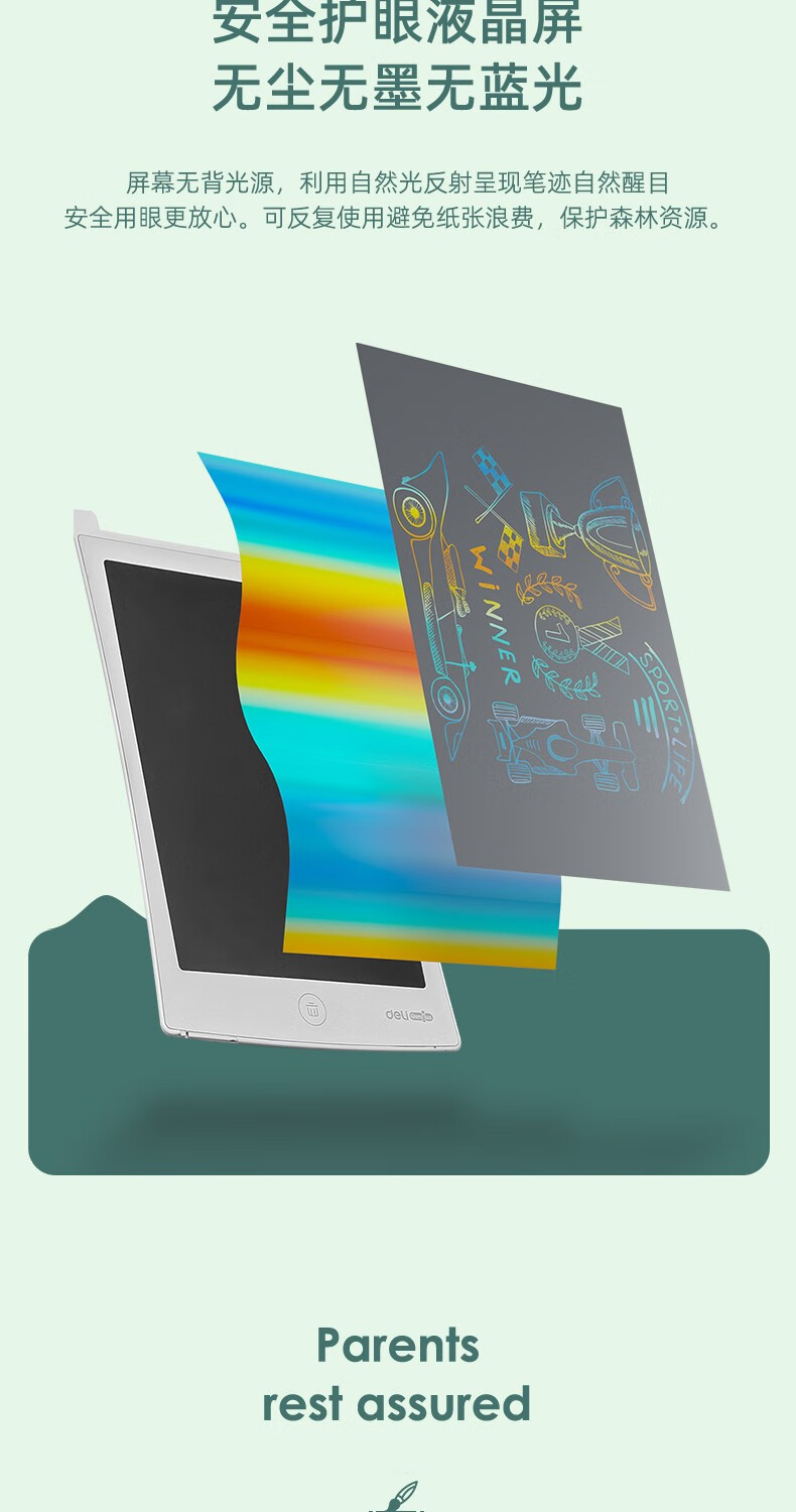 得力(deli) 液晶小黑板 儿童画板液晶手写板 彩色绘画涂鸦写字板可擦写 电子画板 液晶手写板平板 8.5英寸-单色(附触屏笔一支)