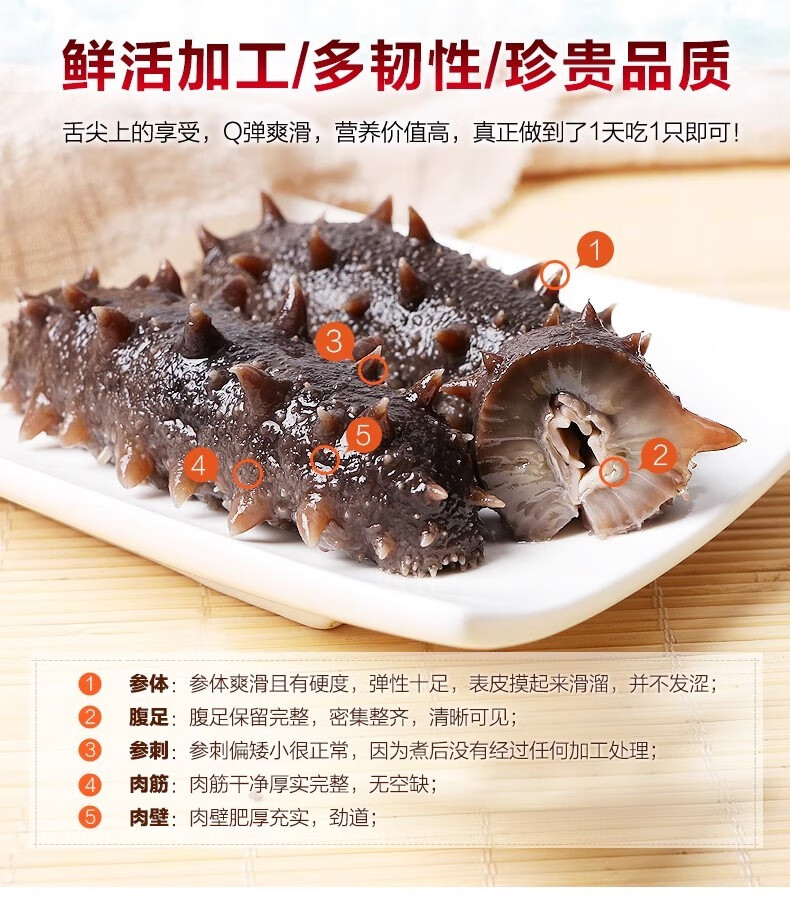 Dongshang Yupin Sea Cucumber Ready-to-Eat Dalian Fresh Wild Liao Sea Cucumber Solid 75% Seafood Gift Box Single New Year Goods 500g 16-19 Pieces/Jin Jin is equal to 0.5 kg