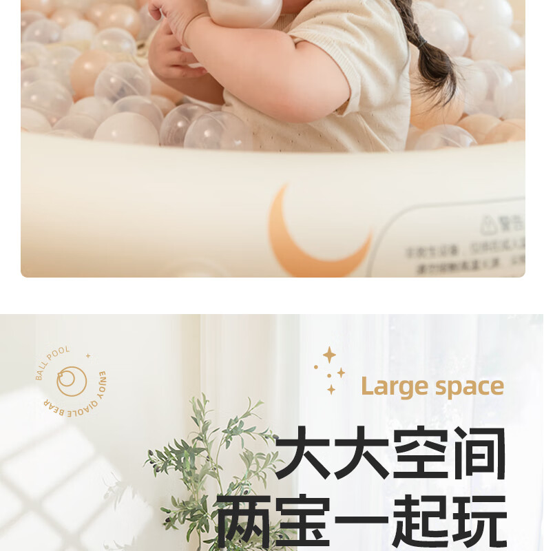 巧乐熊(Qiaolexiong)儿童室内海洋球池婴儿乐园宝宝波波池充气海洋球家用玩具池泡泡池 0个装星月球池+充气泵