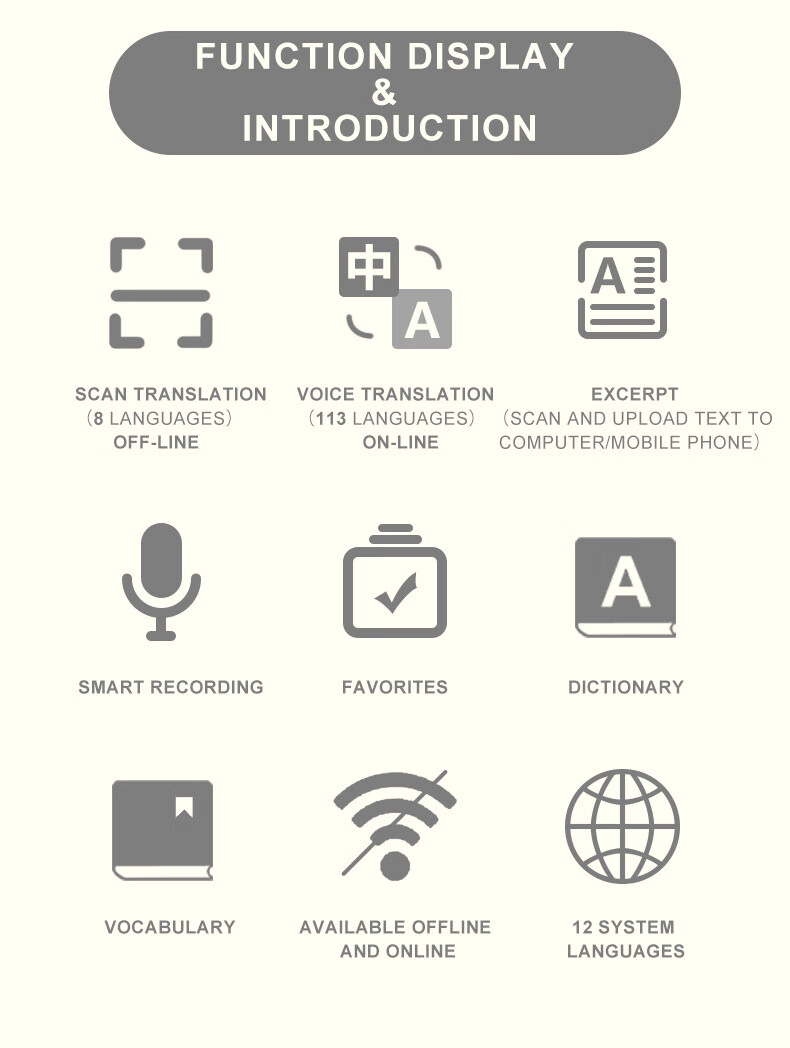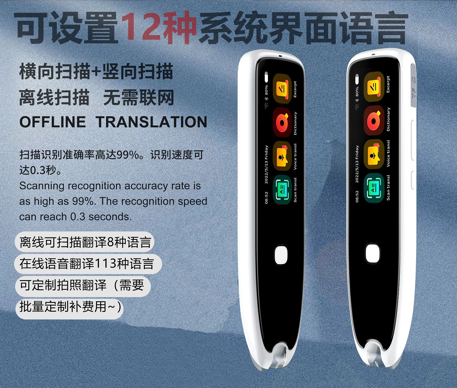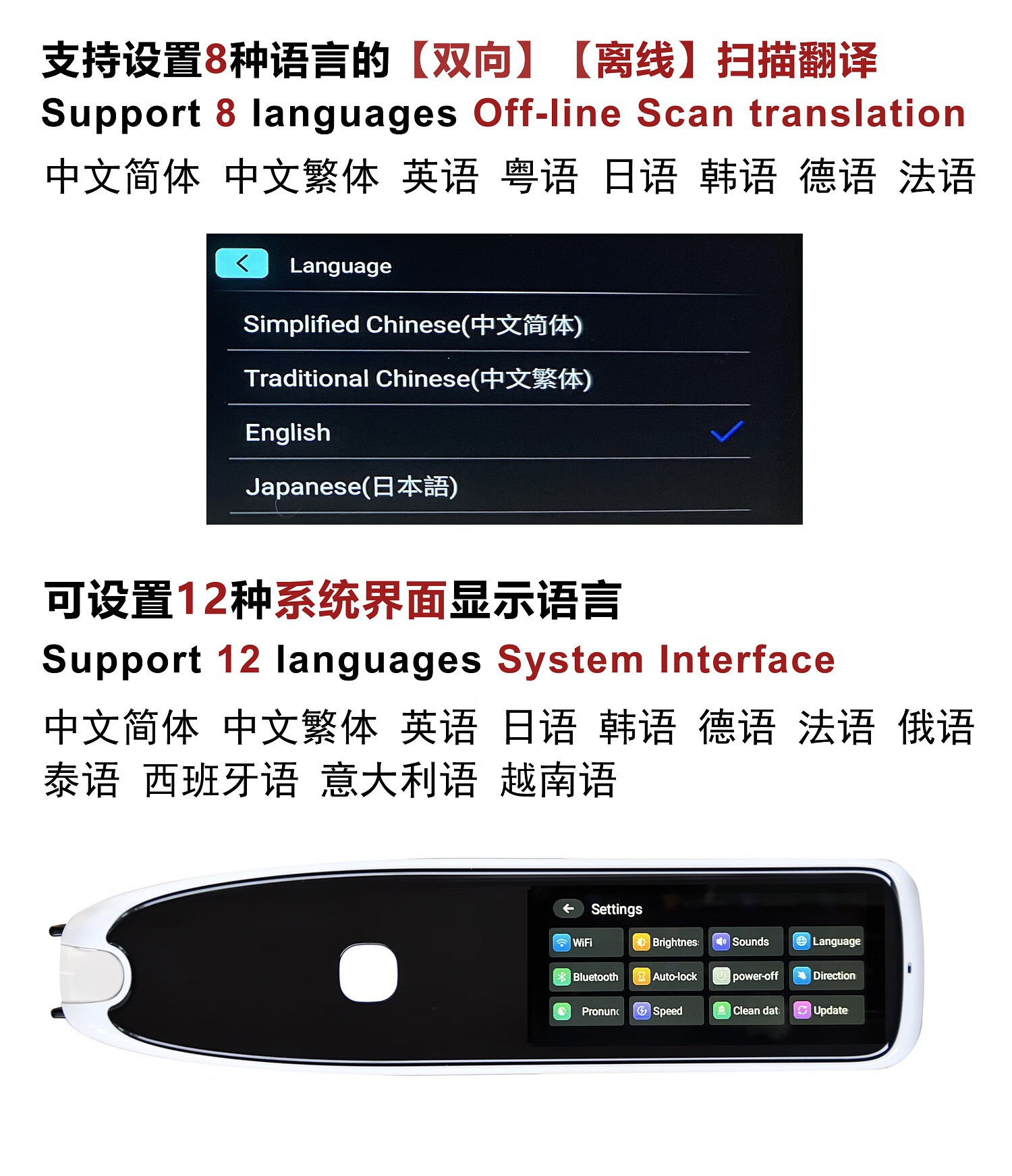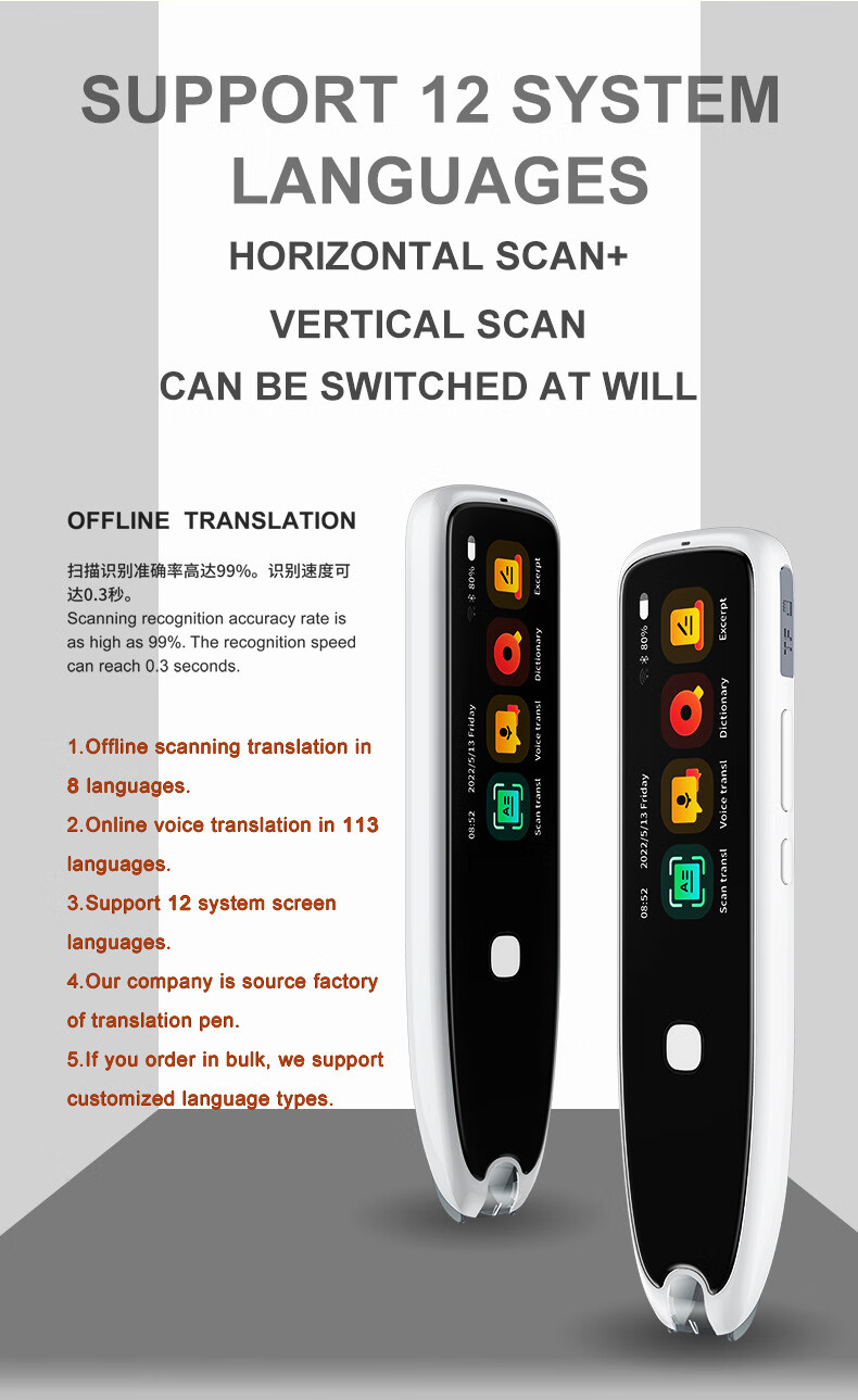 Lápiz de lectura sin conexión en varios idiomas, lápiz de escaneo ruso, malayo, tailandés, vietnamita, lápiz de diccionario universal, cantonés universal, versión internacional de alta gama + 134 traducciones de voz