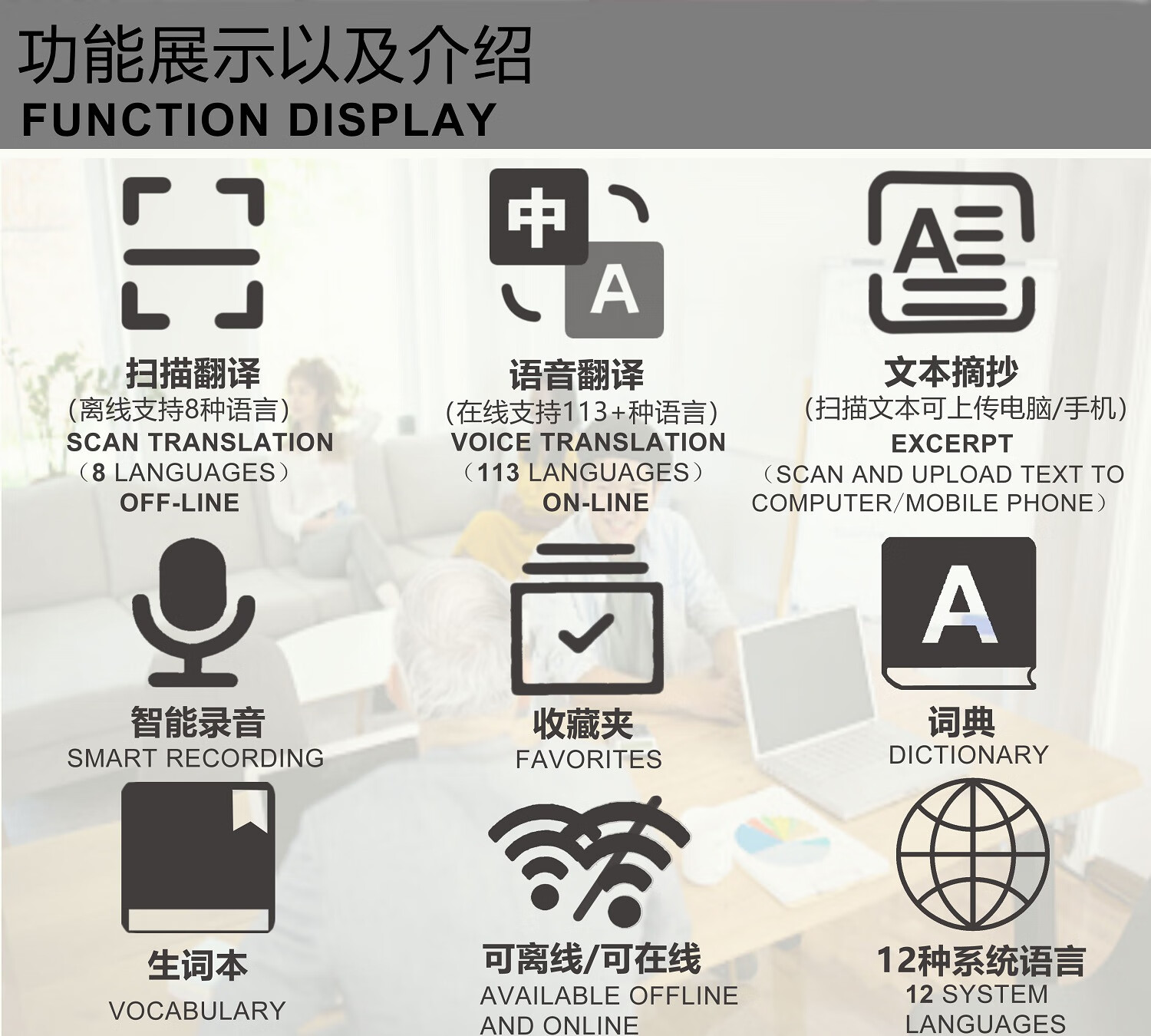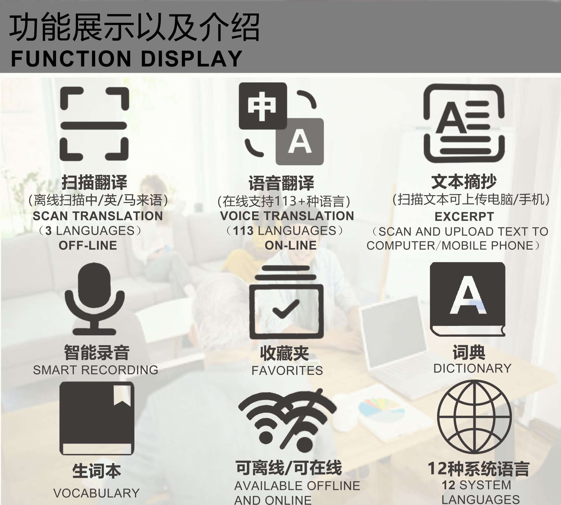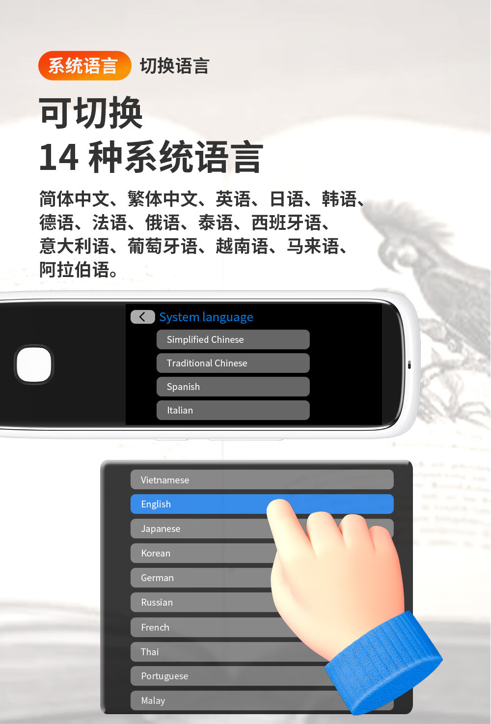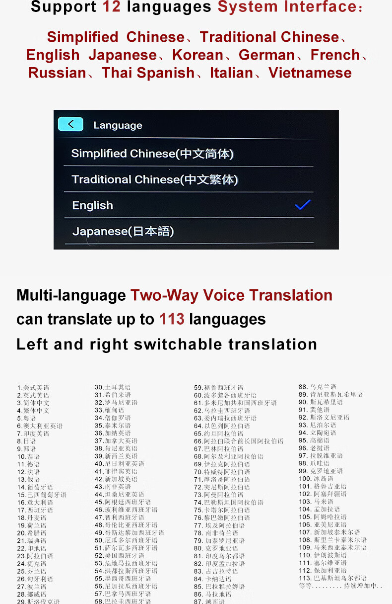 Lápiz de lectura sin conexión en varios idiomas, lápiz de escaneo ruso, malayo, tailandés, vietnamita, lápiz de diccionario universal, cantonés universal, versión internacional de alta gama + 134 traducciones de voz