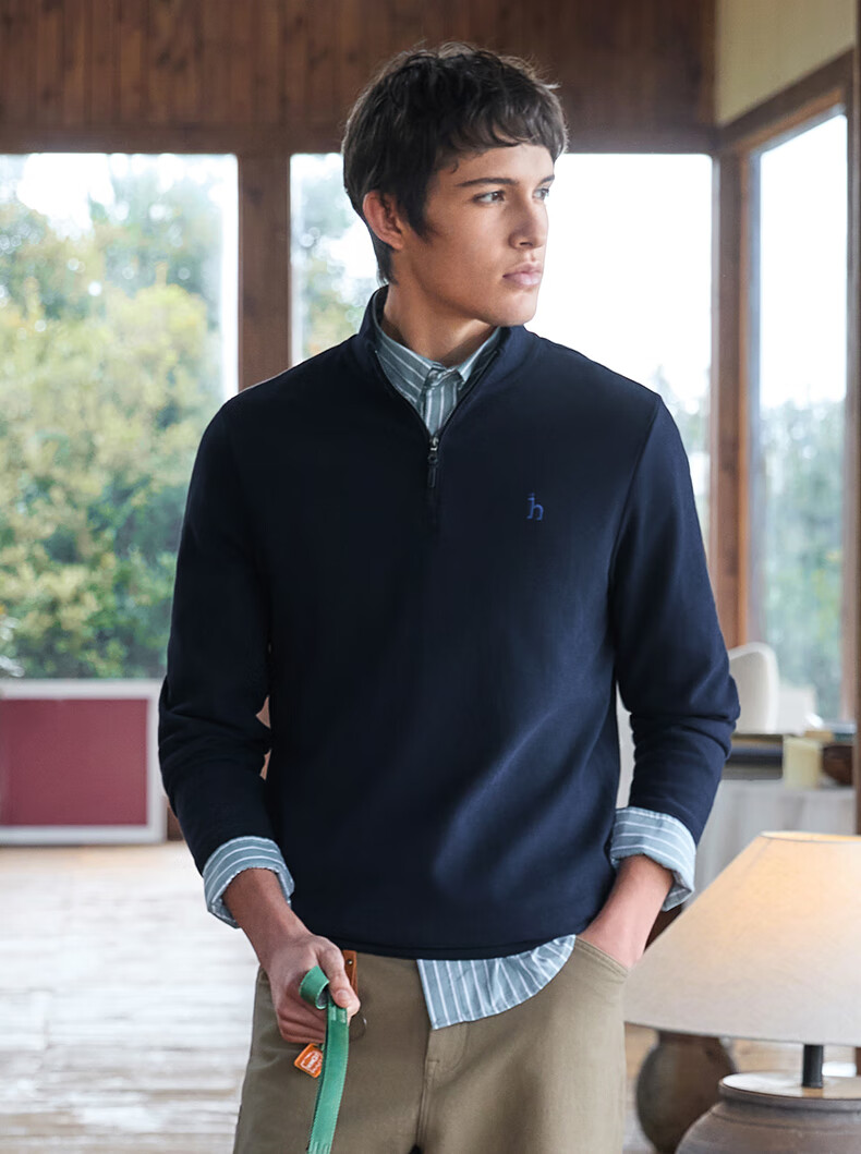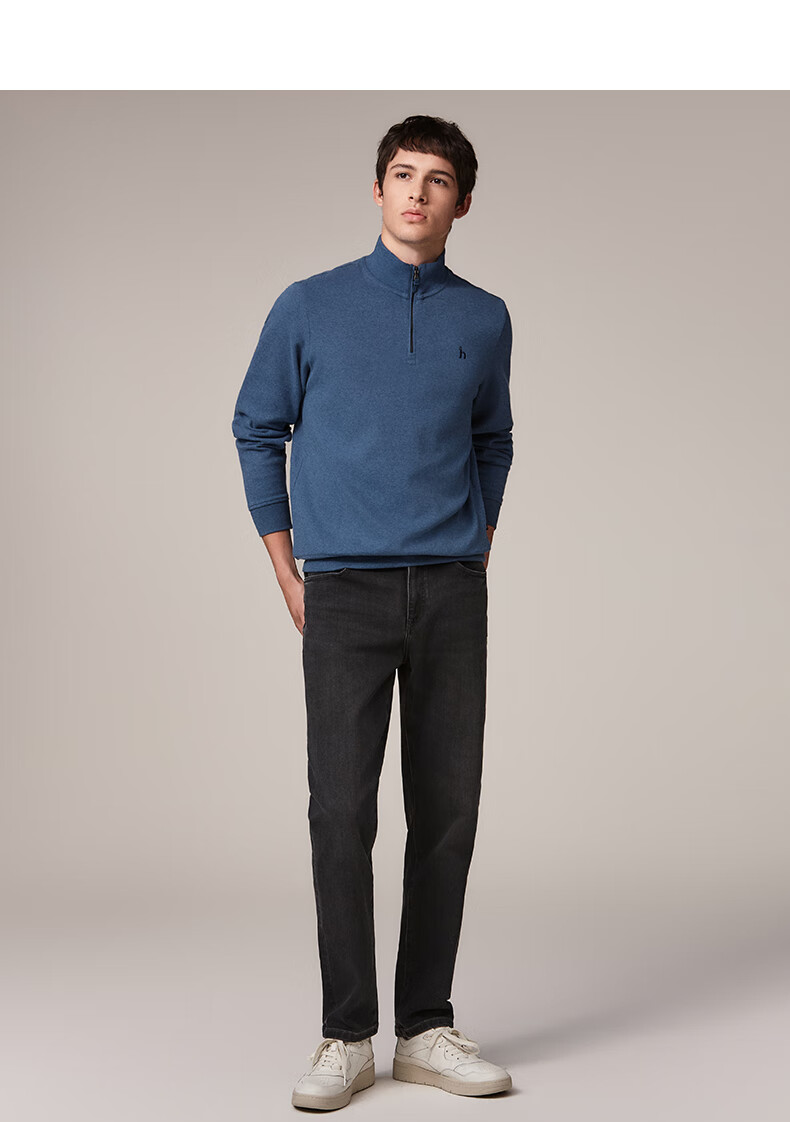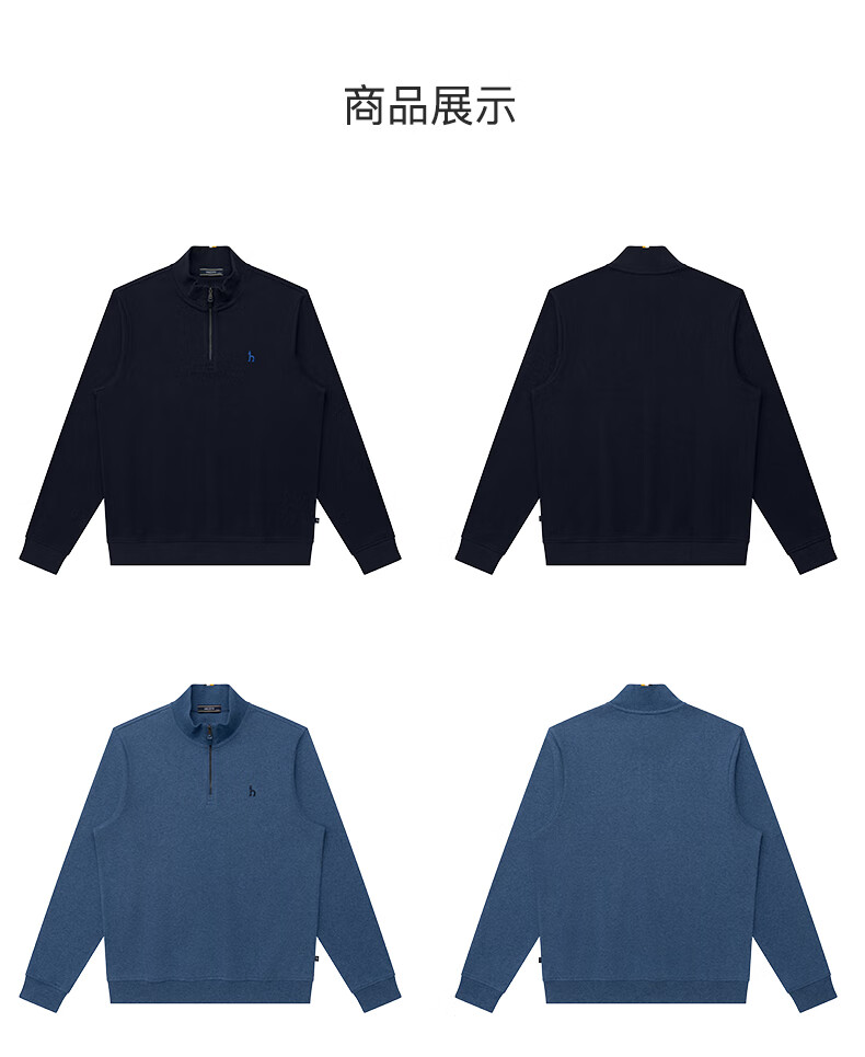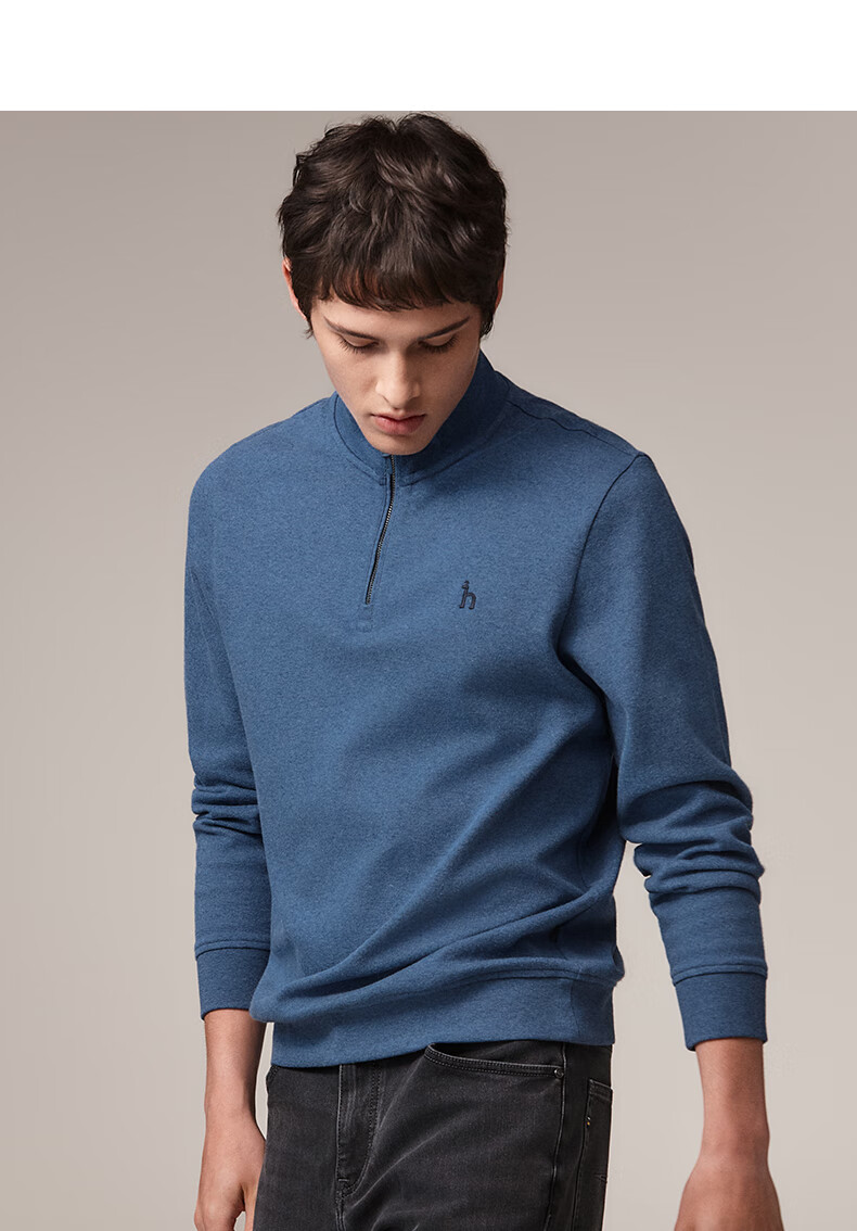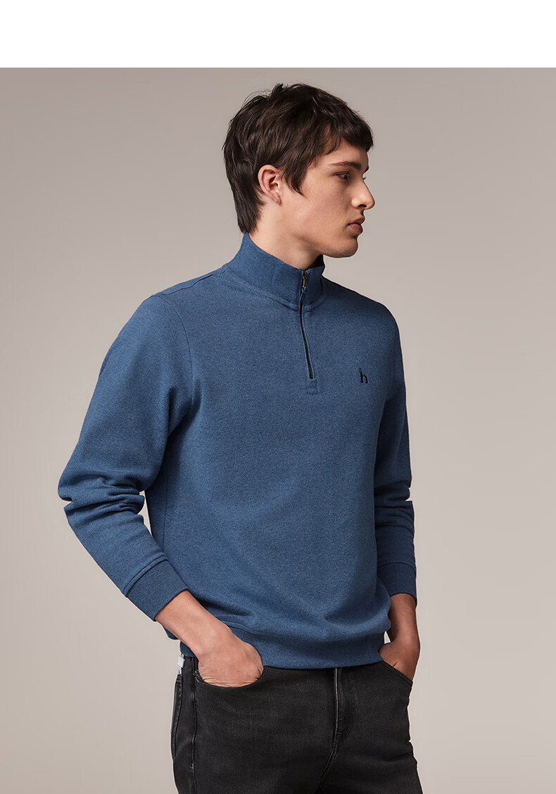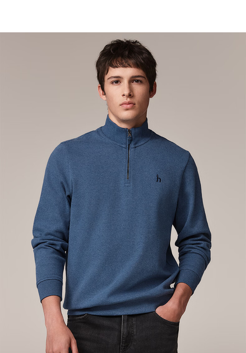 HAZZYS Men's Autumn Casual Top Simple Stand Collar Long Sleeve Sweatshirt Men ABTZE0BDF33 Blue BL L (175/96A 48)