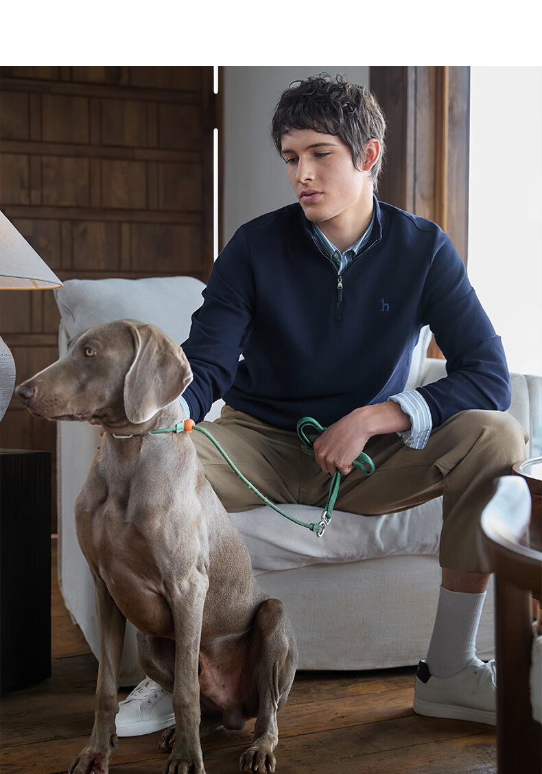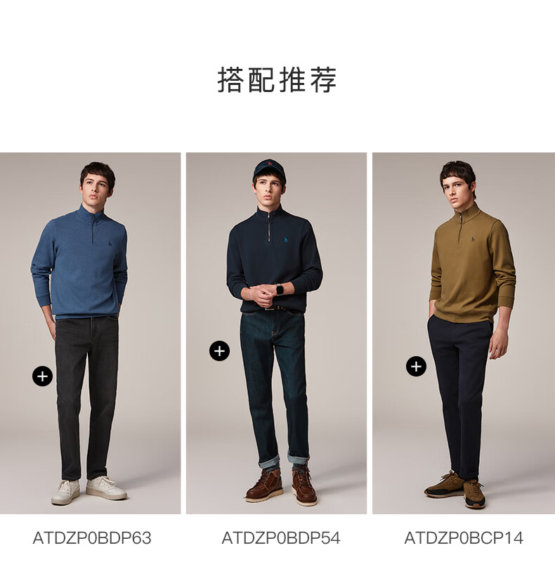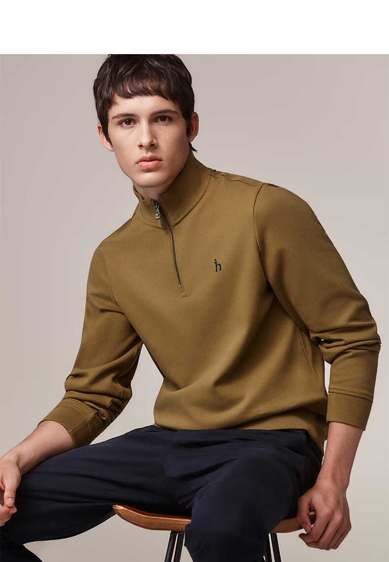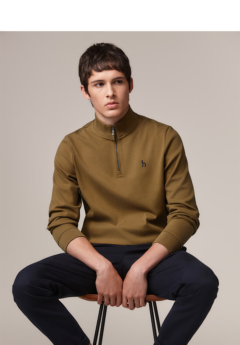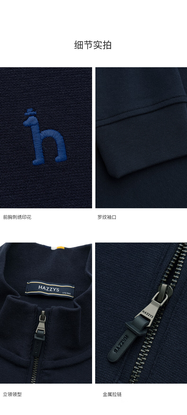 HAZZYS Men's Autumn Casual Top Simple Stand Collar Long Sleeve Sweatshirt Men ABTZE0BDF33 Blue BL L (175/96A 48)