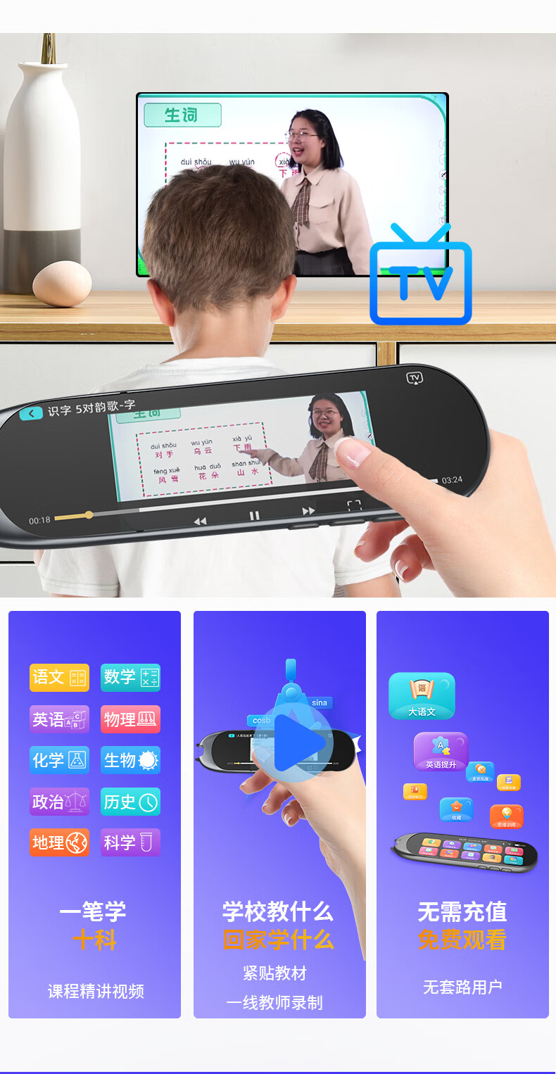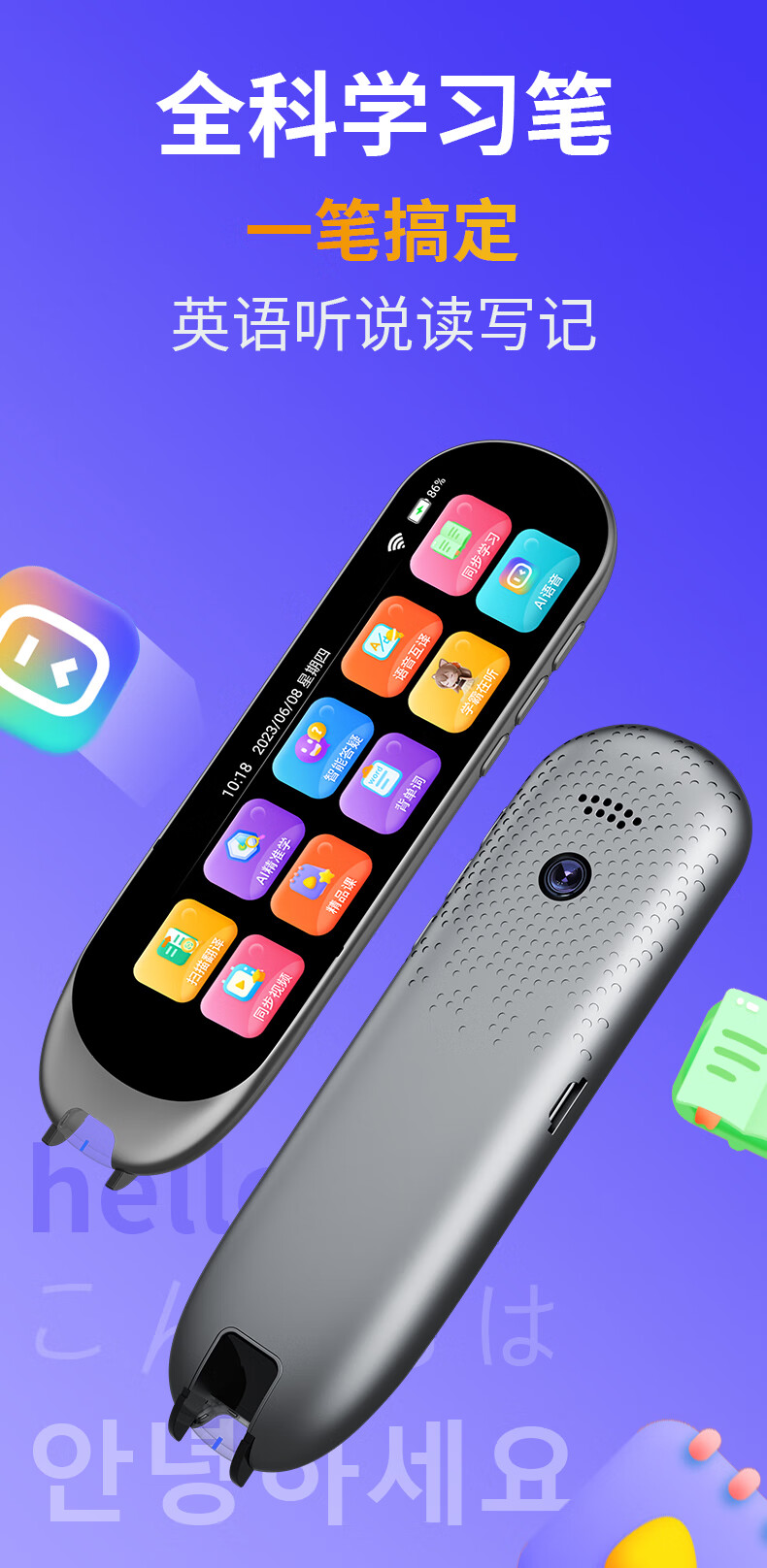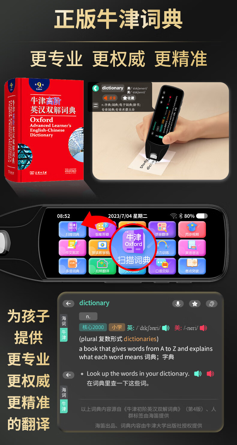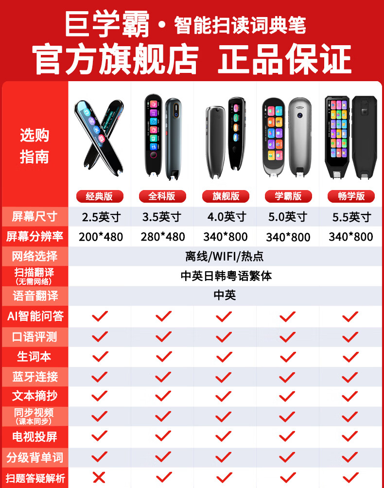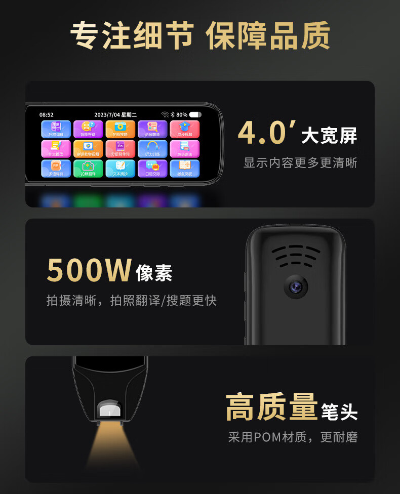 巨学霸 英语点读笔通用万能小学初中高中翻译词典笔 点读书笔小学生人教版课本同步扫读笔不限书籍 【MD21经典版石墨黑-3.69英寸】64G 不限书籍+离线使用+名师课堂+电视投屏+口语评测