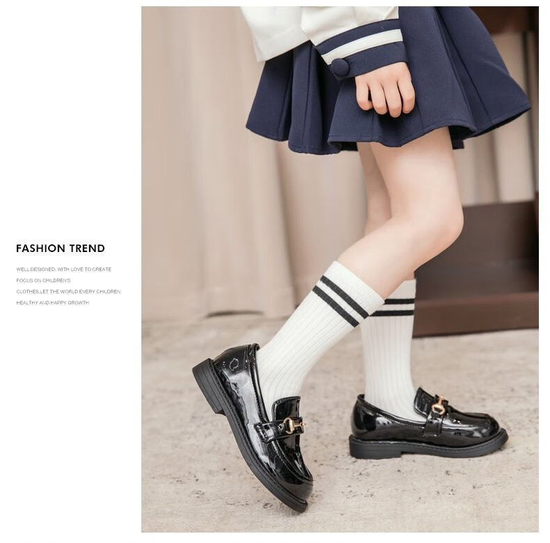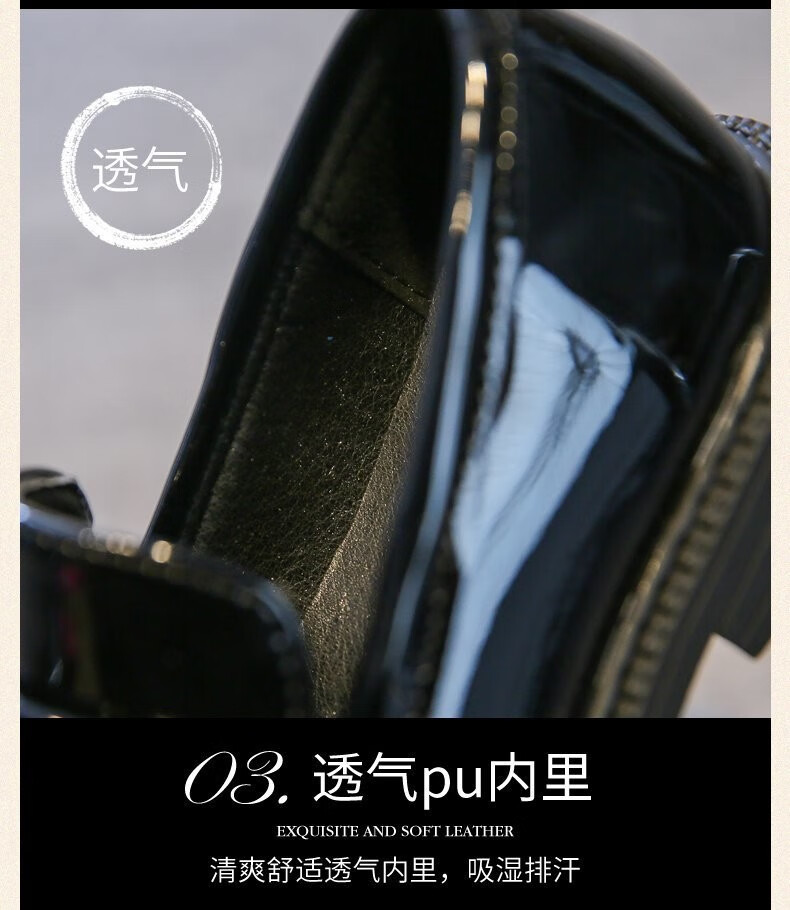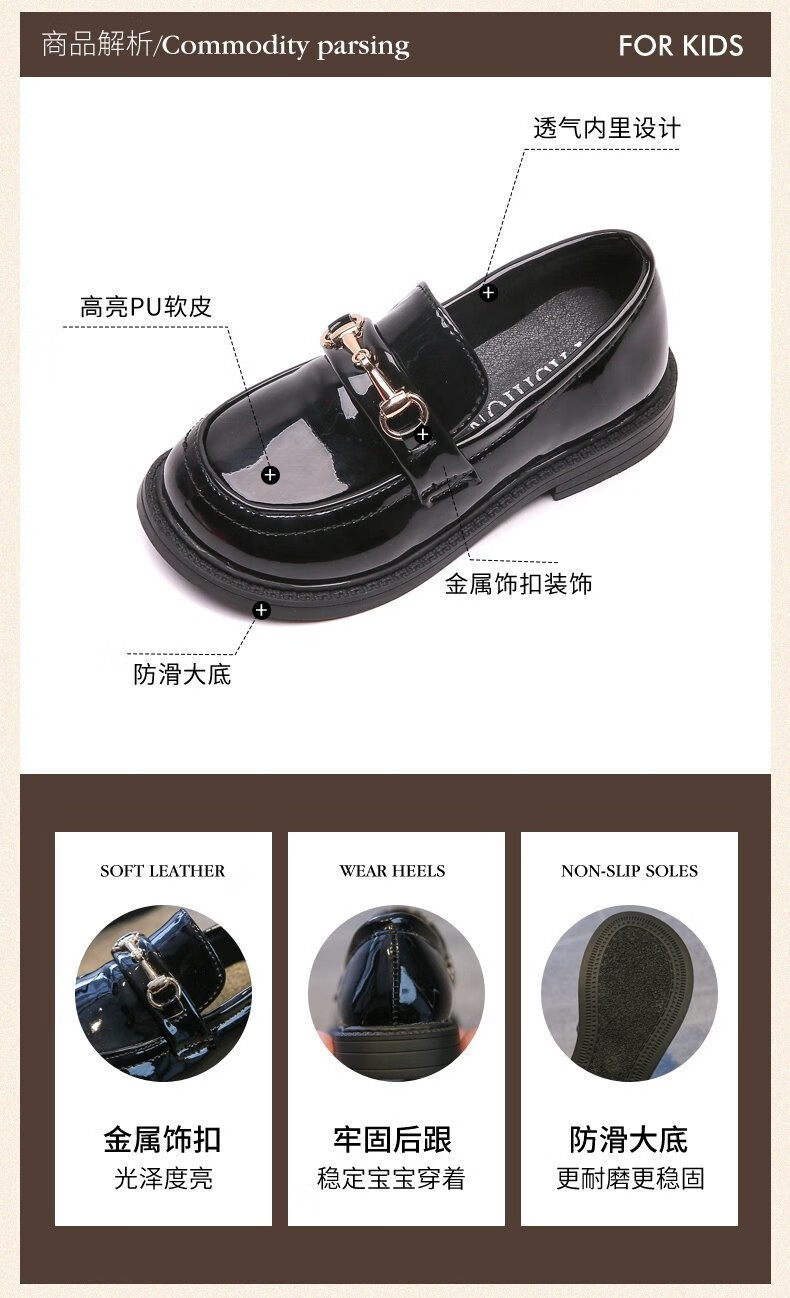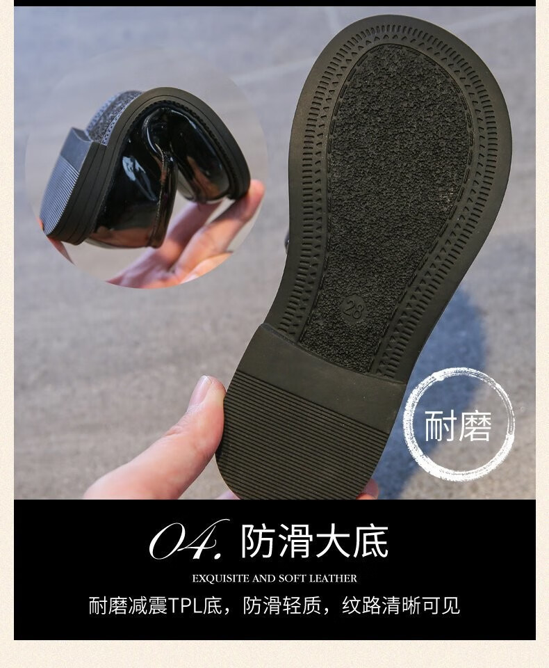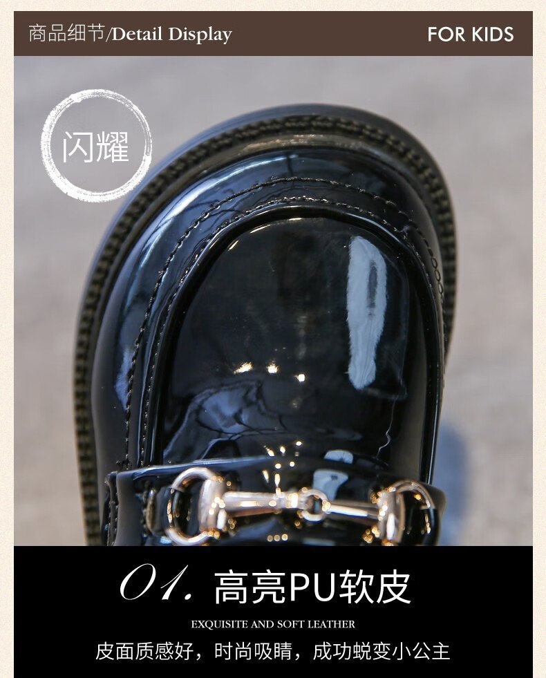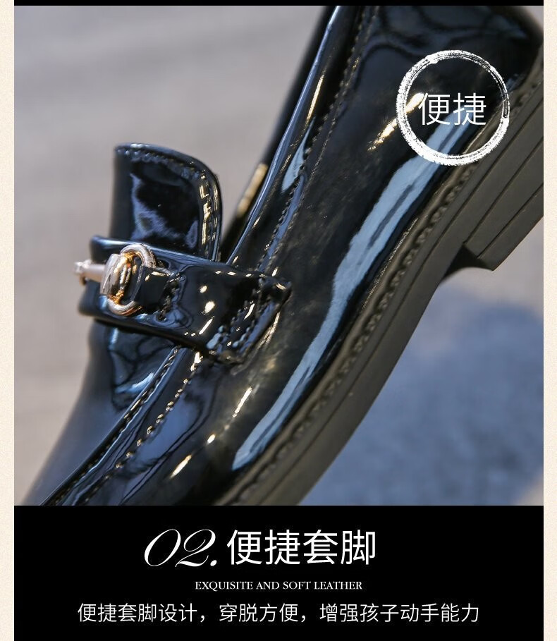 Yupinjia Girls' Leather Shoes British Retro Style Spring and Autumn New Children's Soft Soled Princess Shoes British Retro Single Shoes 5-10 Years Old Black 31 Inner Length 19cm