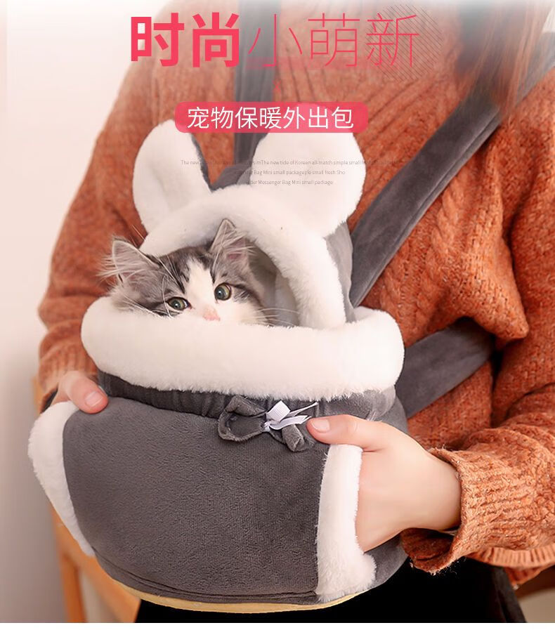 ISHTAR Katzentasche zum Ausgehen, tragbare Katzen-Ausflugstasche, großes Fassungsvermögen, zum Tragen von Winter-warmen Hunde-Schultaschen, Haustier-Rucksack, graue Kaninchenohr-Katzentasche, S, kleinere Empfehlung: 6Jin Jin entspricht 0,5 kg im Inneren