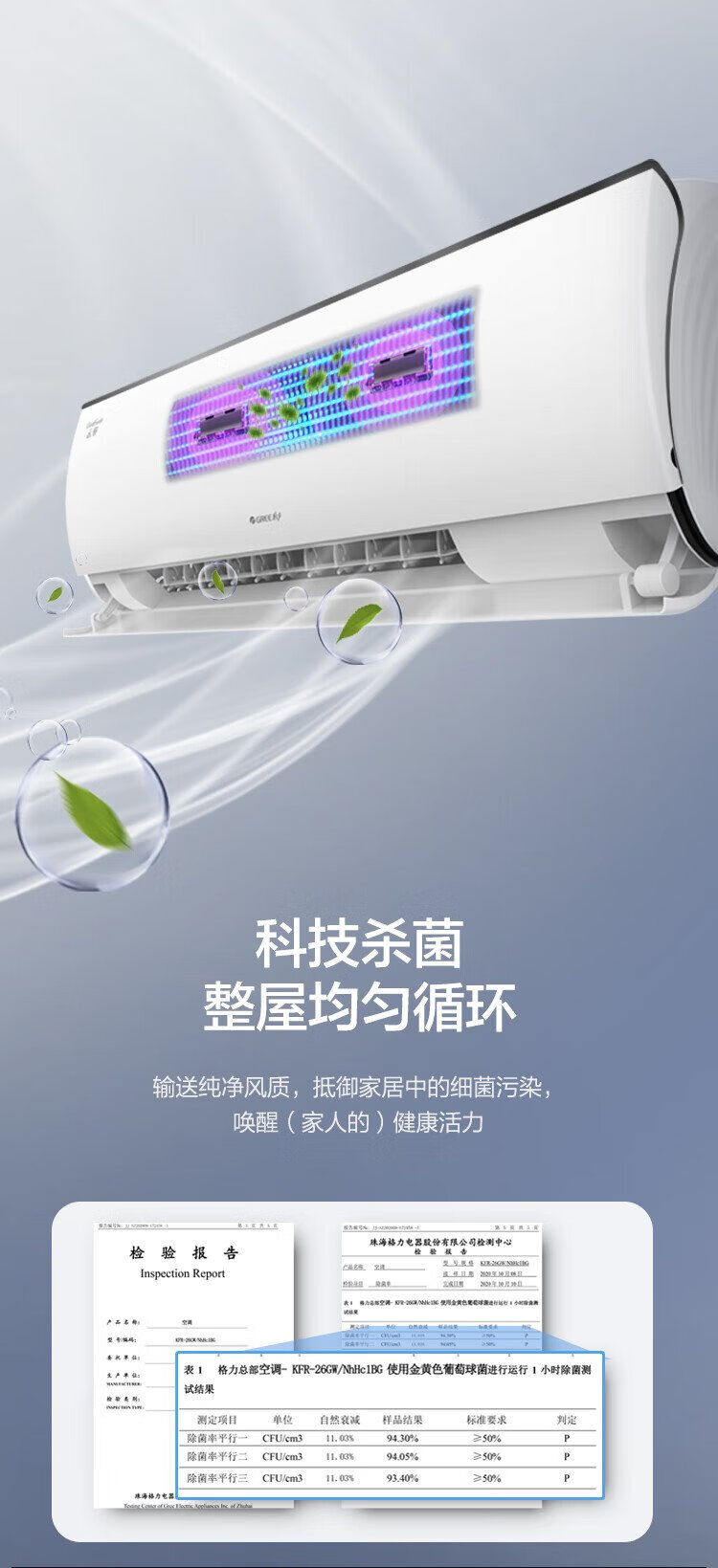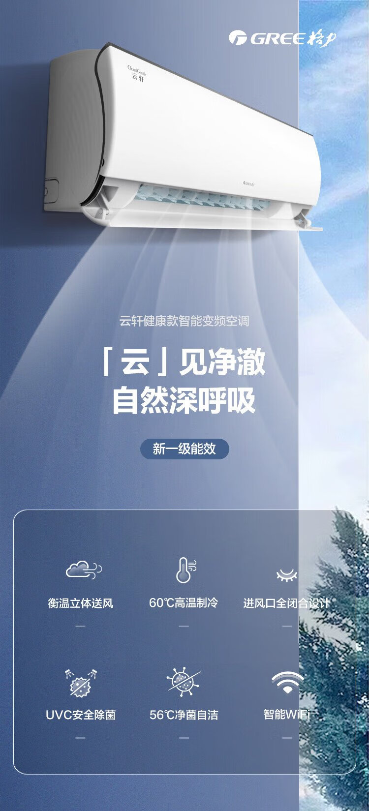 Gree air conditioner 1.5 hp Yunxuan UVC ultraviolet sterilization healthy air conditioner New level energy efficiency variable frequency heating and cooling Intelligent wall-mounted bedroom air conditioner State subsidy for home appliances 1.5 hp Level 1 energy efficiency UV sterilization About 16-20 square meters