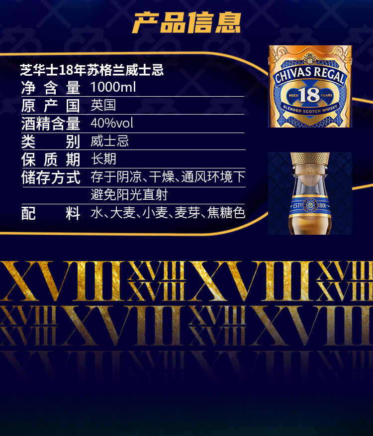 Chivas Regal 12 years/XV15 years joint model/18 years Scotch blended whiskey original bottle imported wine overseas version 1000ml Chivas Regal 12 years single bottle without box and code