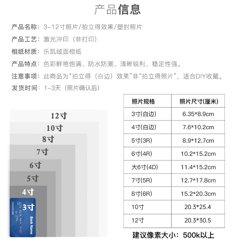 3/612英寸洗照片冲印情侣全家福拍立得高清冲洗打印证件照洗相片手机照塑封 3寸 乐凯绒面