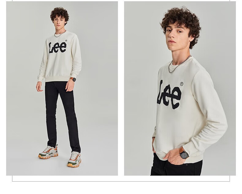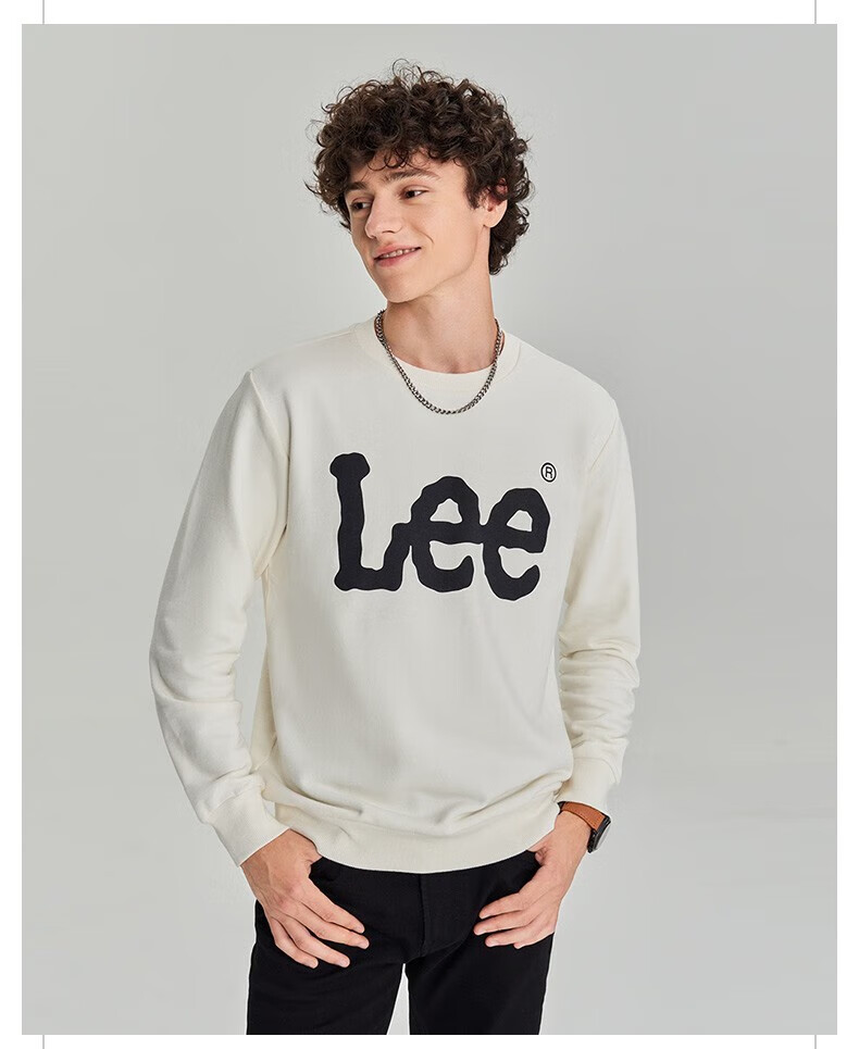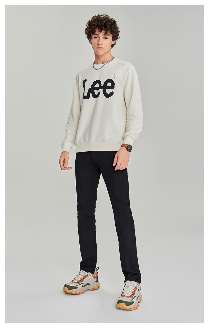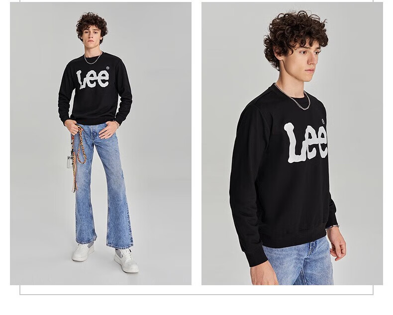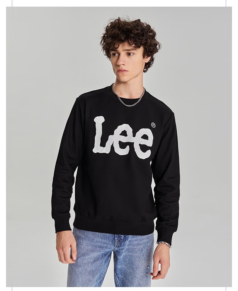 Lee shopping mall same style standard version round neck pullover logo basic casual men's long-sleeved sweatshirt trend LMT006 black S