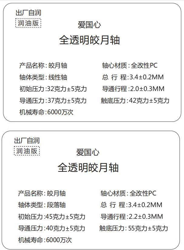 皎月轴全透明PC段落线性轴RGB热插拔客制化机械键盘DIY轴体 线性轴 100颗皎月轴罐装