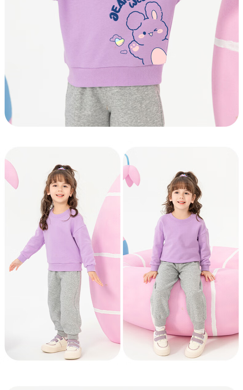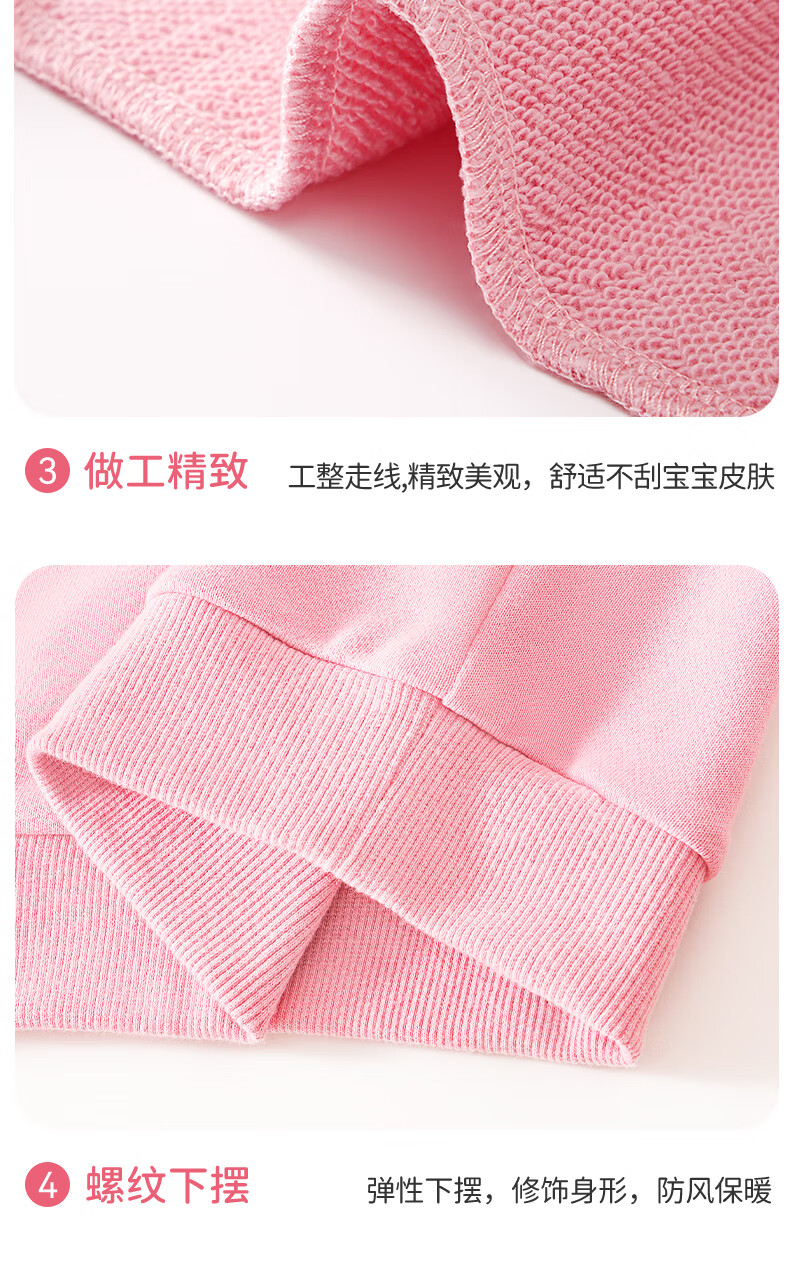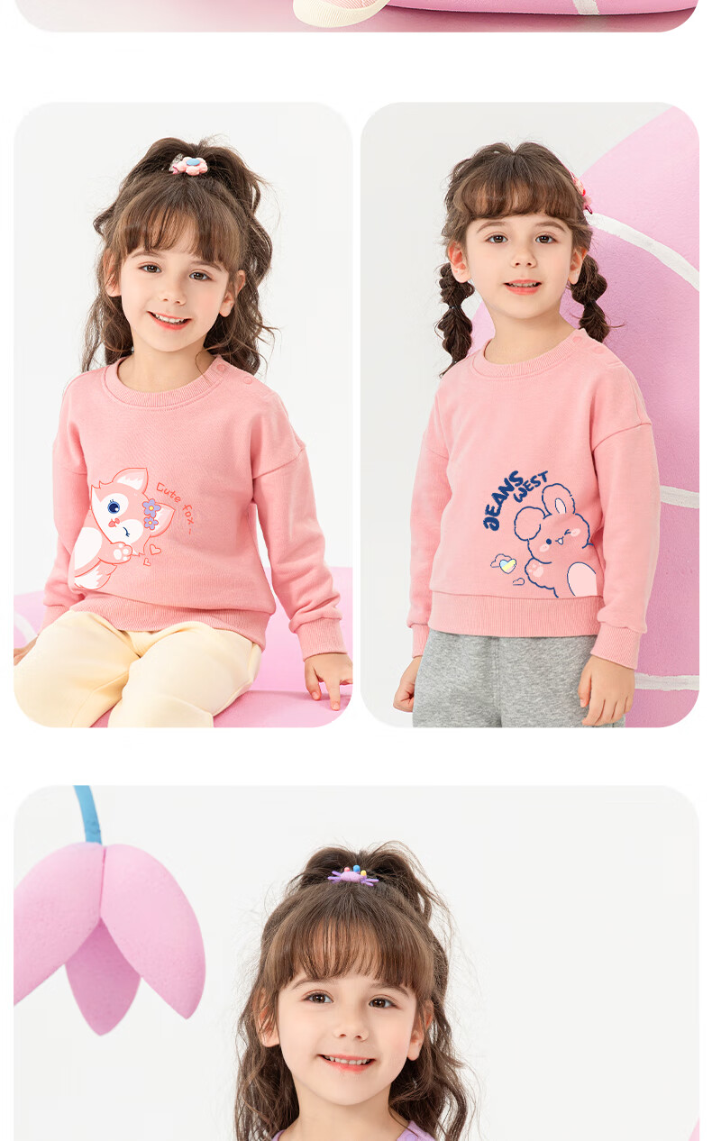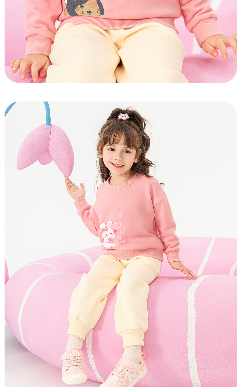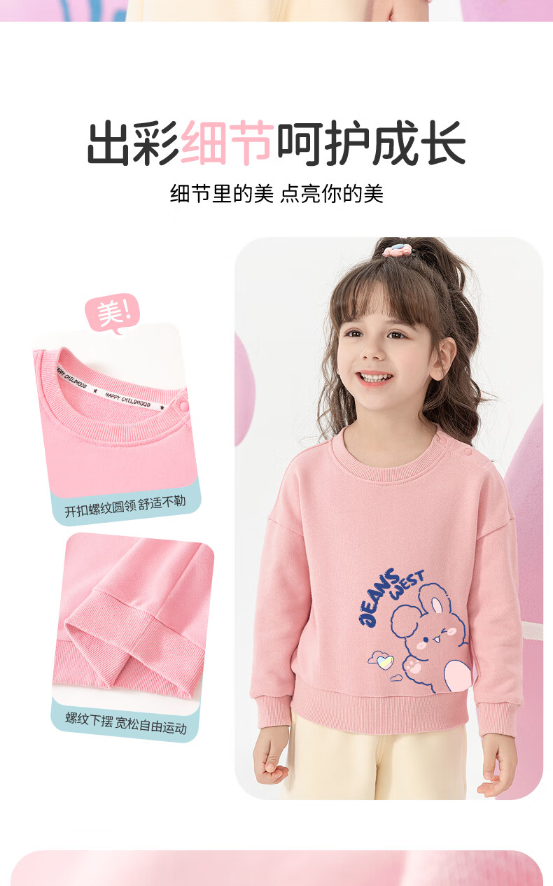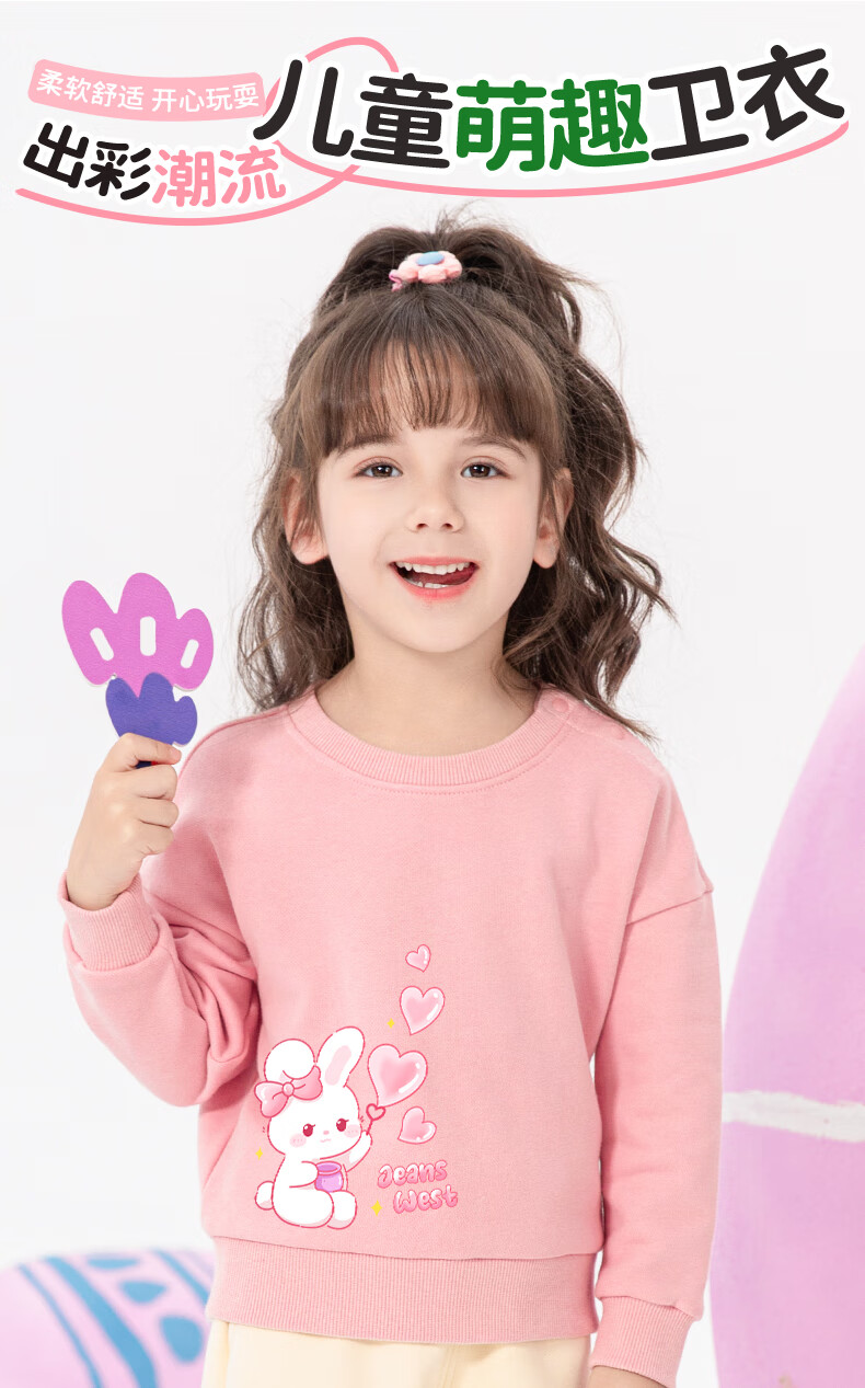 JeansWest Girls Sweatshirt Spring and Autumn Children's Round Neck Autumn Clothes Little Baby Cute Versatile Knitted Girls Top Pink J Bubble Rabbit Bottom Left 110