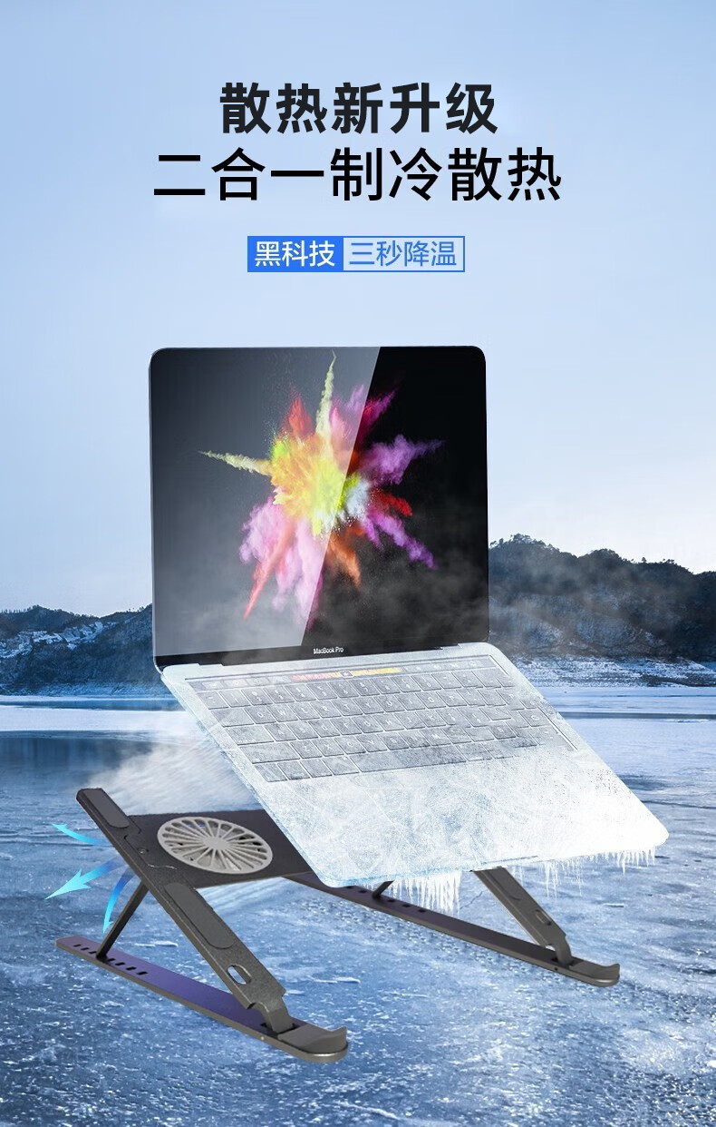 好又齐笔记本支架散热器苹果华为荣耀小米华硕平板电脑cpu风冷降温送风式外置风扇冷却便携式增高架联想 二合一铝合金-灰【散热黑科技+折叠支架高度可调节