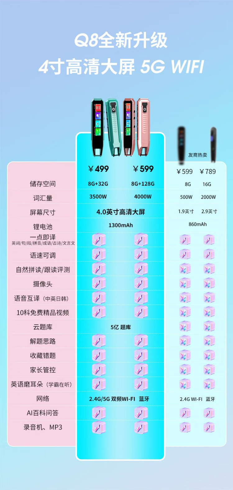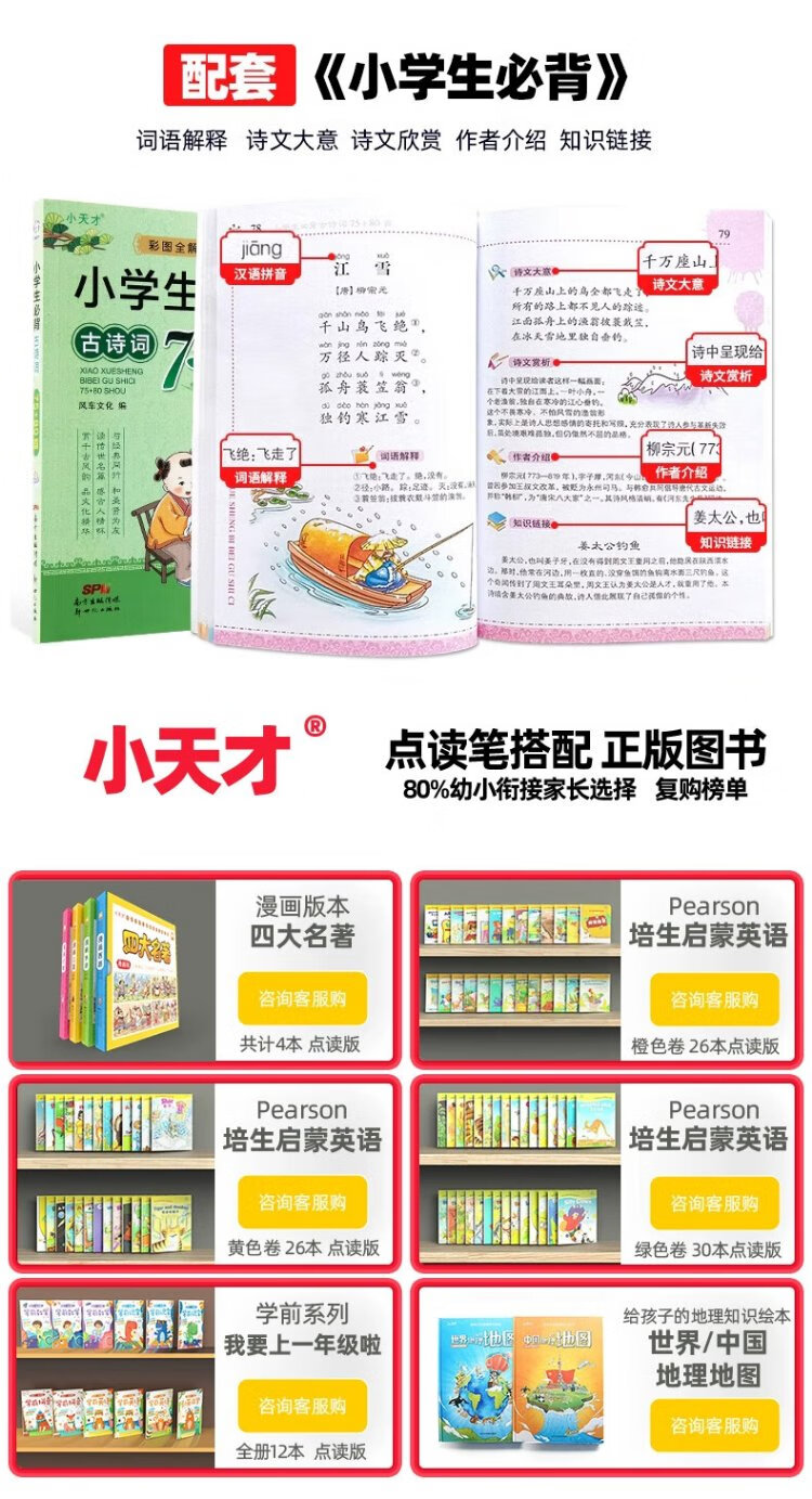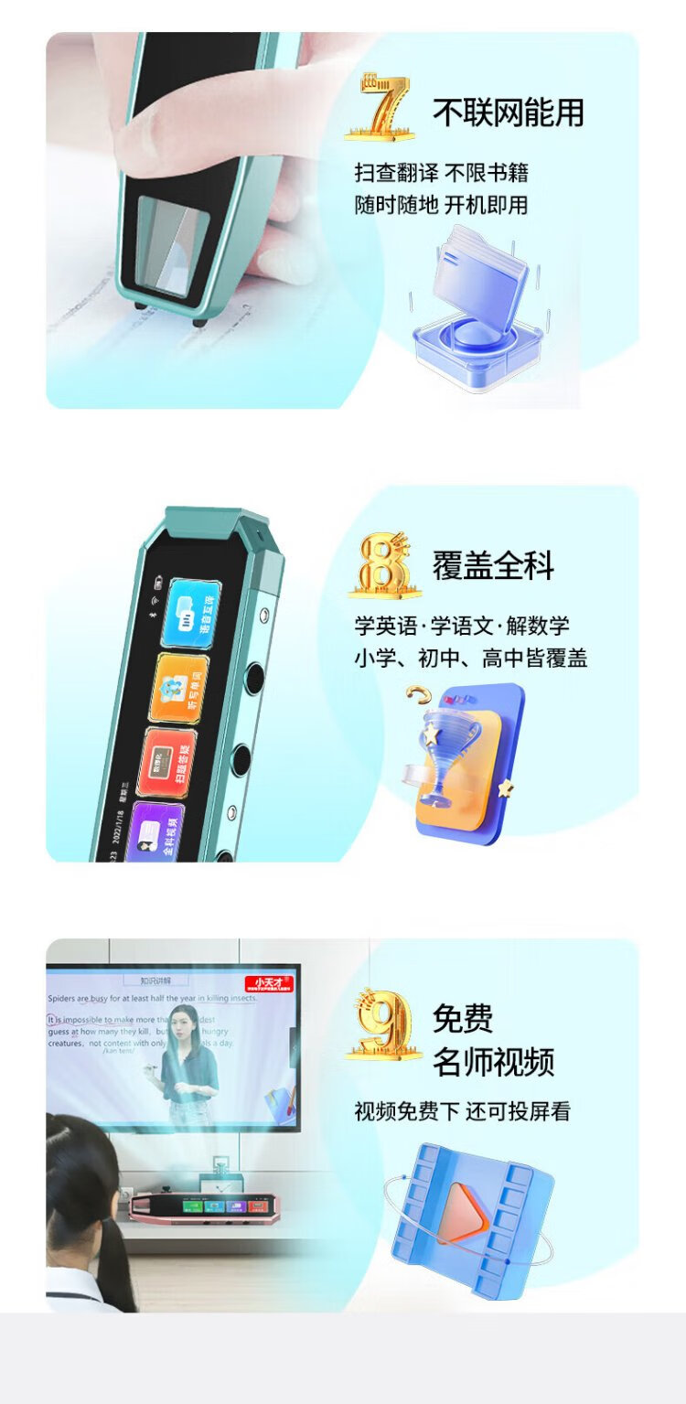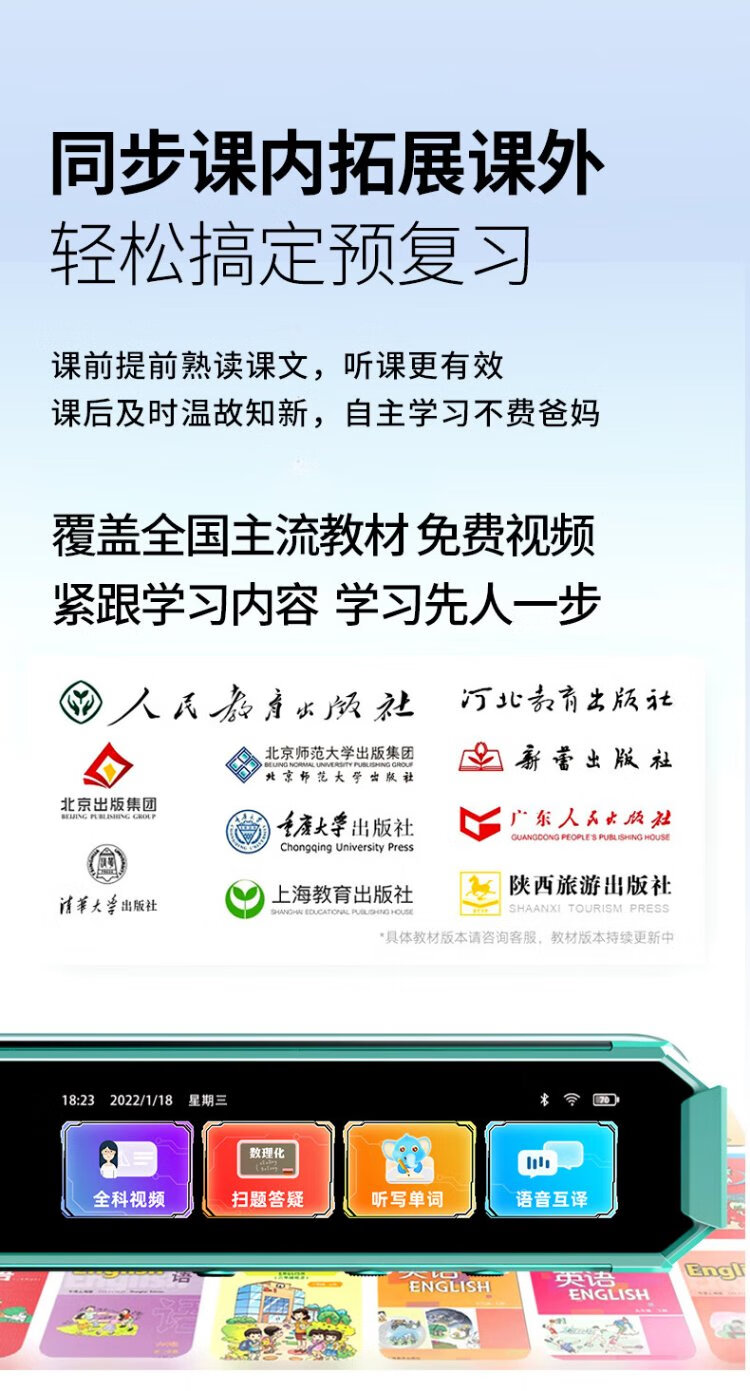 Little Genius 8-Cang Sufa Q8 Textbook Synchronous Reading Pen Universal English Multifunctional Intelligent Learning Scanner Pen Reading Machine Primary to Junior High School English Video Screen Dictionary Pen Q8 Qianshancui 8G+128G Ultimate Edition Standard Reading Pen Little Genius Ancient Poems