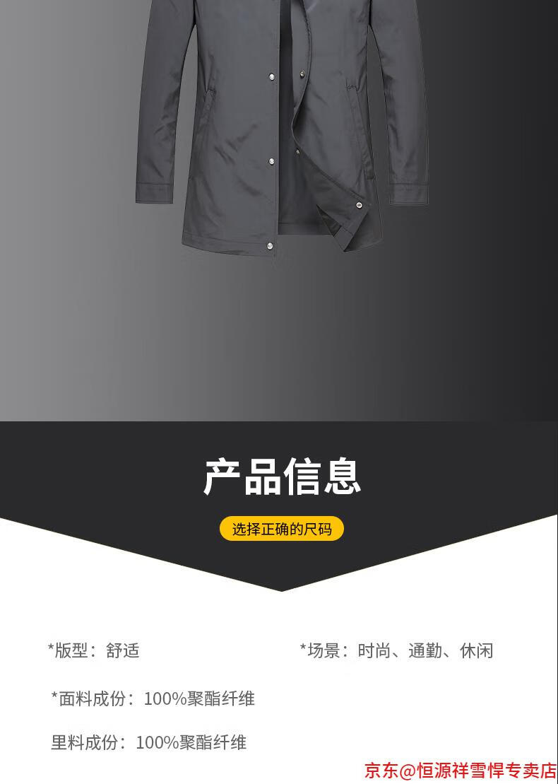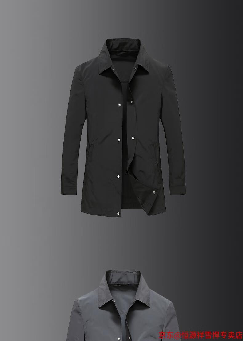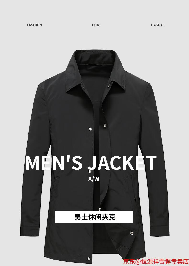 恒源祥男装中长款风衣男2023秋季新款时尚通勤男士外套 黑色 170