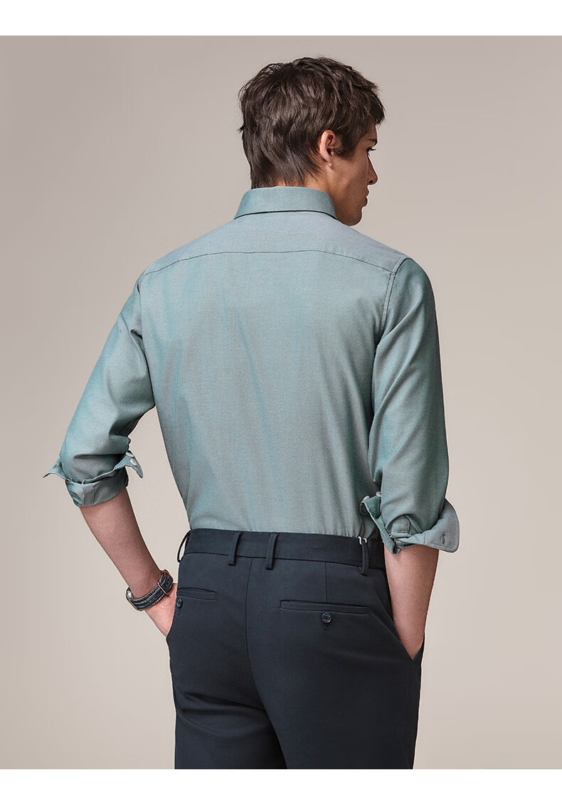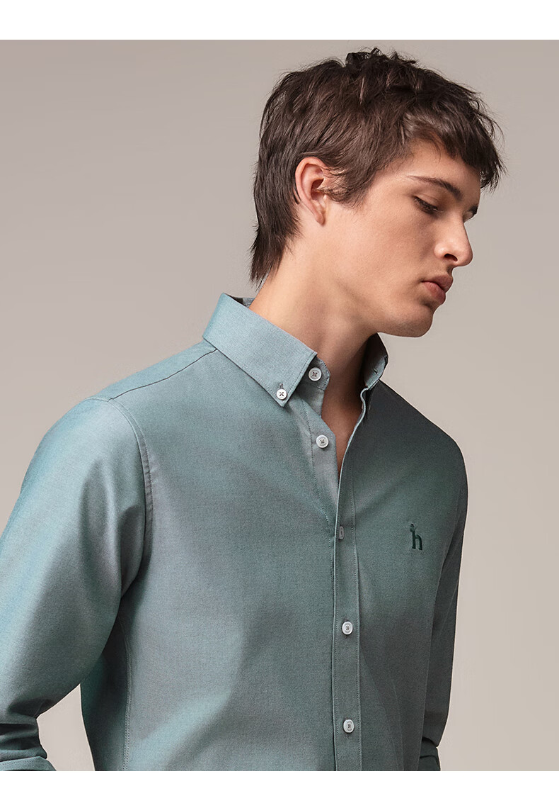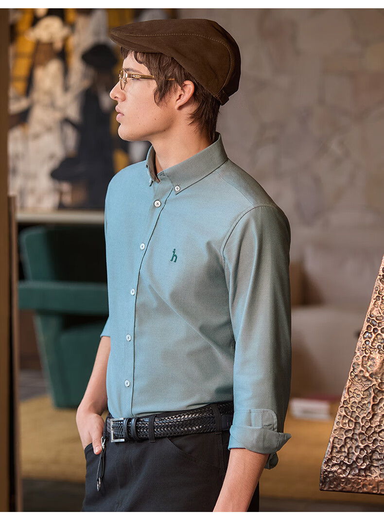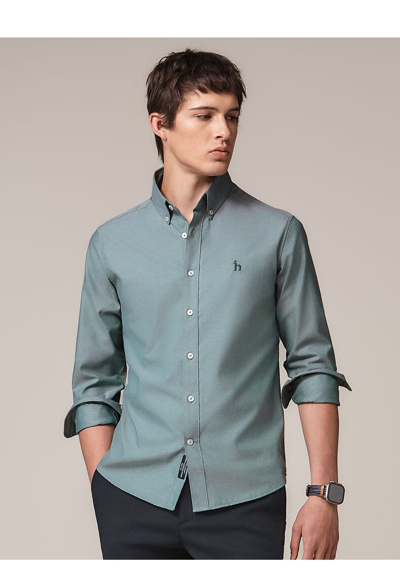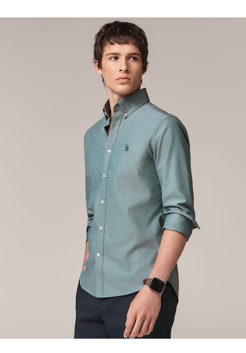 HAZZYS Herren Herbst Business Casual Herrenhemden Einfarbig Einfaches Langarmhemd Herren ASCZK1BCF10 Dunkelgrün DG L (175/96A 48)