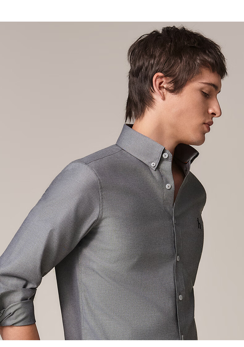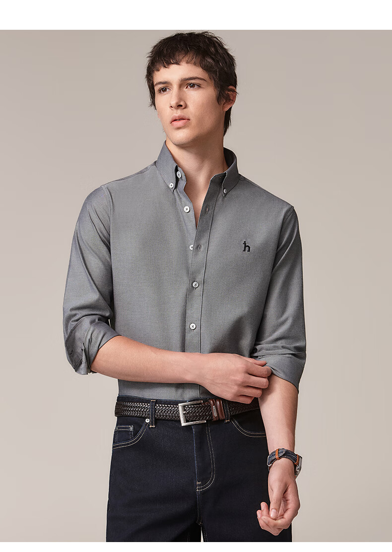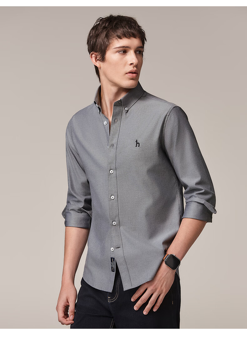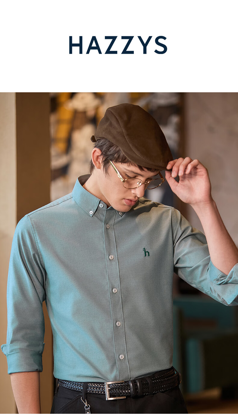 HAZZYS Herren Herbst Business Casual Herrenhemden Einfarbig Einfaches Langarmhemd Herren ASCZK1BCF10 Dunkelgrün DG L (175/96A 48)