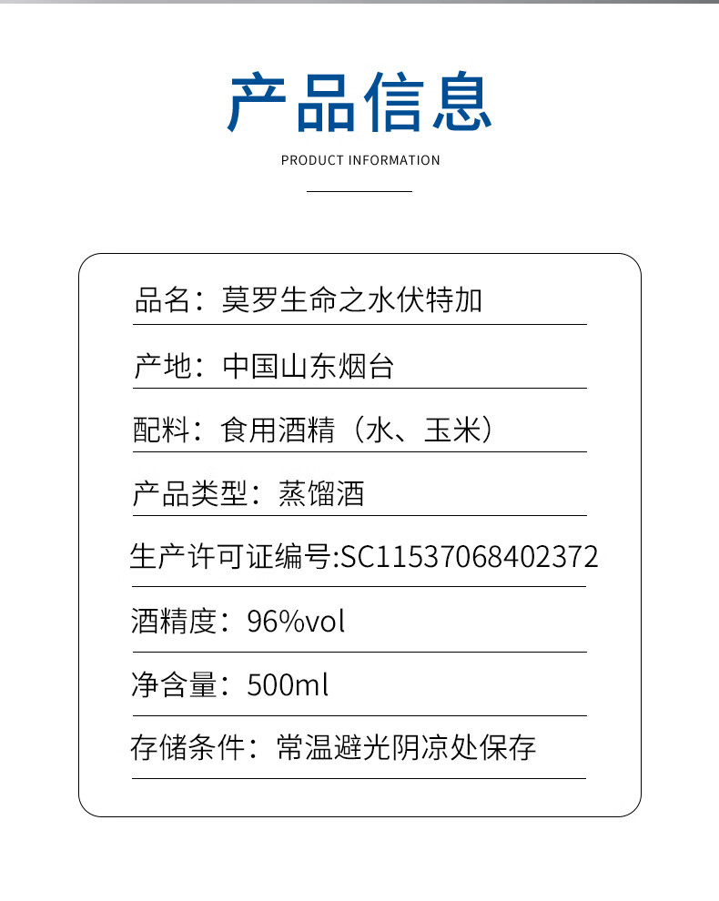 生命之水行货 生命之水伏特加96度高度烈酒调酒基酒洋酒500ml 生命之水伏特加 500ml