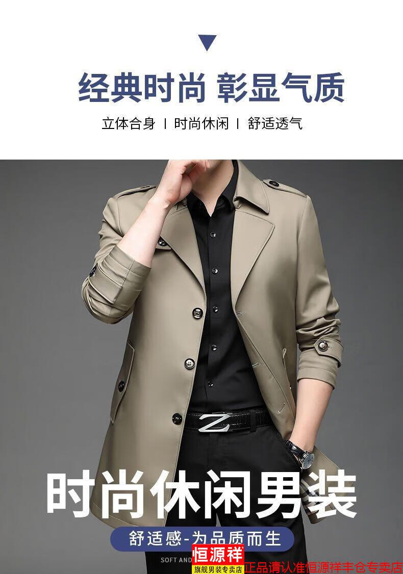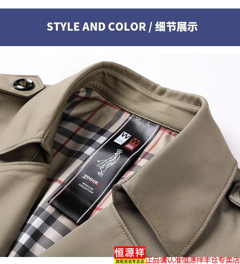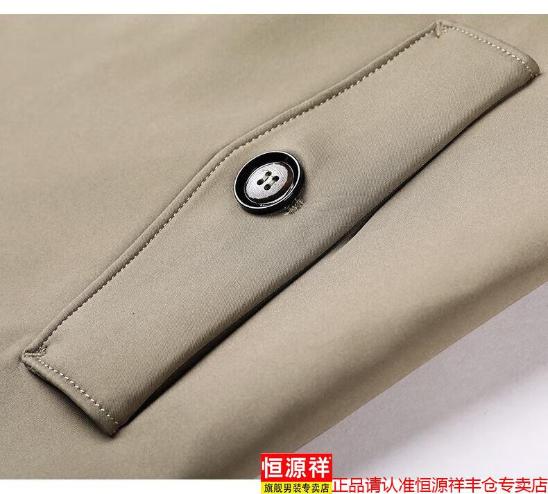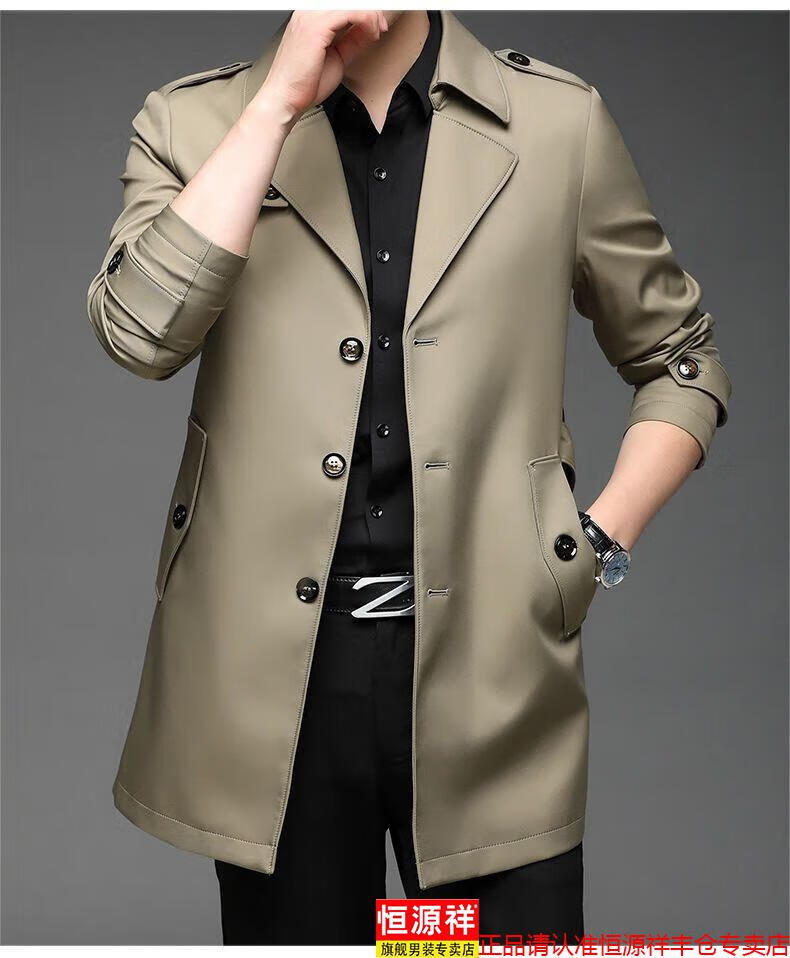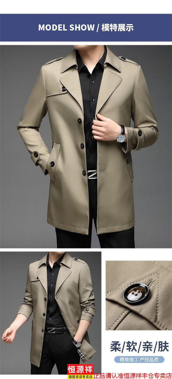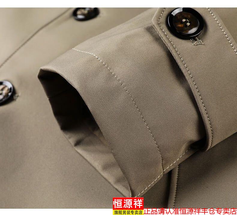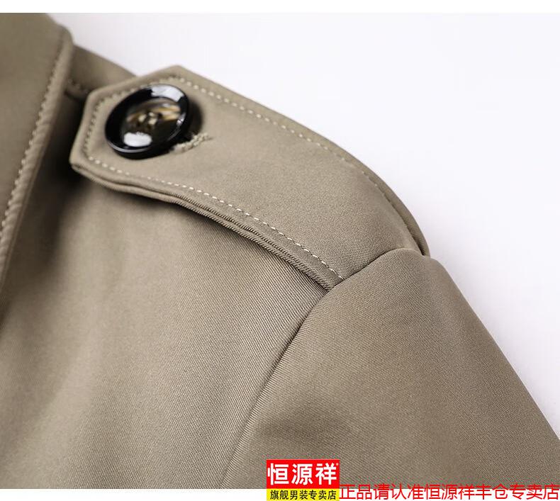 恒源祥春秋季男士风衣加肥加大中年商务休闲中长款外套2025年新款百搭新 卡其 175