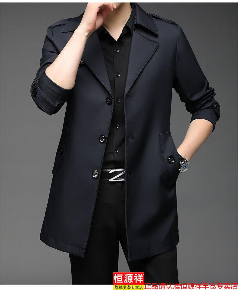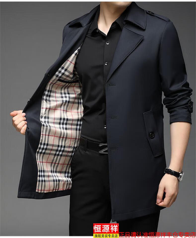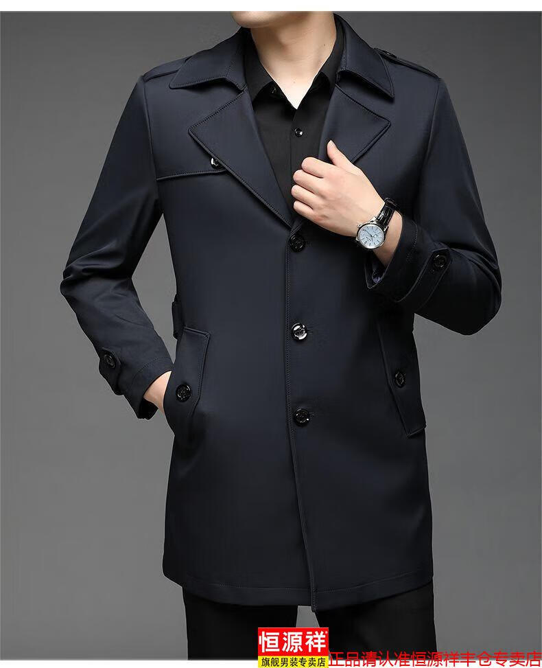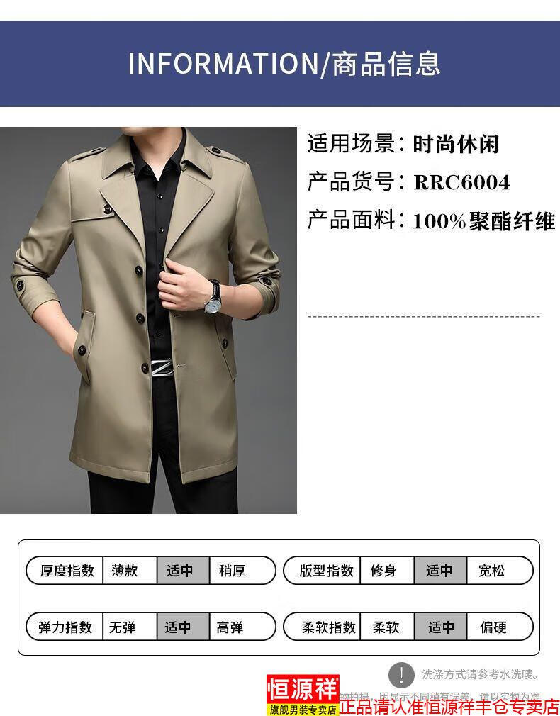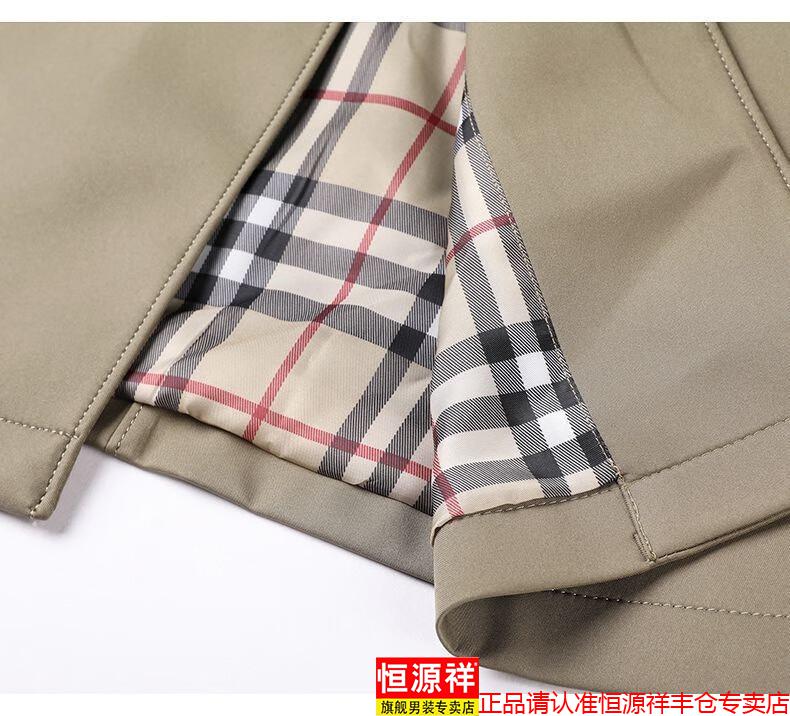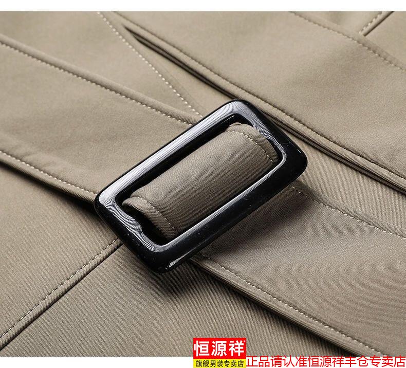 恒源祥春秋季男士风衣加肥加大中年商务休闲中长款外套2025年新款百搭新 卡其 175