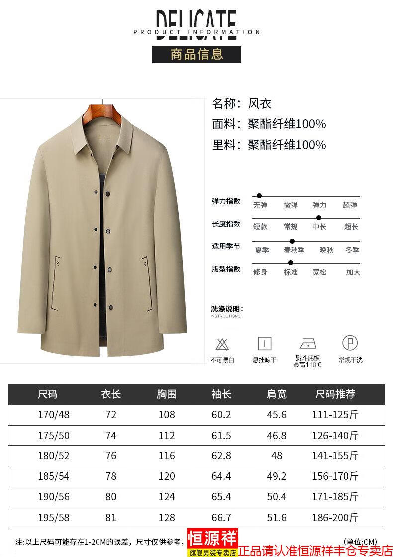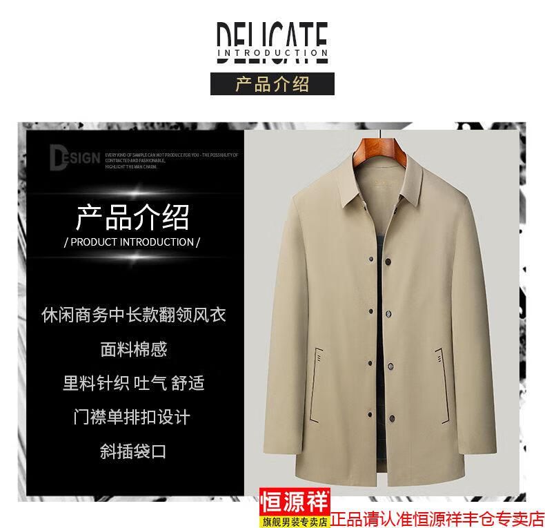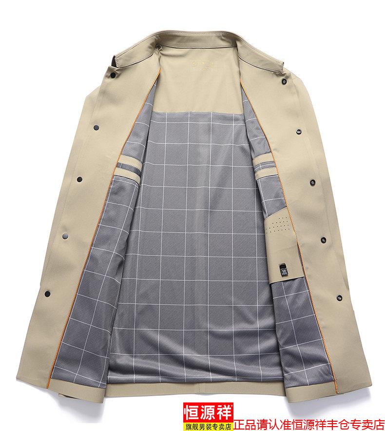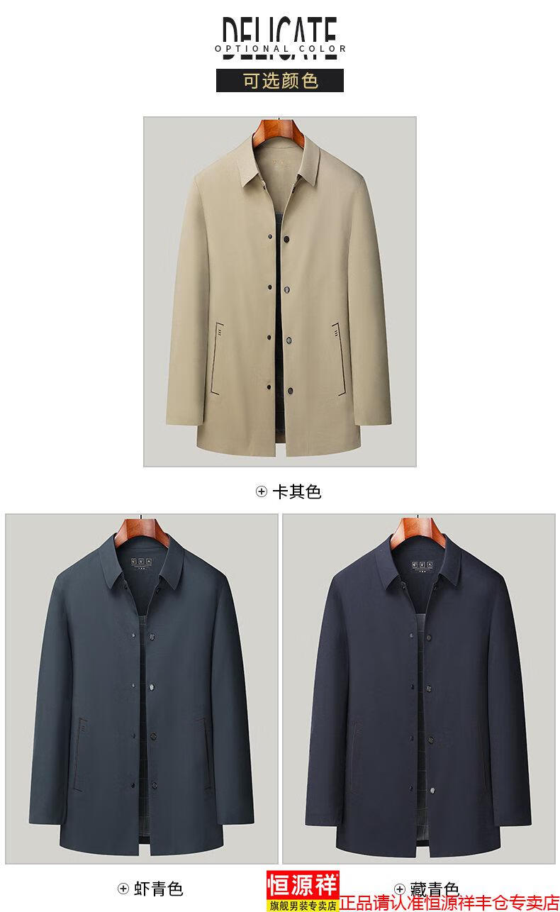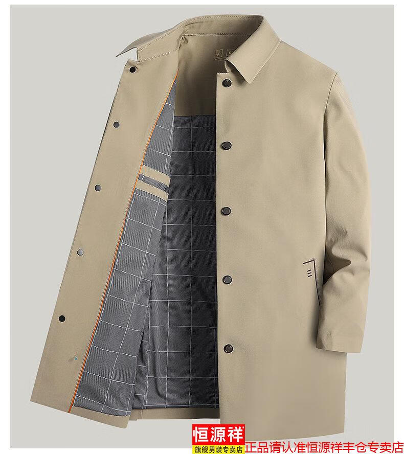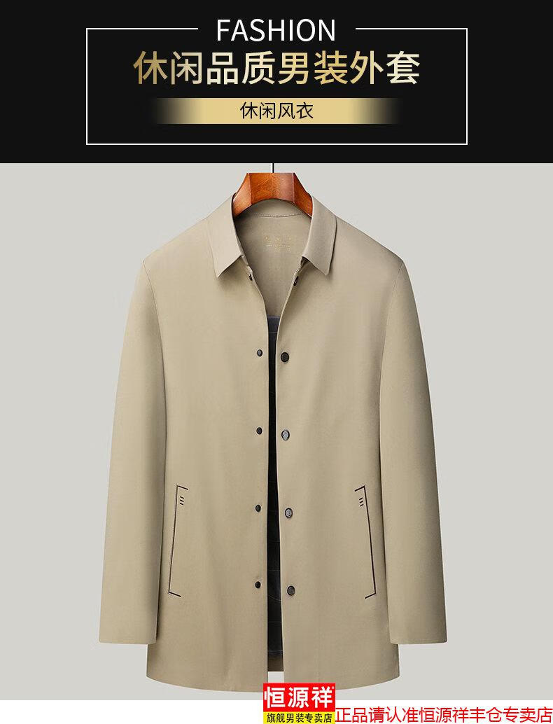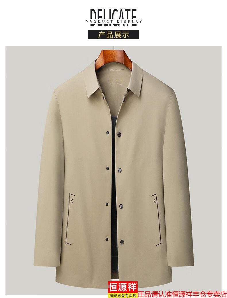 Hengyuanxiang 2025 новая мужская повседневная осенняя куртка средней длины для мужчин среднего возраста для мужчин среднего и пожилого возраста, весенне-осенняя ветровка с лацканами цвета хаки M 170