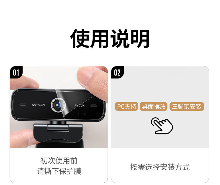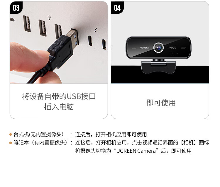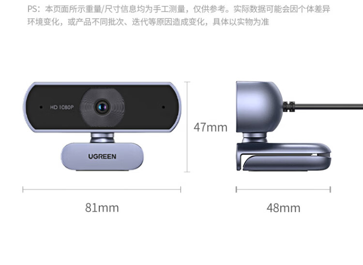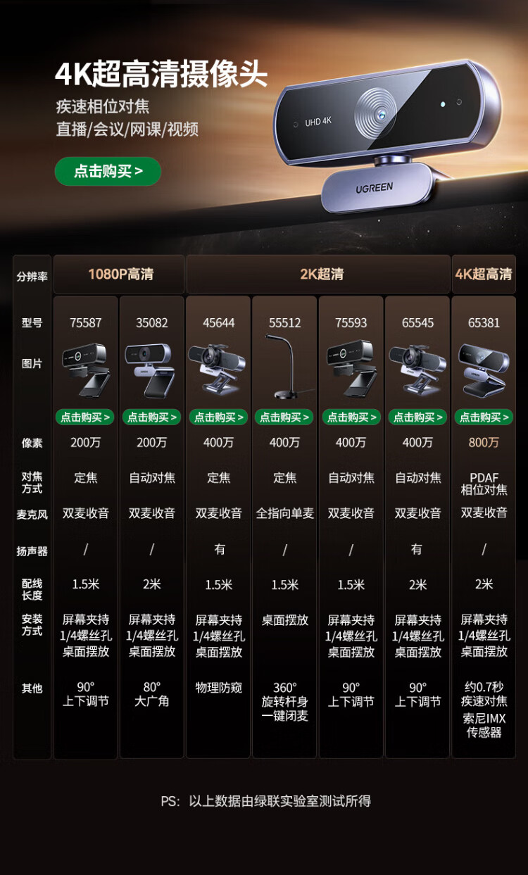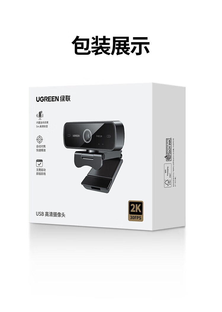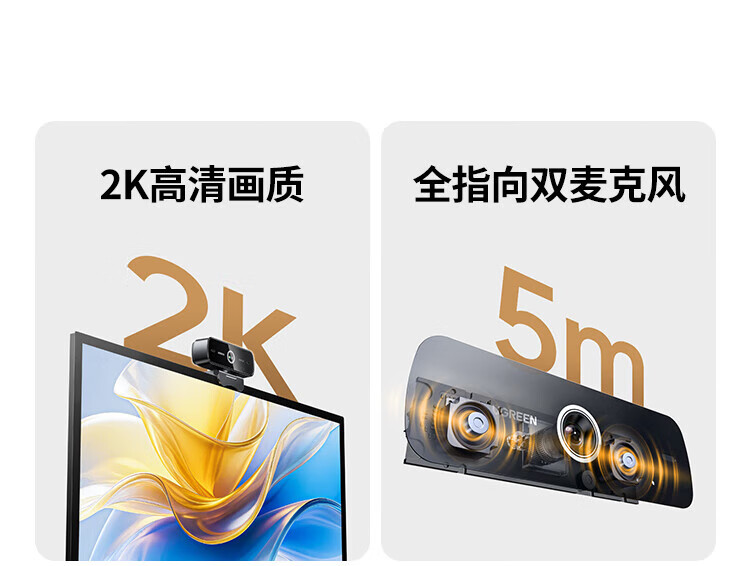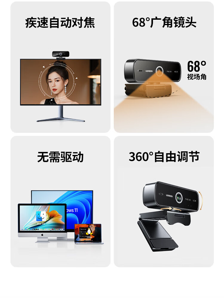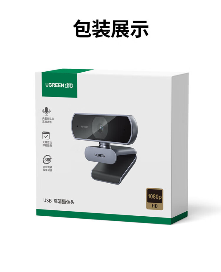绿联电脑直播摄像头USB外置 1080P/2K/4K高清 视频会议办公 面试网课摄像双麦克风笔记本台式机外接 1080P 定焦+双麦+2米线