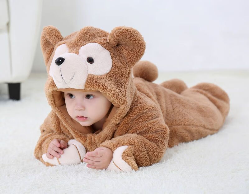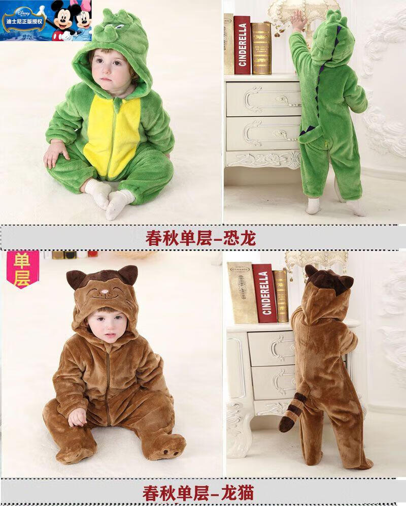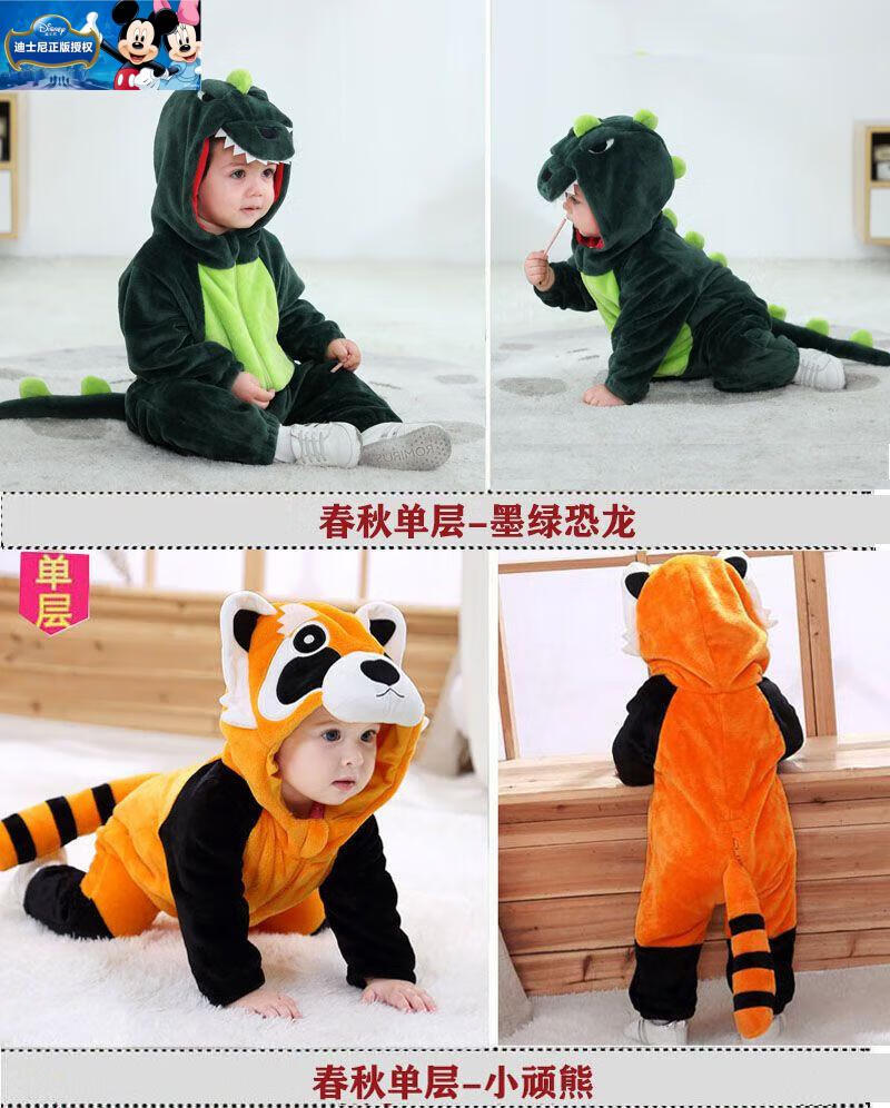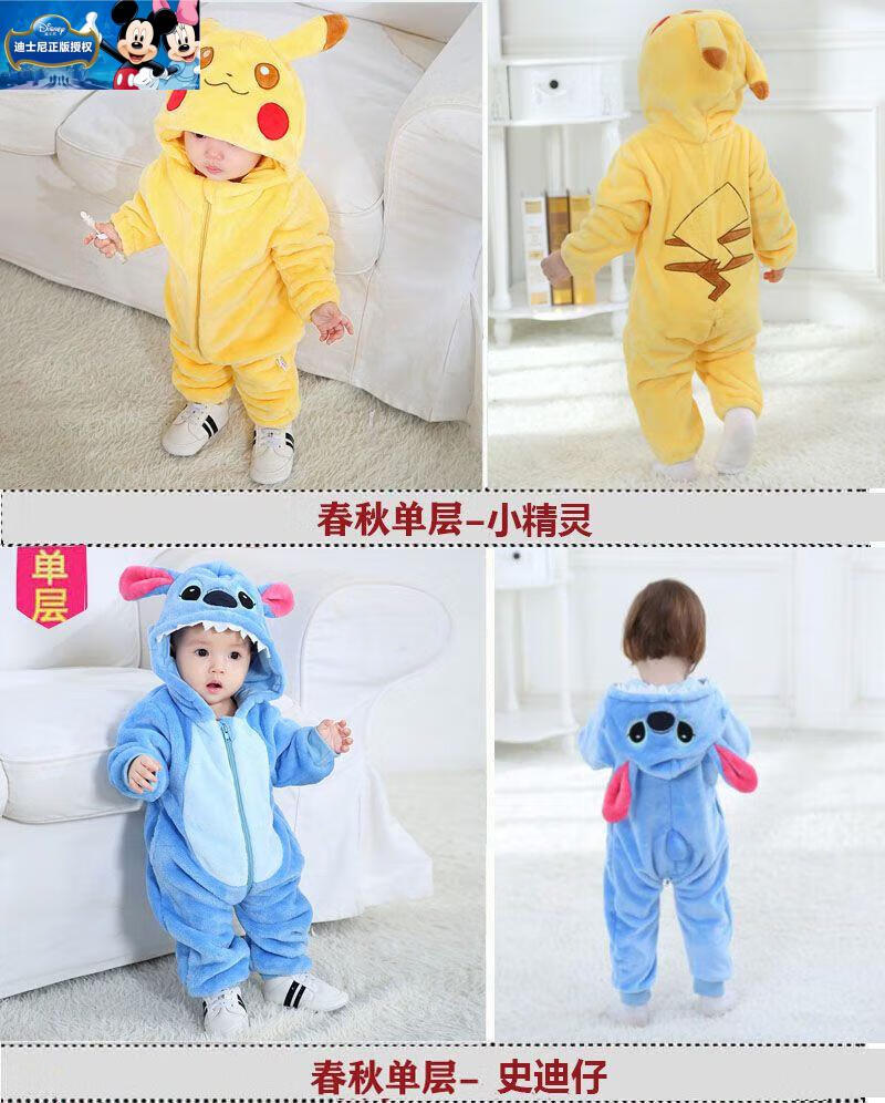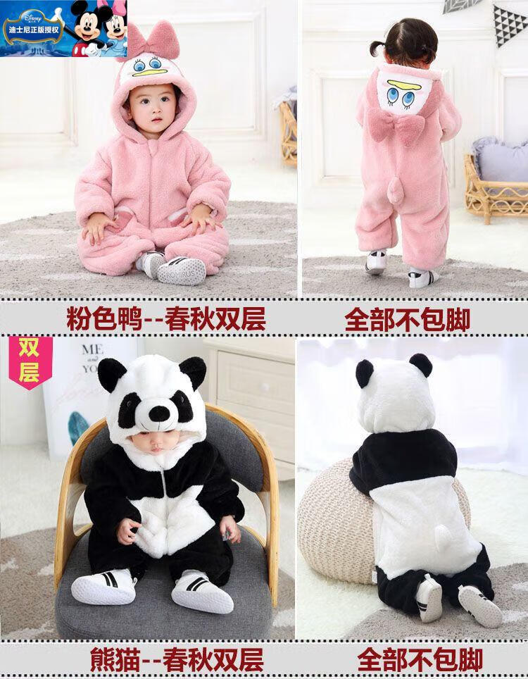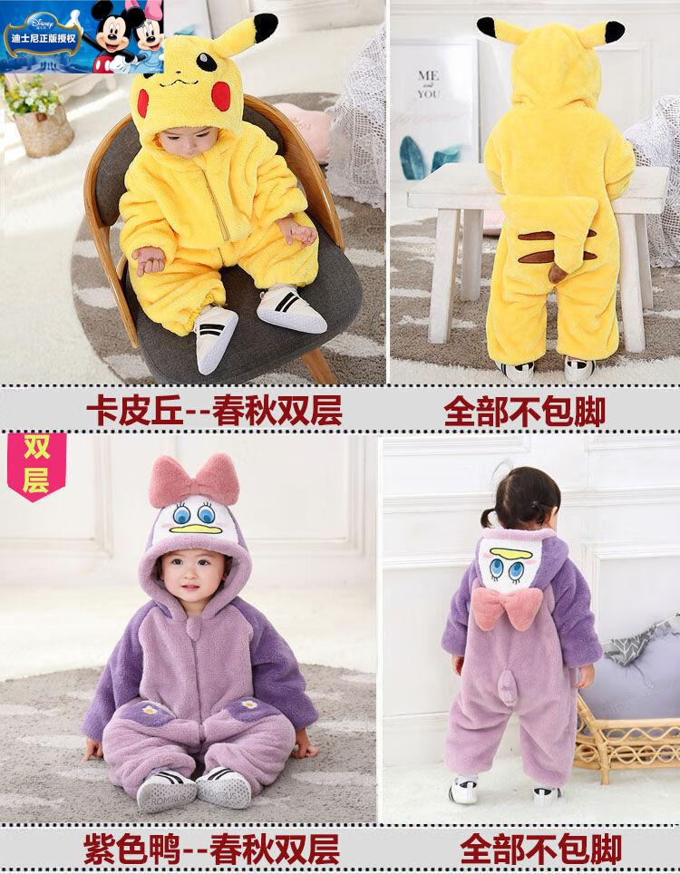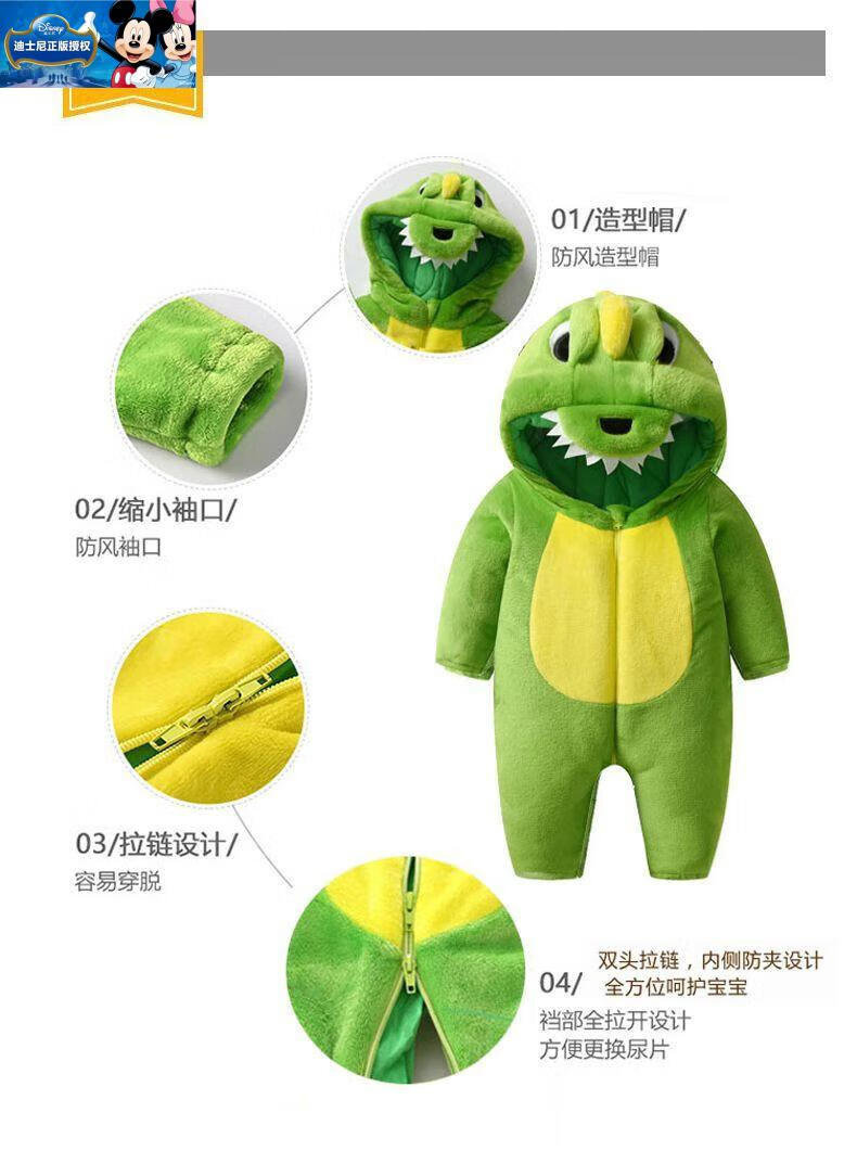 迪士尼婴儿连体衣加厚哈衣秋冬季保暖衣服可爱超萌宝宝外出爬服动物睡衣 棕色小熊-冬季加厚 73cm (6-11个月)包脚18-22斤偏大