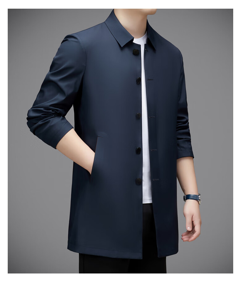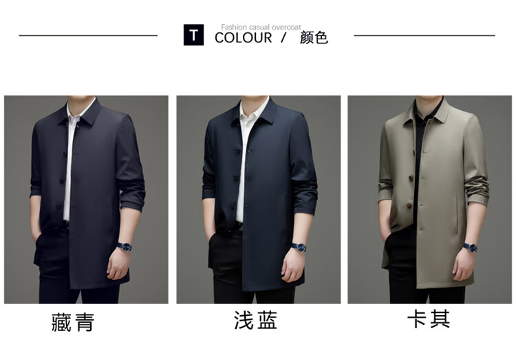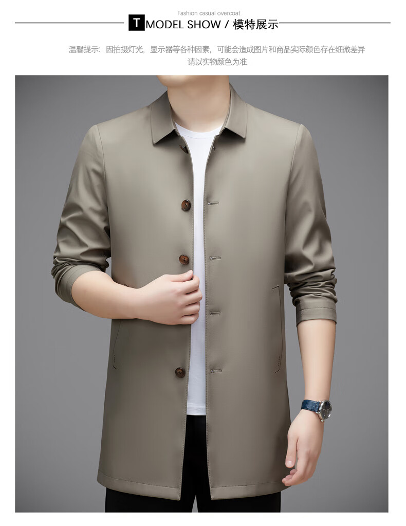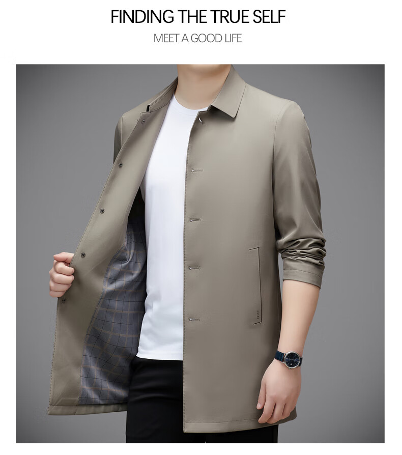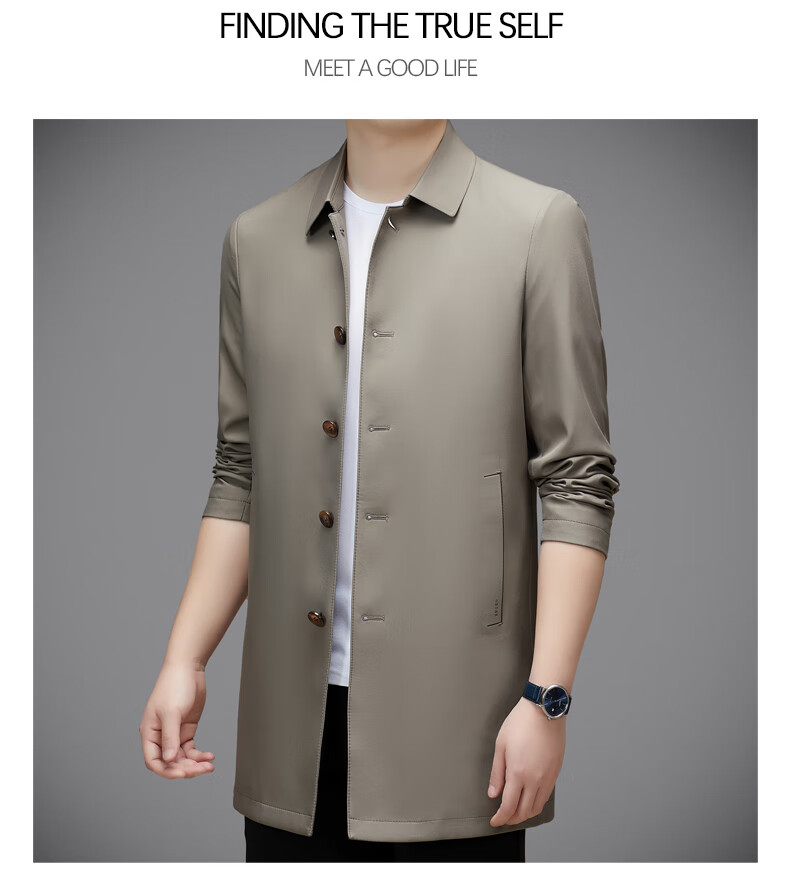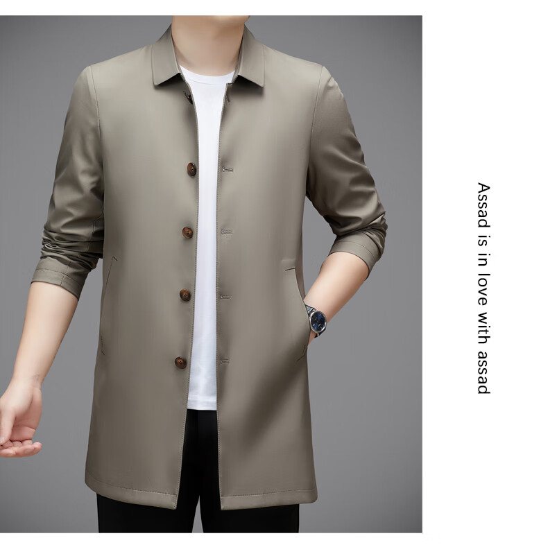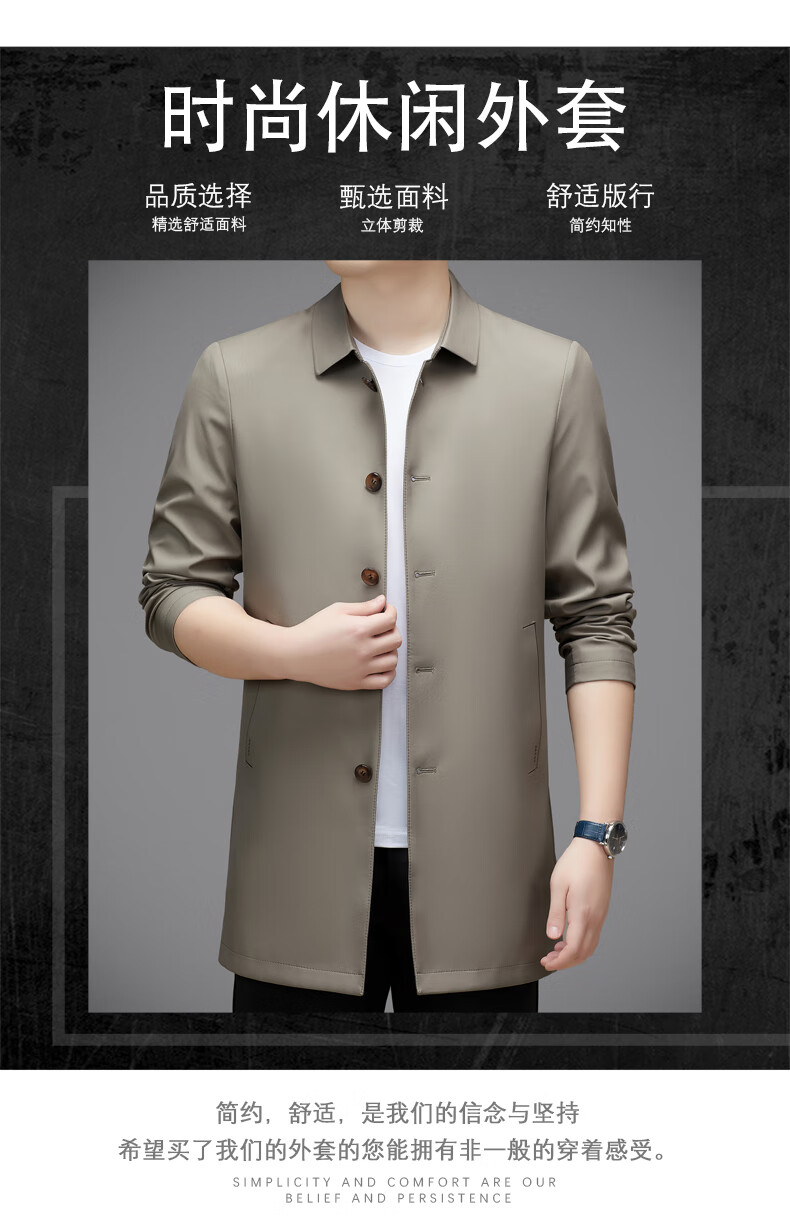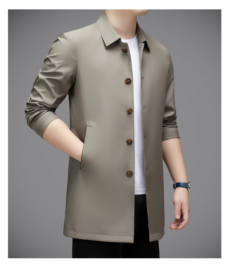 Hengyuanxiang повседневная мужская ветровка средней длины, осень 2025, новое тонкое пальто большого размера в деловом стиле без глажки, цвет хаки XL 180, размер подходит для роста 145-160Цзинь Цзинь равен 0,5 кг