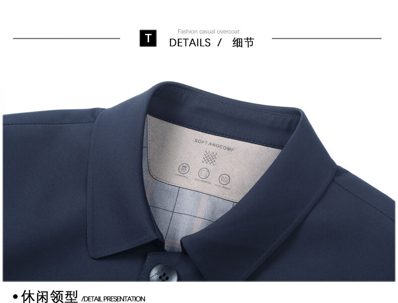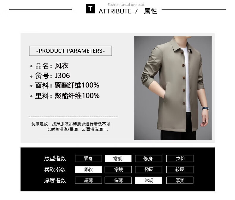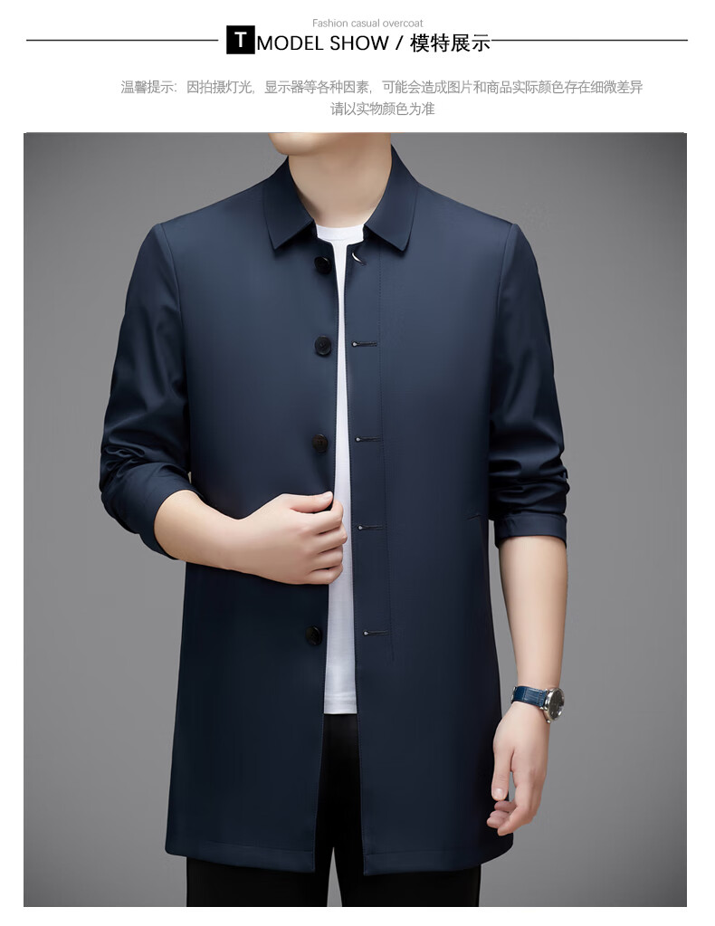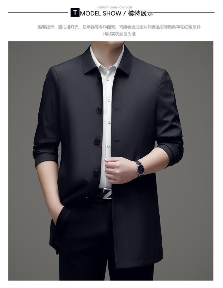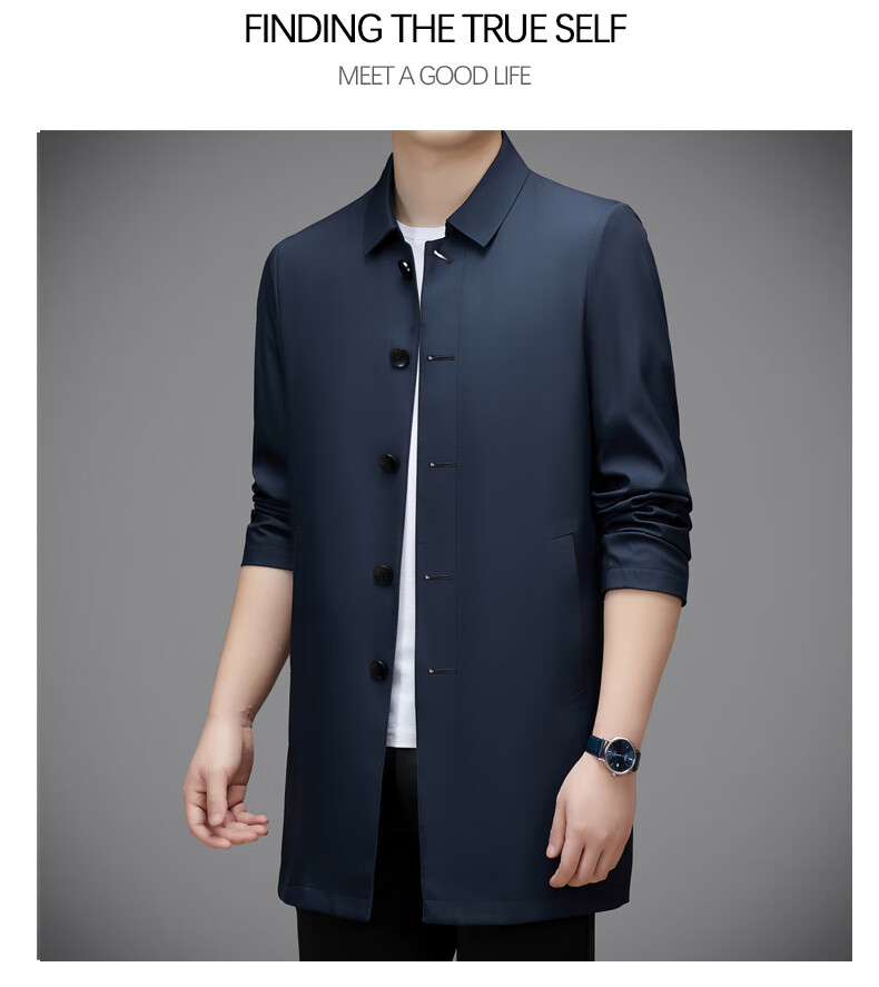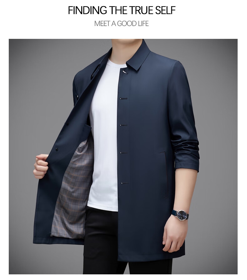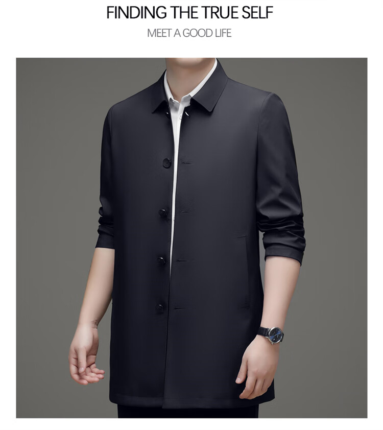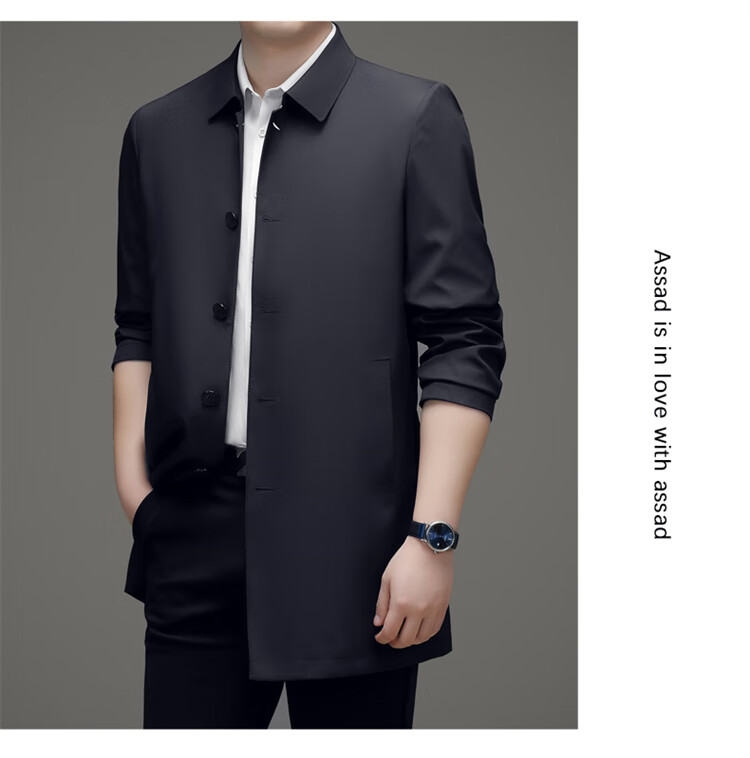 Hengyuanxiang повседневная мужская ветровка средней длины, осень 2025, новое тонкое пальто большого размера в деловом стиле без глажки, цвет хаки XL 180, размер подходит для роста 145-160Цзинь Цзинь равен 0,5 кг