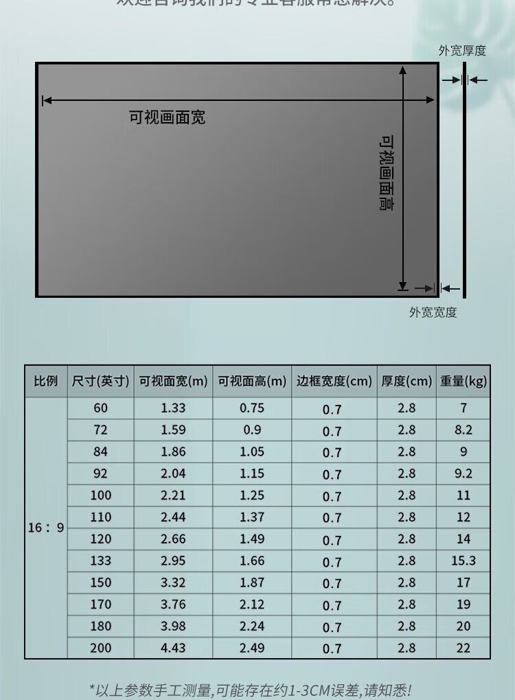 大徽投影仪幕布超高清抗光幕布投影布幕超窄边家庭影院画框幕布白天高清 纳米8K星耀 120寸16:9画框幕 7mm边框