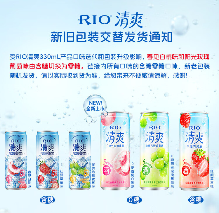 RIO (RIO) tipsy little beauty/refreshing foreign wine pre-mixed cocktail fruit wine rio refreshing 5 degrees low alcohol sparkling fruit tipsy 330ml*6 random flavors