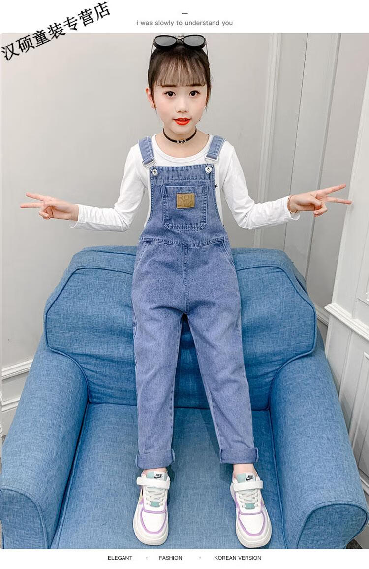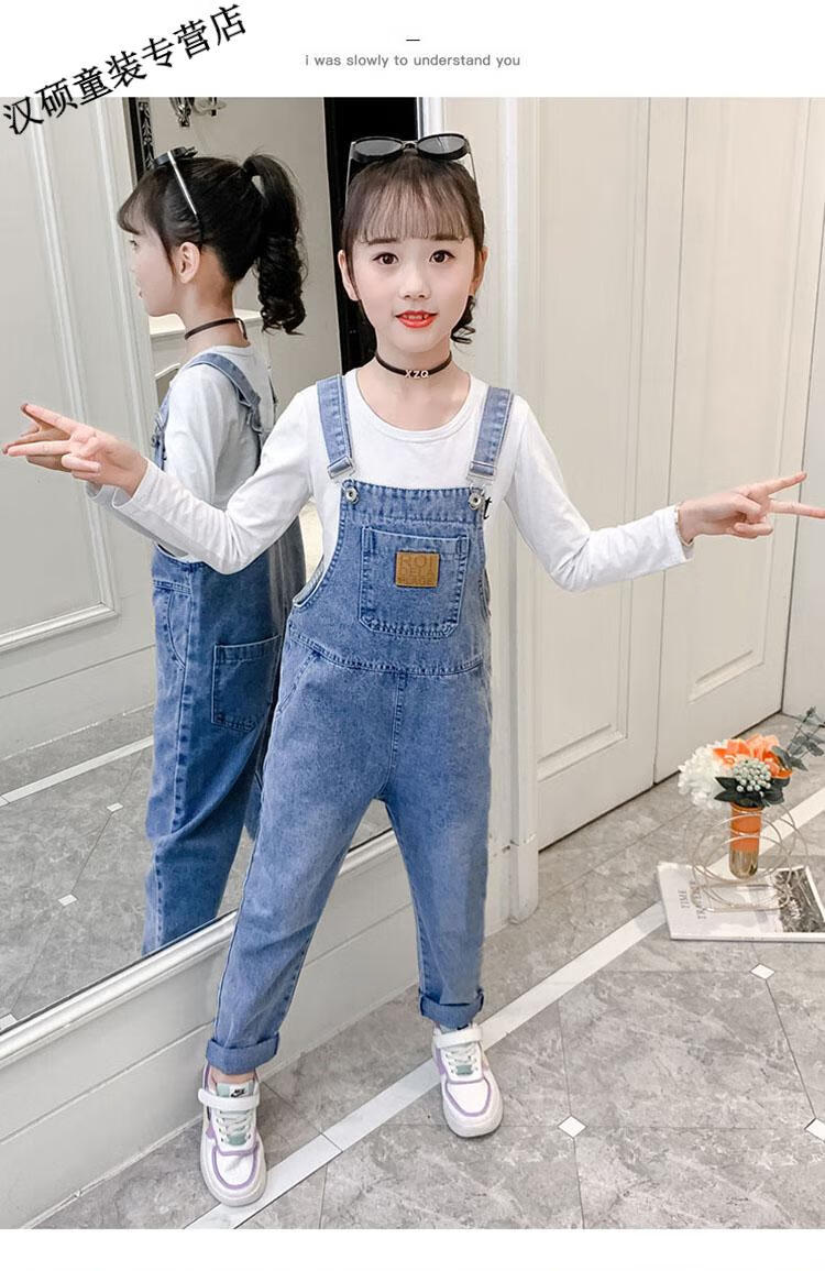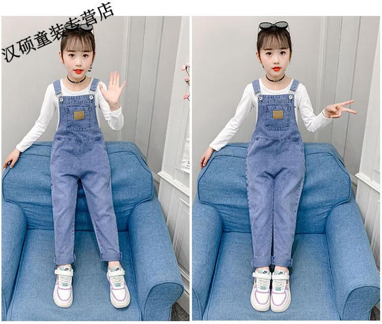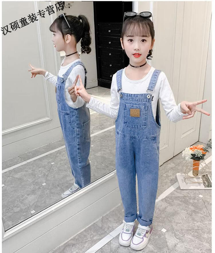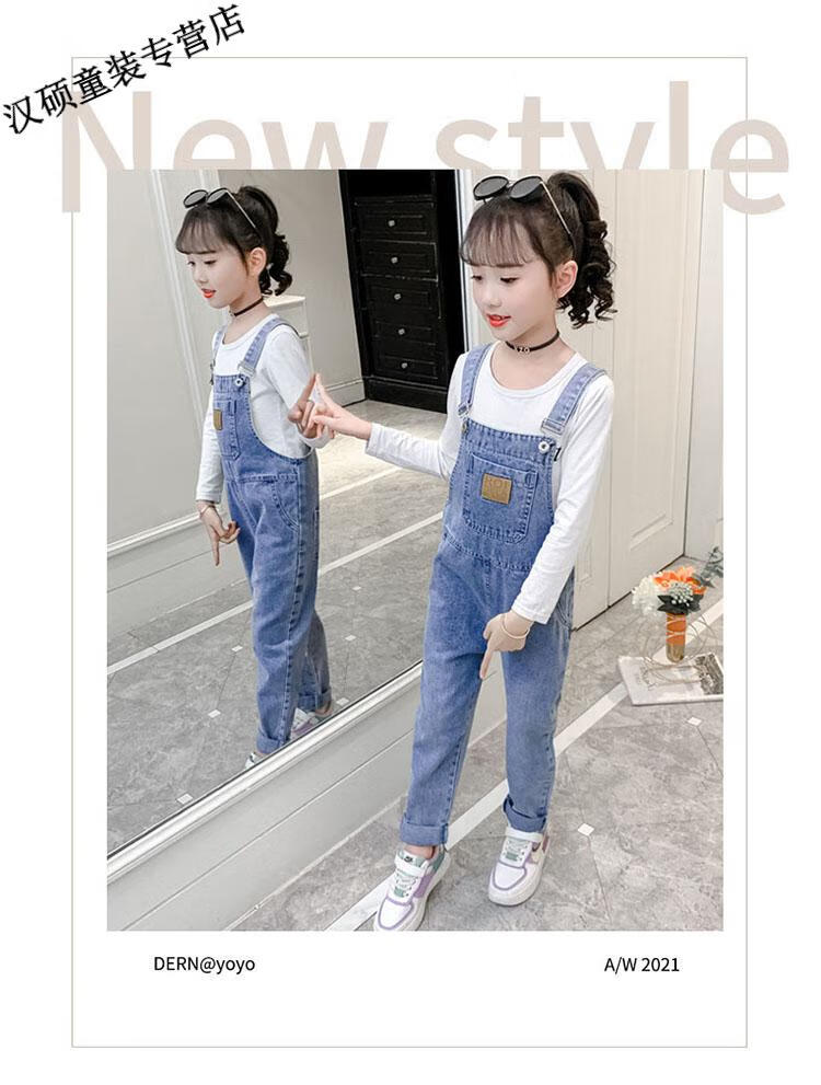 迪士尼(Disney)女童牛仔背带裤春秋长裤女孩秋装大童两件套装儿童宽松洋气吊带裤 单件MK-212背带裤 150正码不能贪大