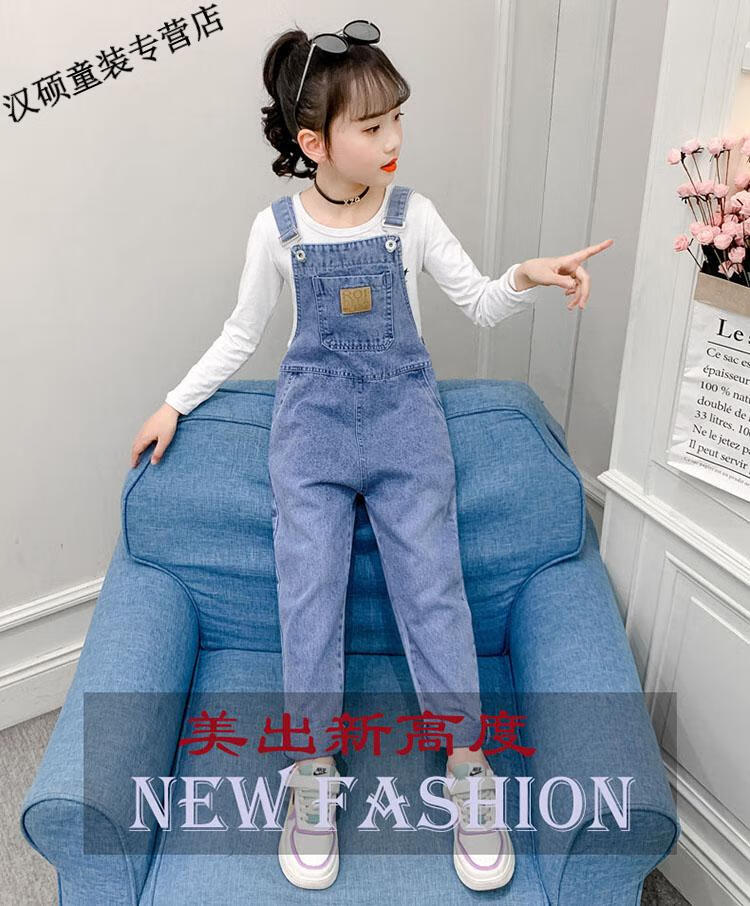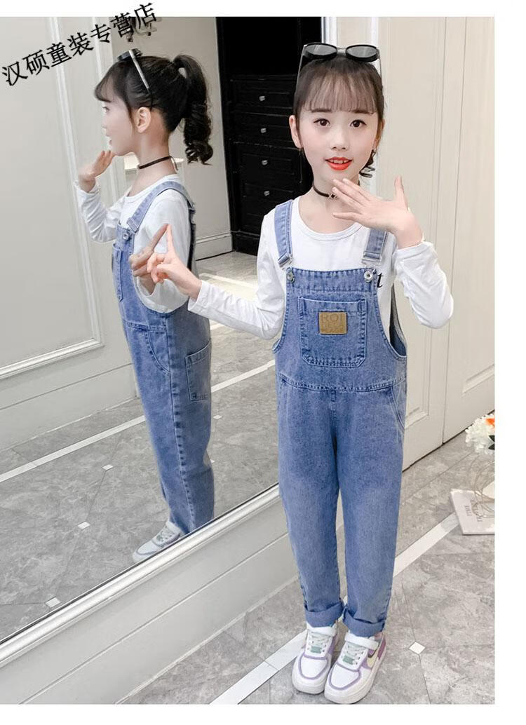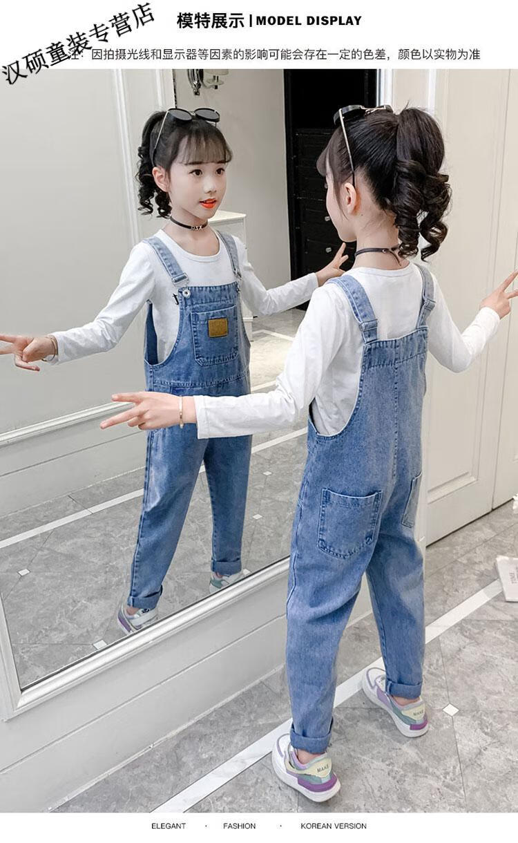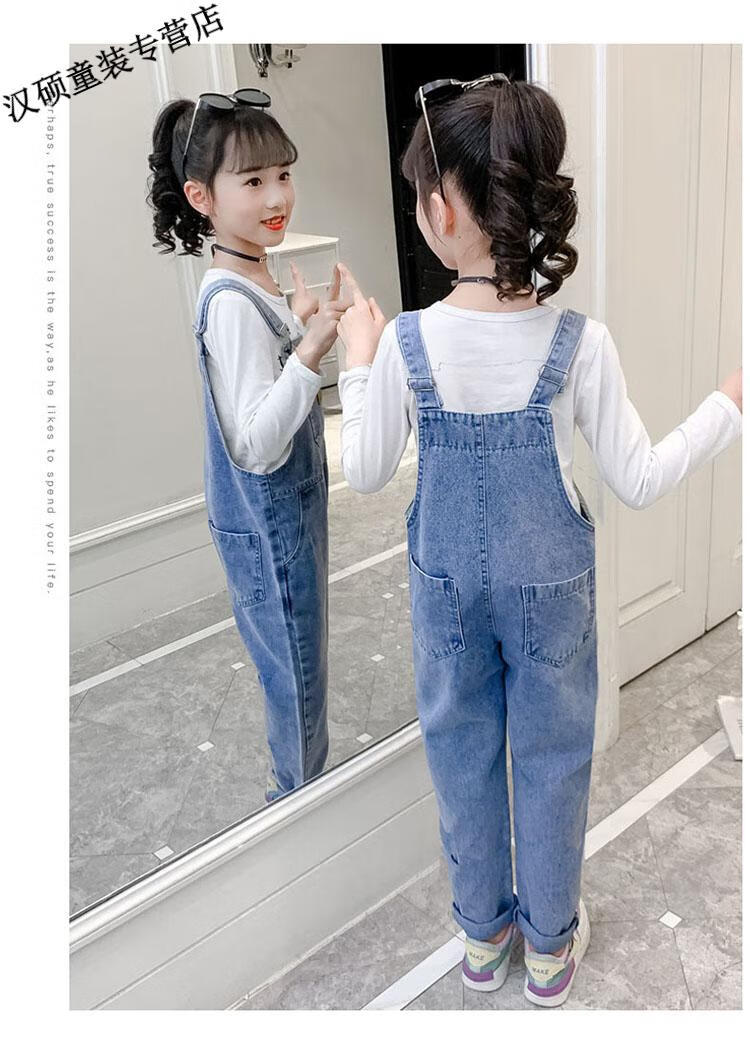 迪士尼(Disney)女童牛仔背带裤春秋长裤女孩秋装大童两件套装儿童宽松洋气吊带裤 单件MK-212背带裤 150正码不能贪大