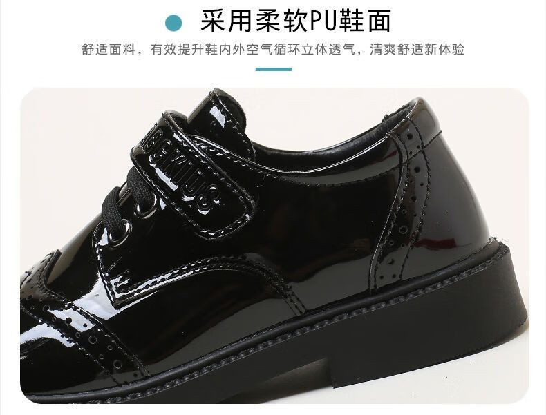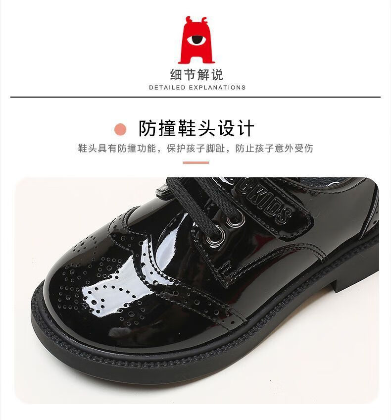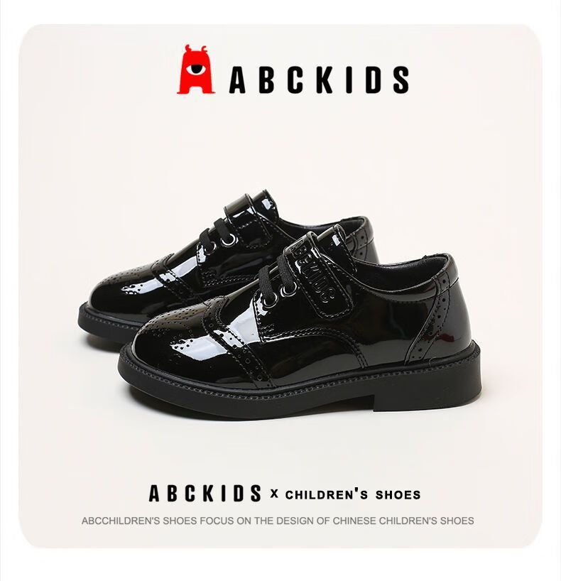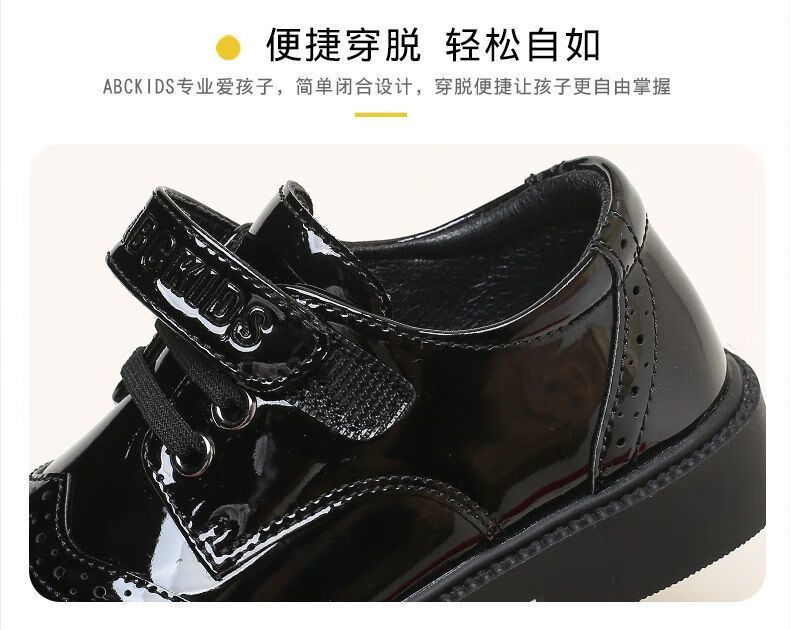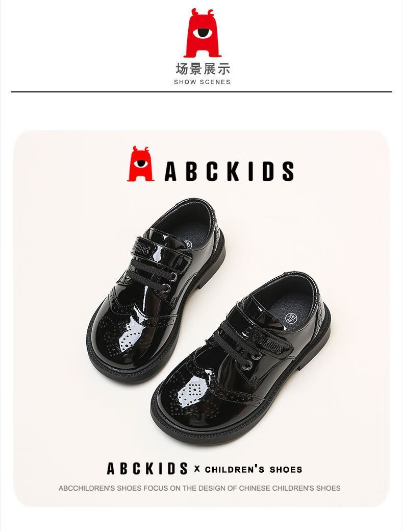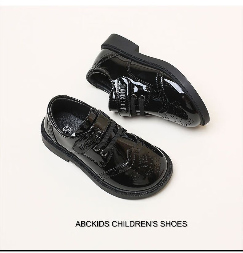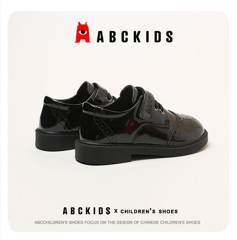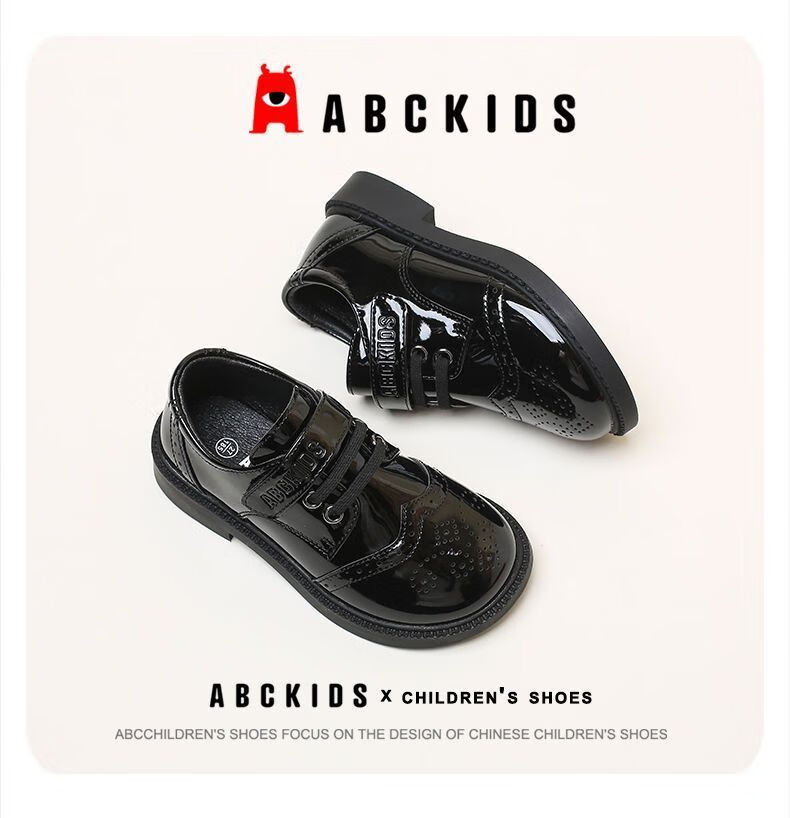 ABC KIDS children's shoes 2025 spring and autumn new fashion leather shoes children's glossy host boys and girls casual performance shoes black size 30 inner length about 20cm