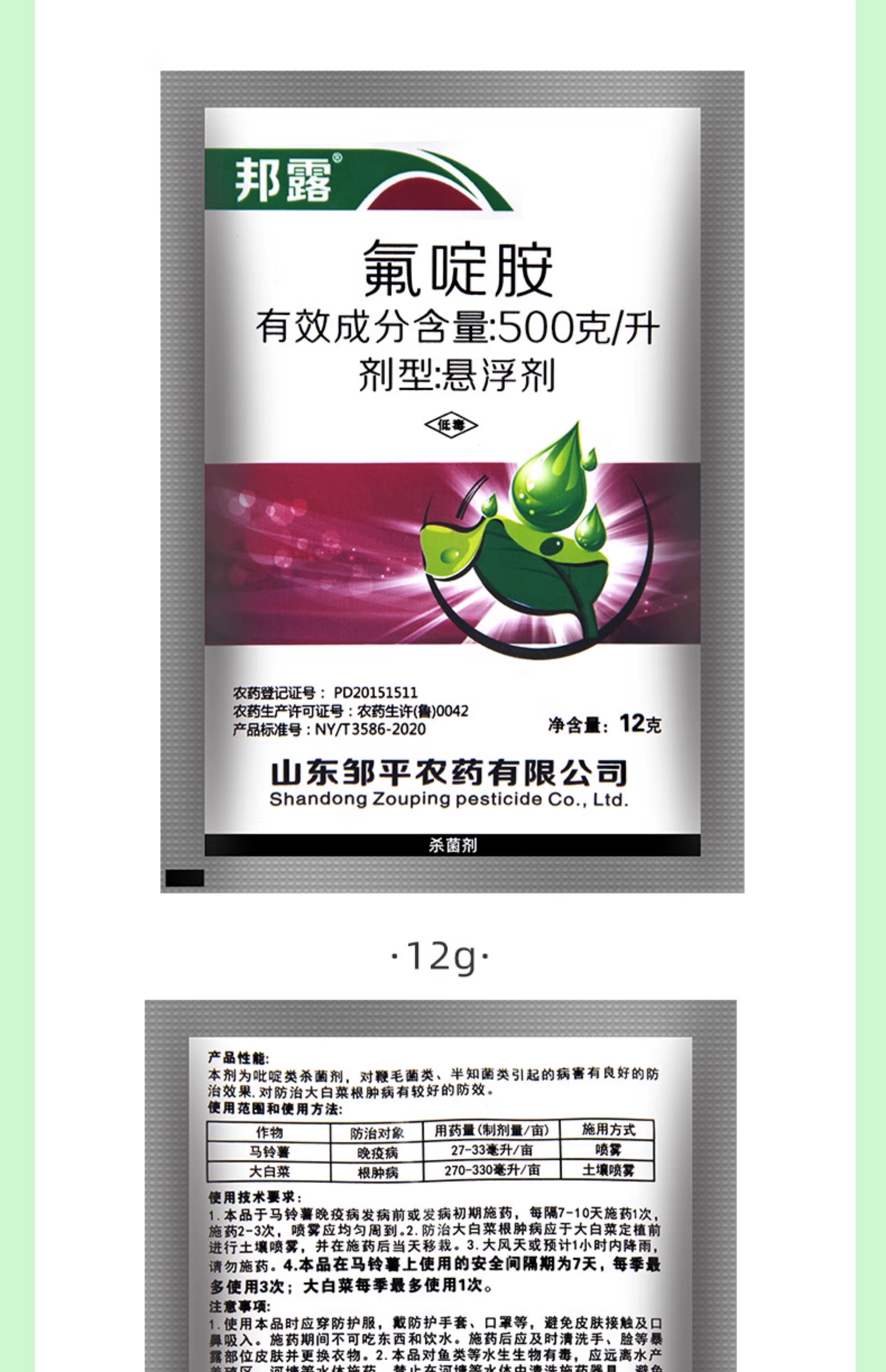 邦露500克/升氟啶胺大白菜根肿病马铃薯晚疫病炭疽病农药杀菌剂邦露 100g