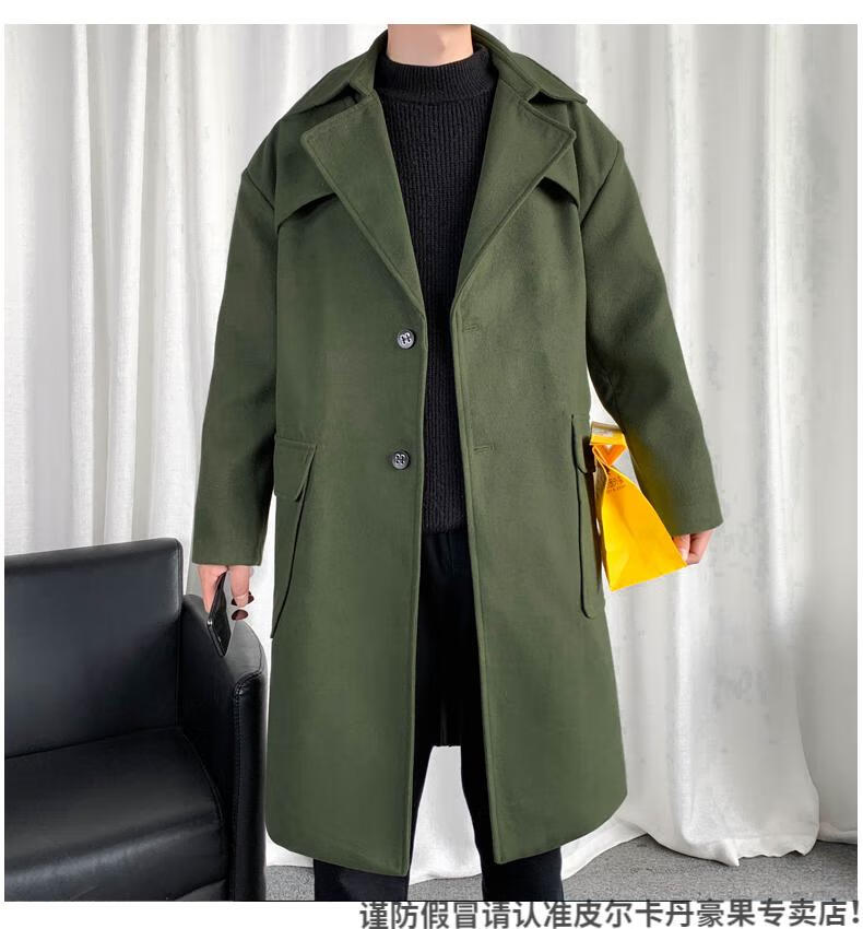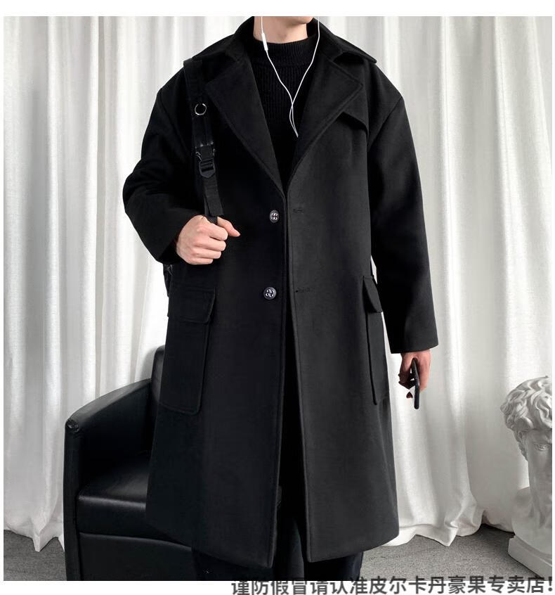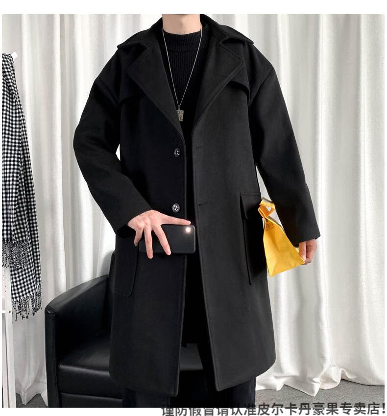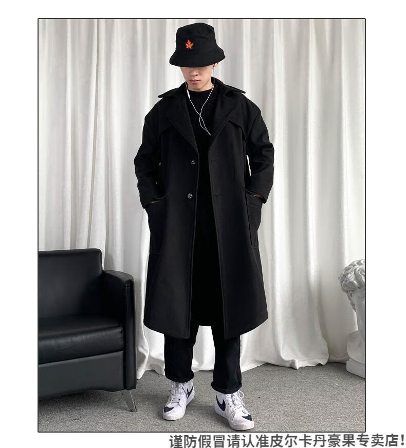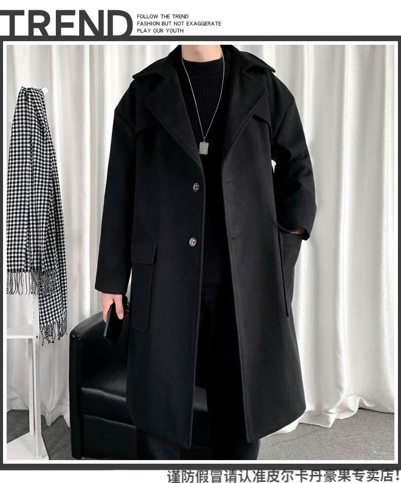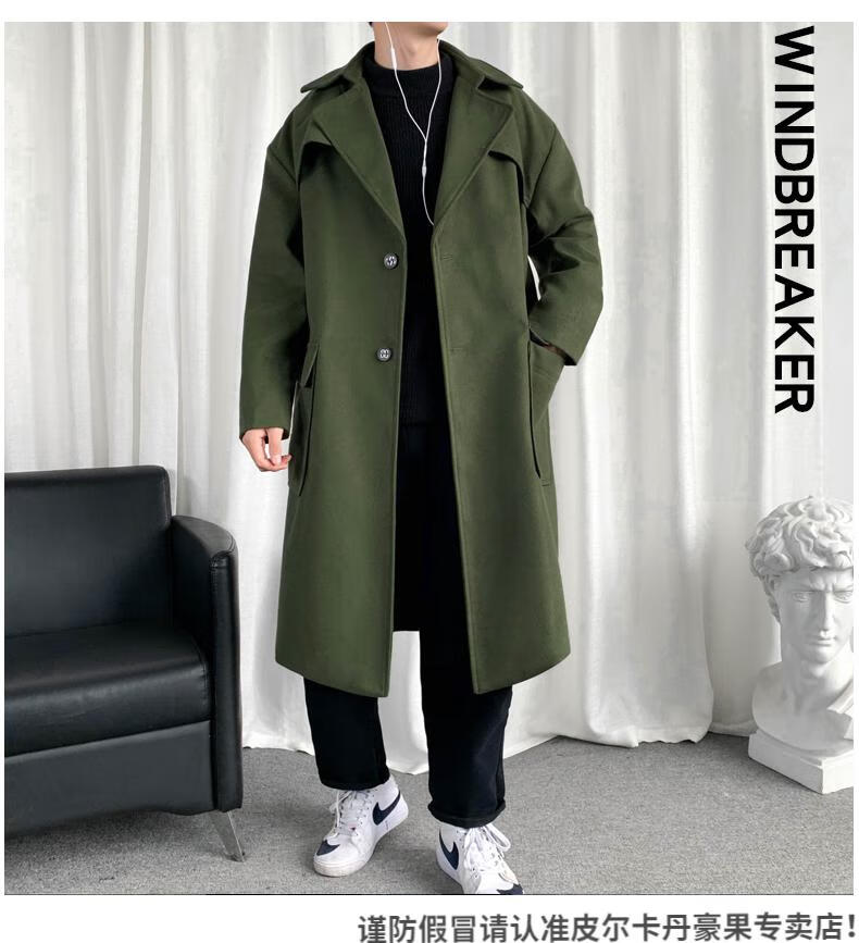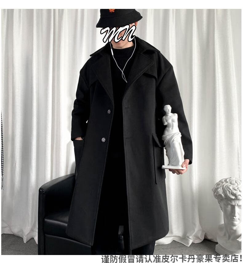 皮尔卡丹(pierre cardin)军绿色成熟稳重男装感风衣男中长款冬季苏联军呢大衣外套 黑色 M
