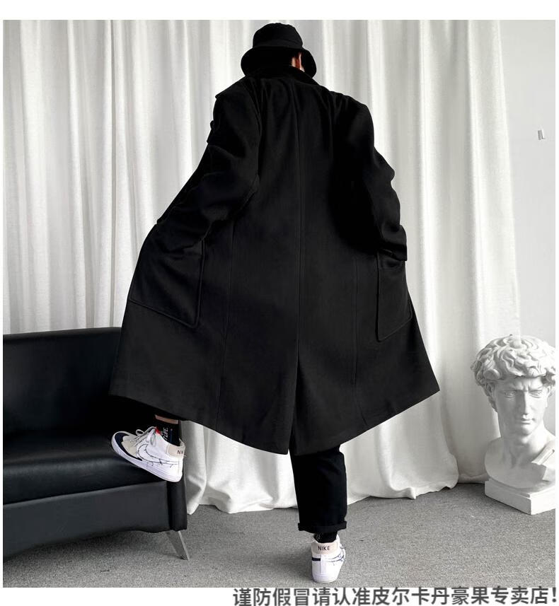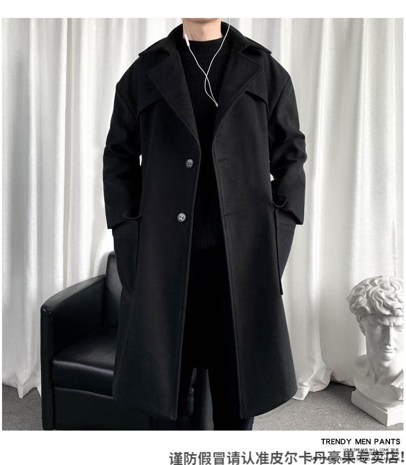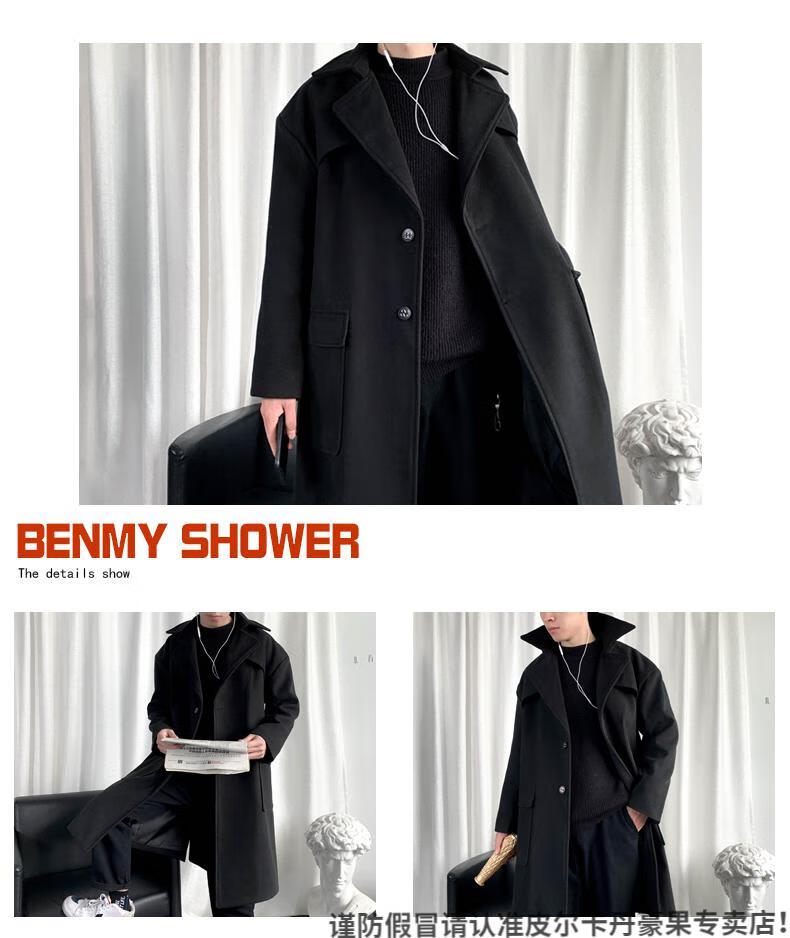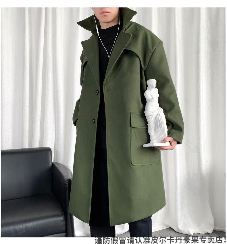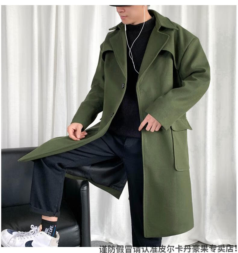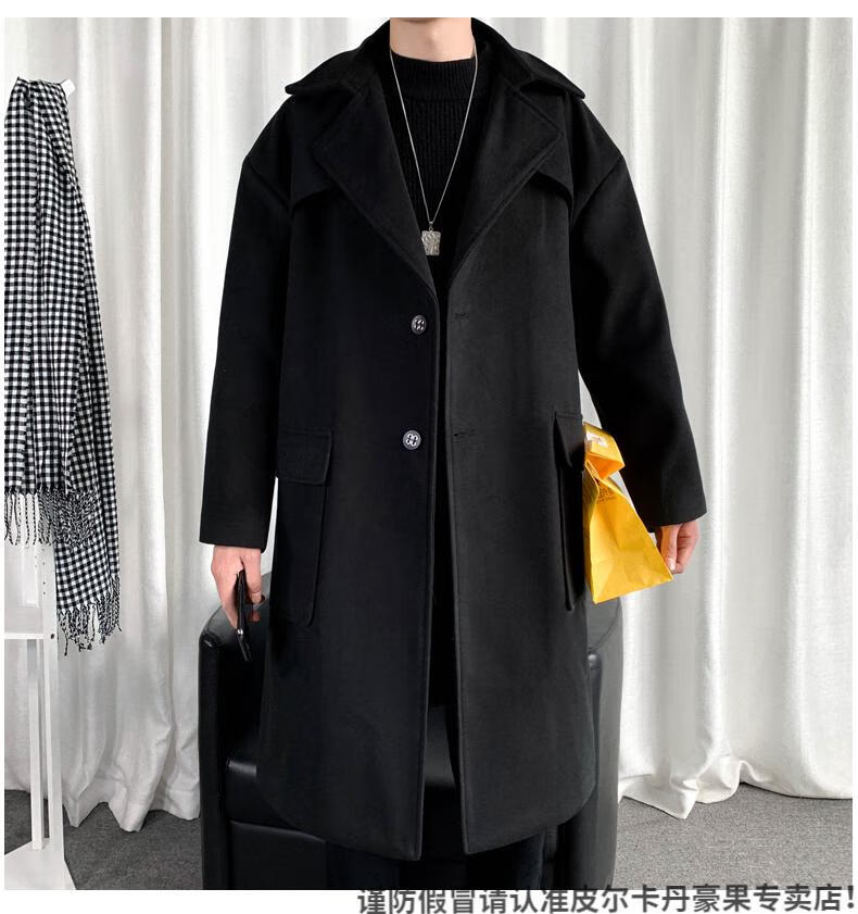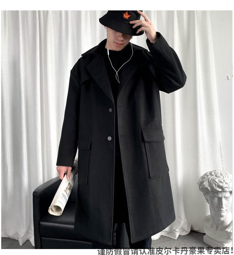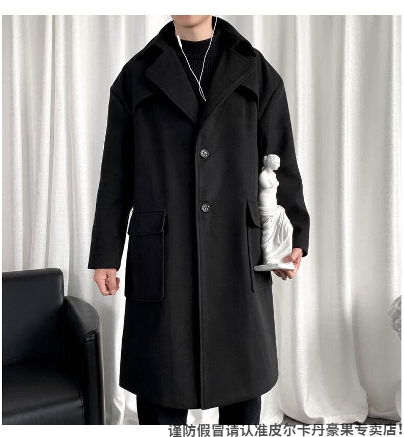 皮尔卡丹(pierre cardin)军绿色成熟稳重男装感风衣男中长款冬季苏联军呢大衣外套 黑色 M