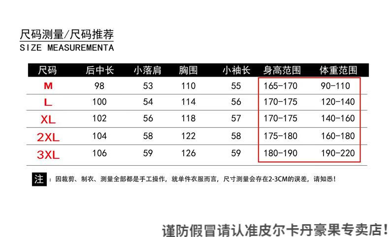 China (cm) 165 / 88-90 170 / 96-98 175 / 108-110 180 / 118-122 185 / 126-130