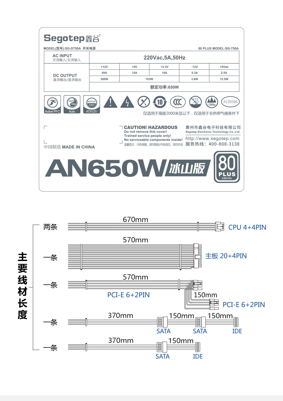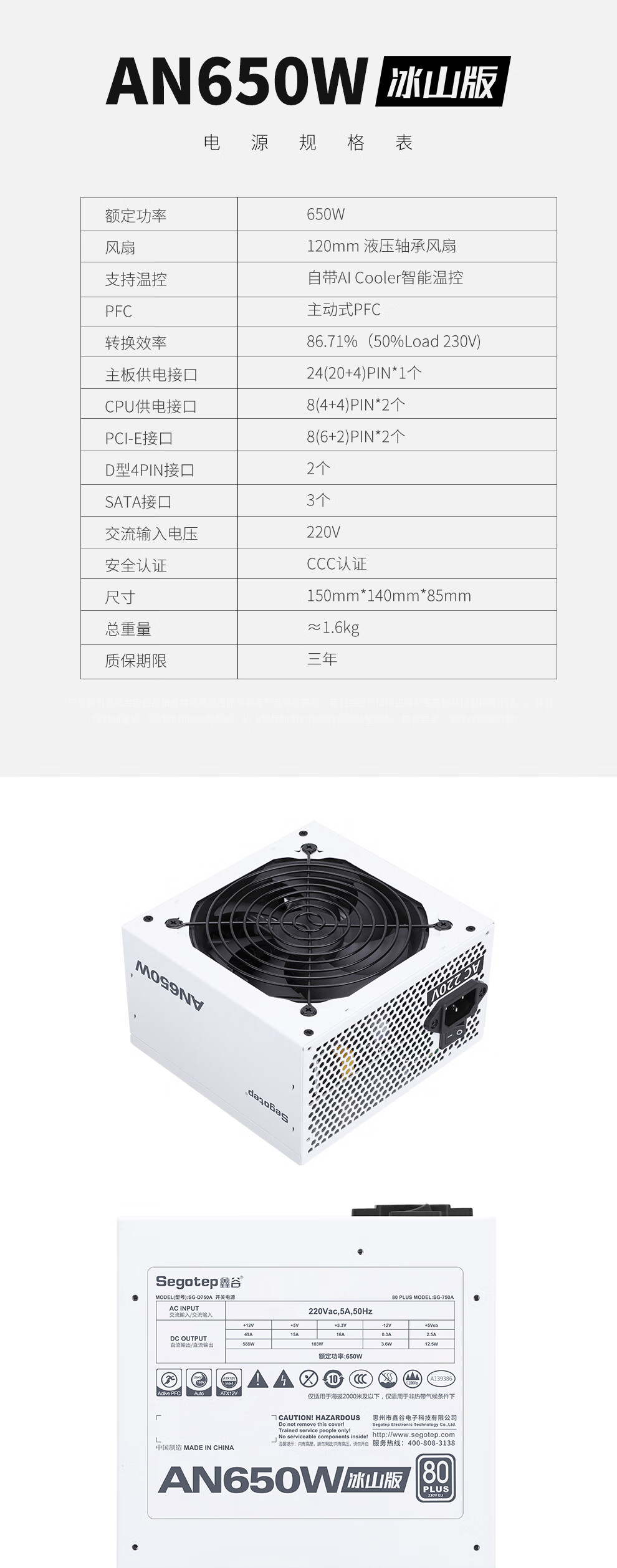 Xingu (segotep) AN650W iceberg version AN550W white brand rated 750W chassis desktop AM850W full module white ATX host computer power supply AN650W iceberg version white brand straight out rated 650W