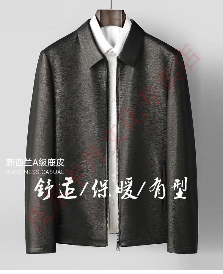 皮尔卡丹(pierre cardin)高端商务翻领皮夹克真皮进口新西兰鹿皮皮衣中青年秋冬外套短款男 黑色 2XL 52