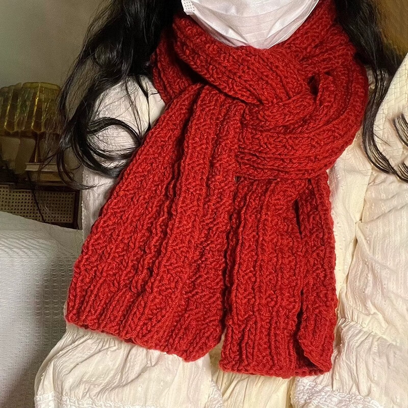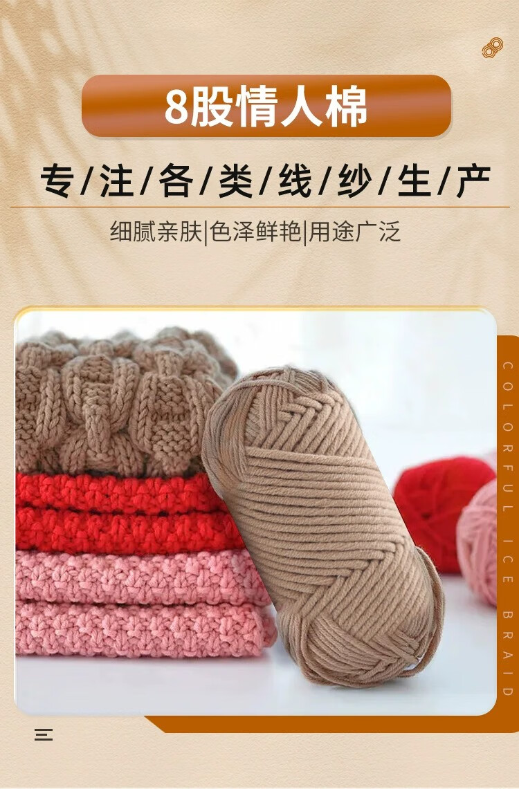 Tuzun scarf hand-knitted DIY gift for boyfriend and girl yarn ball 8 strands lover milk cotton cross flower scarf material package rust red 4 ball yarn + bamboo needle + tutorial