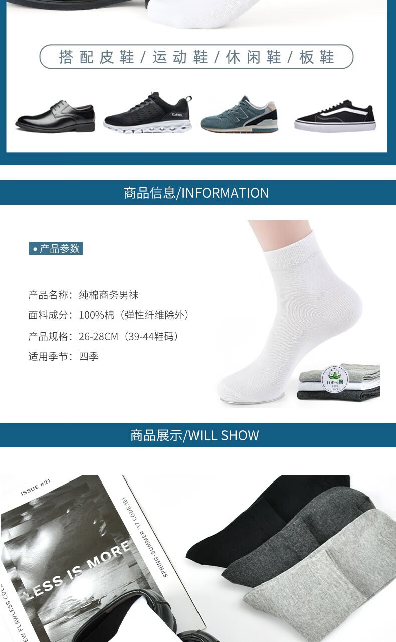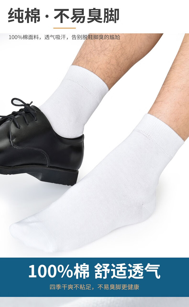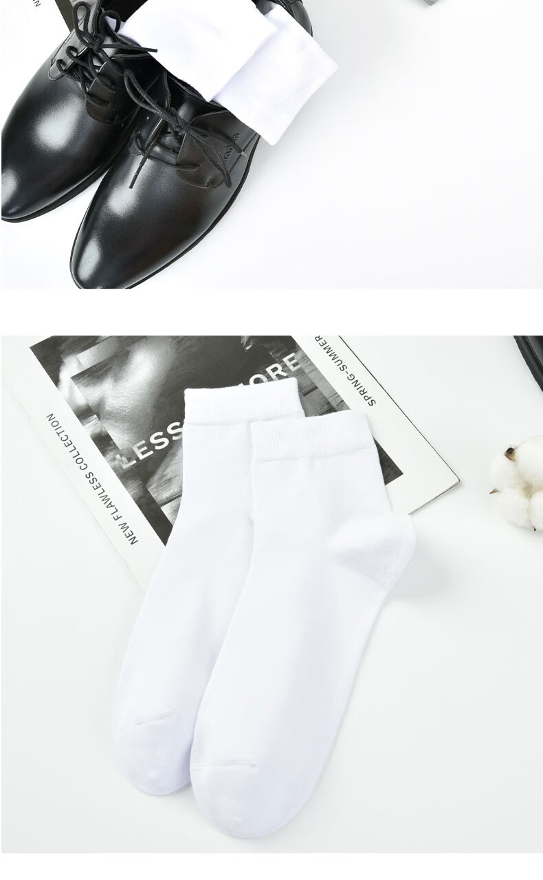 Modal 5 pairs of men's 100% cotton socks, autumn and winter white mid-calf socks, sweat-absorbent and breathable mid-calf men's socks for all seasons, pure cotton business, white, 5 pairs, one size fits all, recommended for sizes 39-44